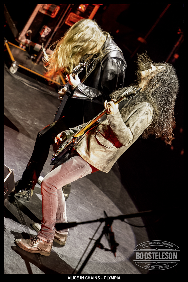Voilà une soirée qui s’annonçait des plus intéressante et intrigante. En effet, le choix de faire ouvrir la soirée par un groupe tel que les Black Rebel Motorcycle Club était plutôt étonnant, mais force est de constaté que l’Olympia affiche complet ! Les BRMC sont plus habitués à être en tête d’affiche que d’ouvrir pour un groupe comme Alice In Chains. D’autant qu’à priori, ils n’évoluent pas vraiment dans le même univers musical. Pourtant ce choix va s’avérer être une vraie bonne idée. Les BRMC affichent une attitude qui dégage la sérénité et la maîtrise totale de leur musique. Souvent qualifiés de Dandys Rock, il émane pourtant de leur show une certaine énergie punk même sur les titres les plus calmes. Une réelle découverte pour un groupe que je ne connaissais que de nom, et une très belle entame de soirée qui dans l’esprit, n’est finalement pas si éloigné que ça des stars de la soirée.