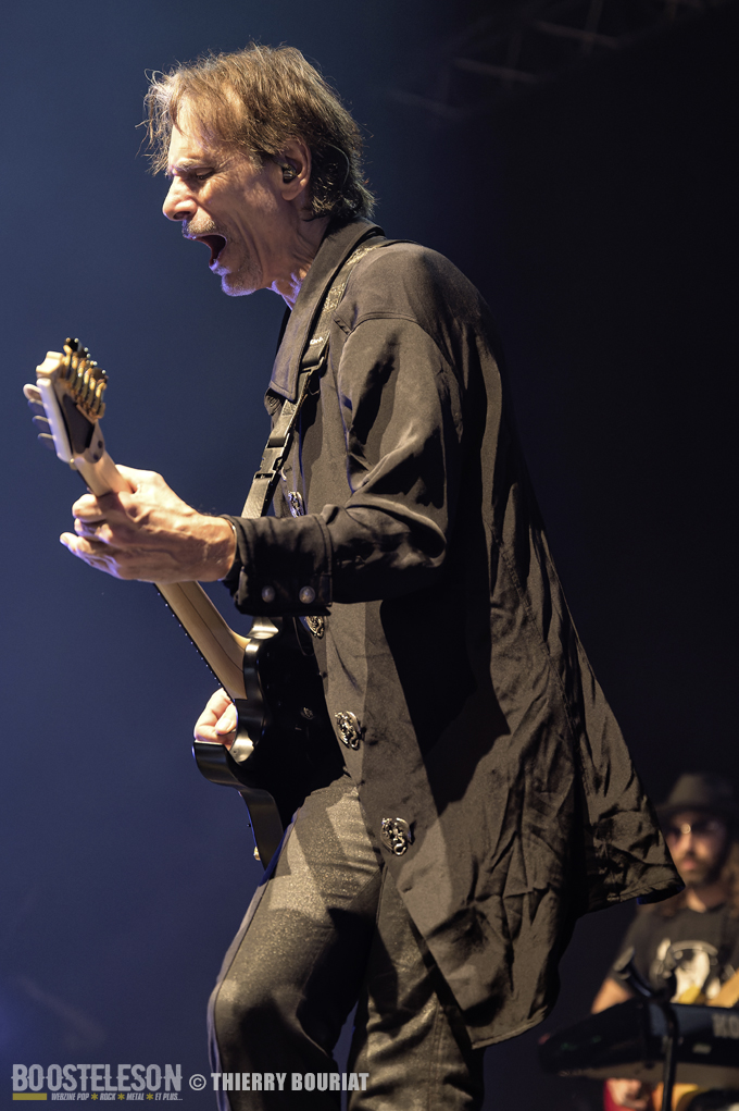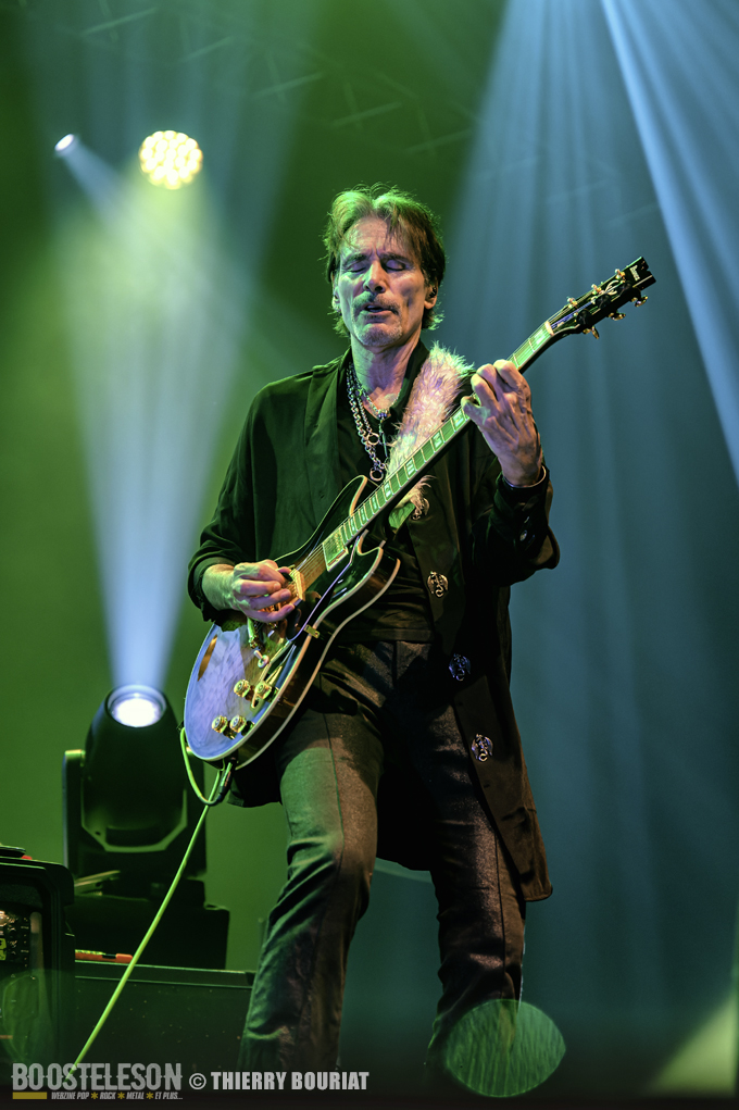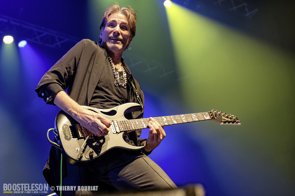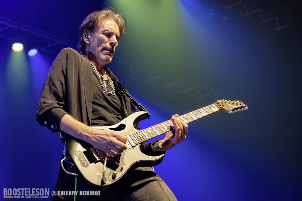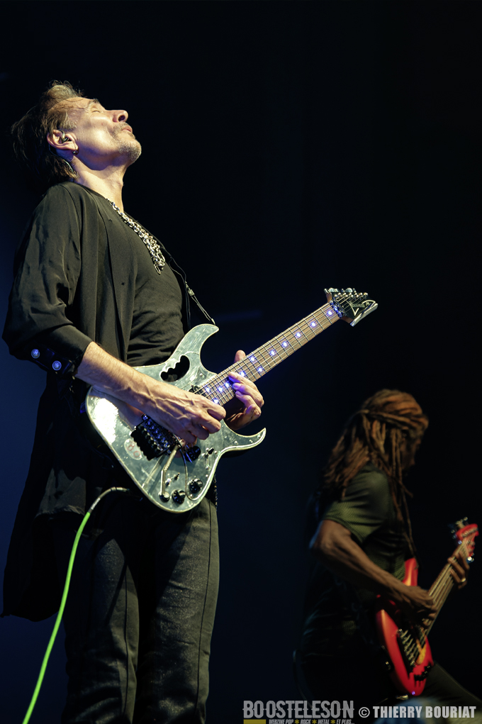 Tapping, bending, slide, sweeping tout s’enchaîne ainsi que les titres pour notre plus grand bonheur. Steve communique avec son public qui lui rend bien, acclamant le groupe à chaque fin de morceau. Steve Vai semble ému d’un tel accueil.