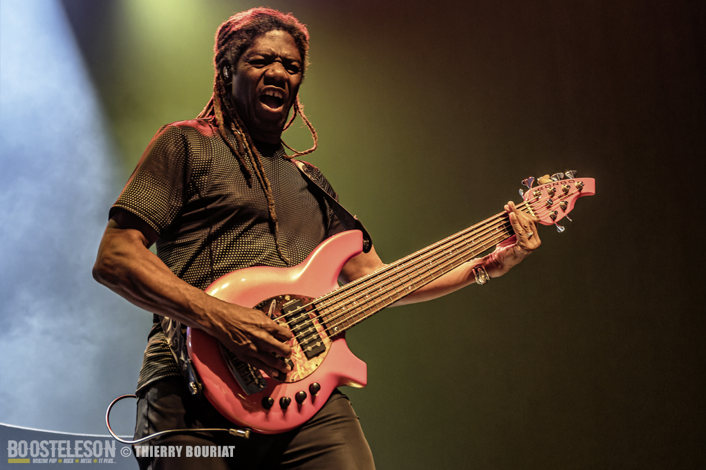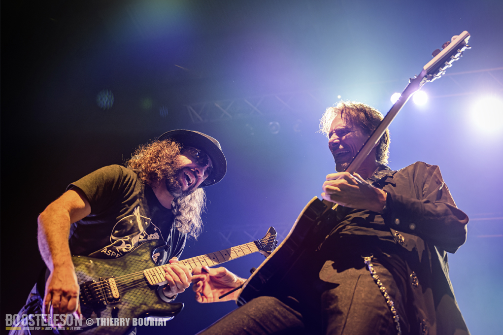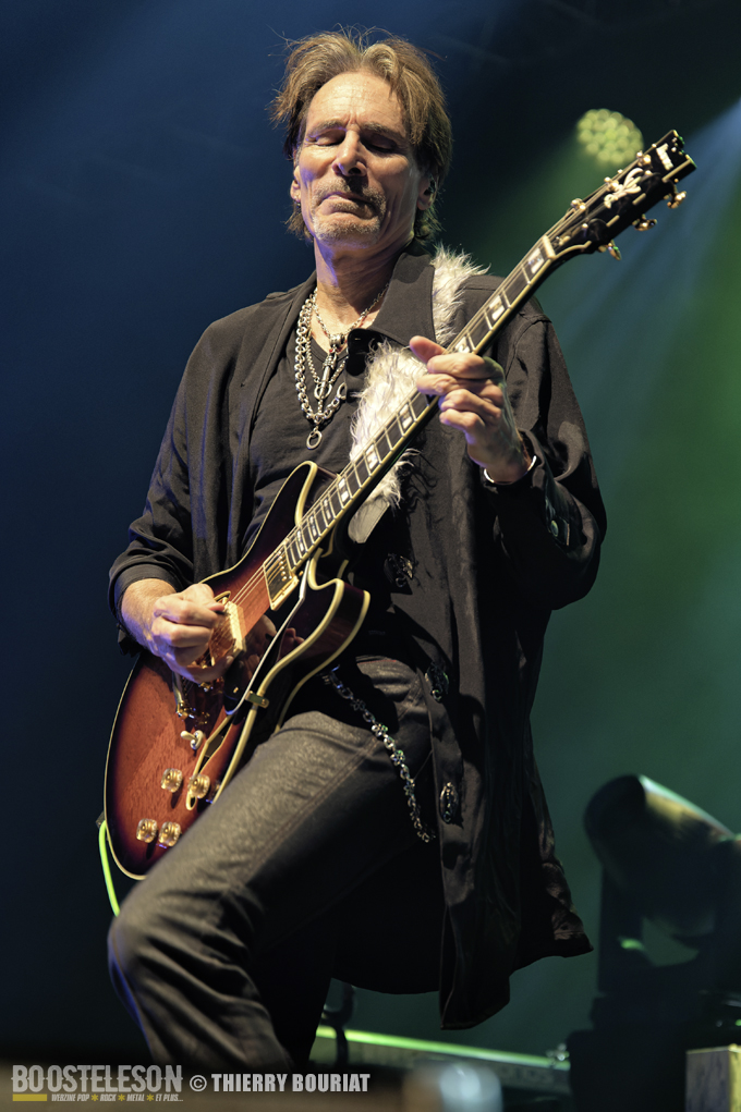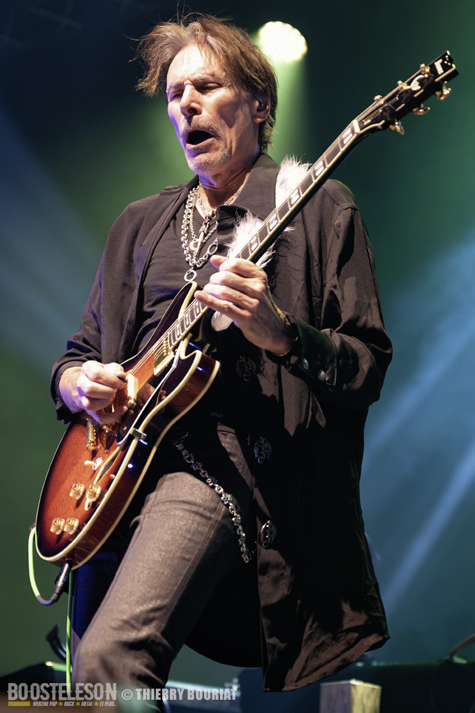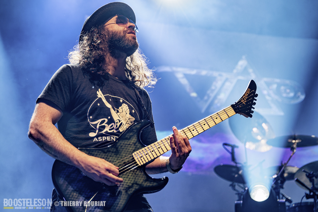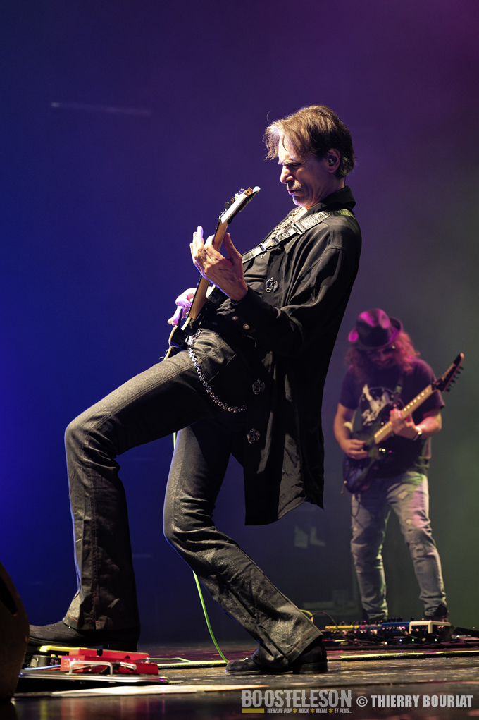 Tapping, bending, slide, sweeping tout s’enchaîne ainsi que les titres pour notre plus grand bonheur. Steve communique avec son public qui lui rend bien, acclamant le groupe à chaque fin de morceau. Steve Vai semble ému d’un tel accueil.