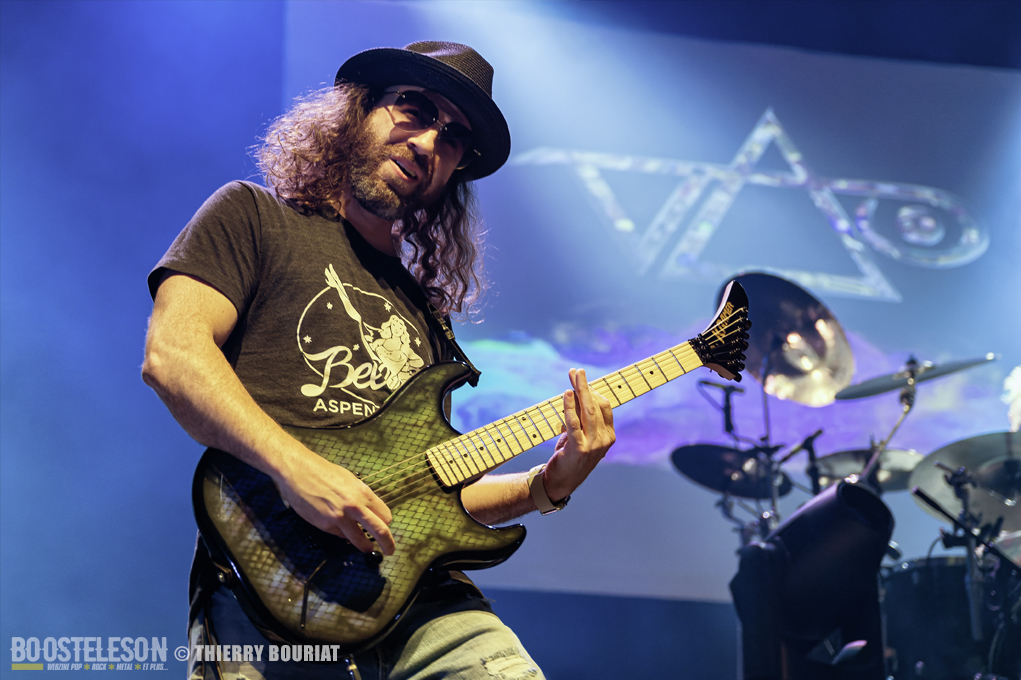 A 62 ans la passion est intacte. Quel charisme, quelle personnalité, quelle technicité, quel show man !!! Vous assurez Mister Vai, respect… Mon seul regret ne pas avoir pu voir l’Hydra resté aux States, le monstre a trois têtes qui intègre un manche 12 cordes qui devient fretless à partir de la 9ème case, un manche 7 cordes (avec vibrato flottant Edge), et une partie basse headless avec un manche fretté uniquement sur les deux premières cordes.