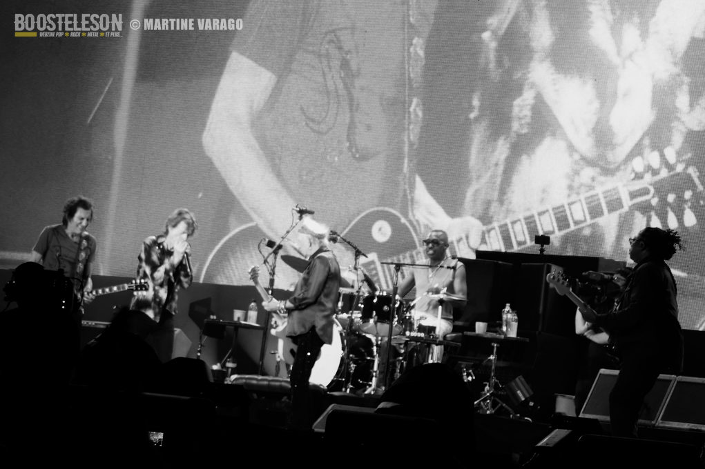 Les titres intemporels s’enchaînent et leurs hits des années 70 comme Angie nous fait retomber dans l’époque de nos slows d’adolescents jusqu’à en ressentir des frissons. Les chantonnements de « Sympathy For The Devil », de « Honky Tonk Woman » et l’harmonica de « Midnight Rambler » déclenchent des vagues de clameurs. Les Stones continuent de nous faire rêver avec « You Can’t Always Get What You Want » avec une super impro à l’harmonica de Jagger.