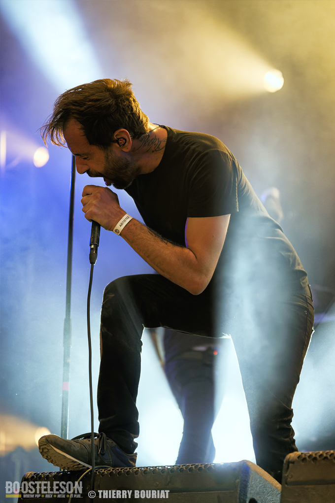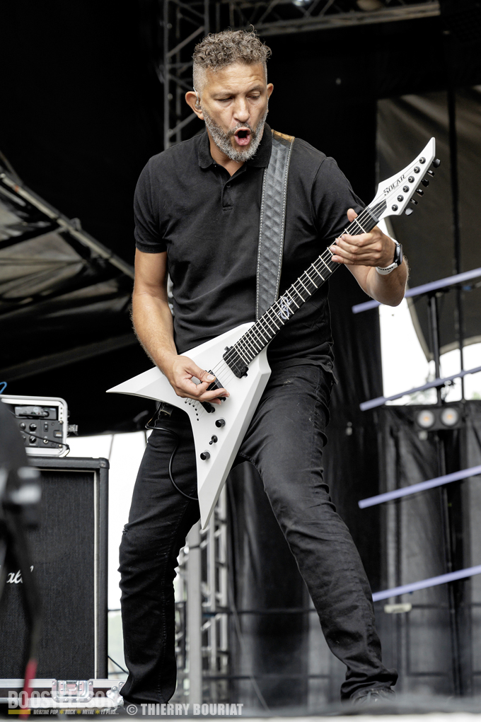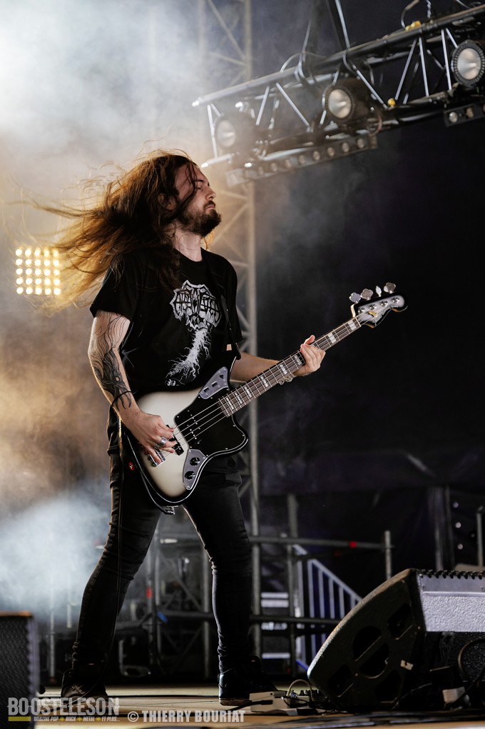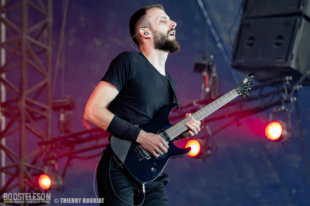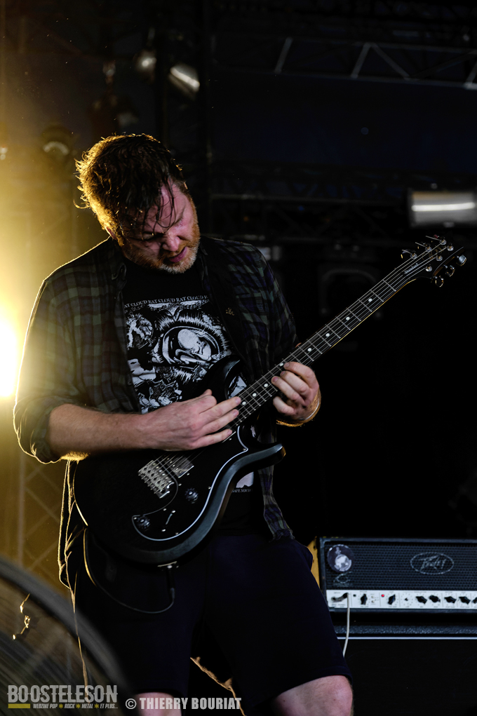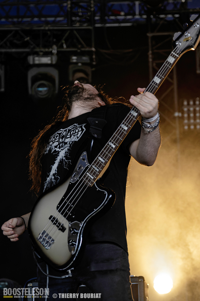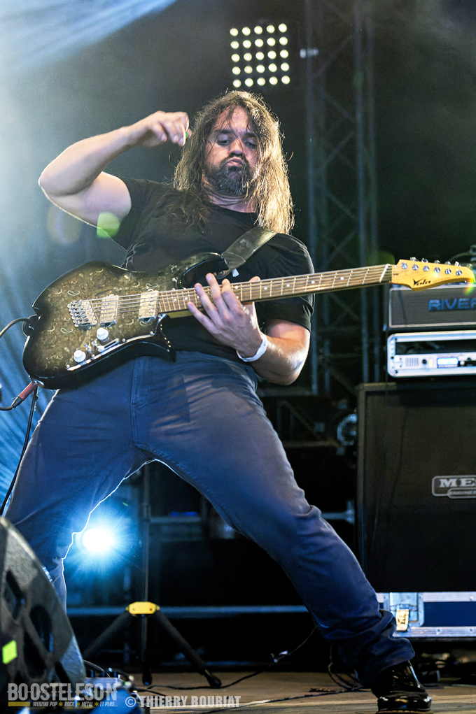 La formation nous offre une bonne prestation avec de nombreux titres du dernier double album Phanerozoic (sorti en deux parties entre 2018 et 2020) plus éclectique dans son approche musicale que les précédentes productions du groupe et quelques compos de Pelagical (2013). Des compos aux ambiances contrastées avec un enchainement de moments musclés et de passages plus mélodiques, beaucoup de breaks. Une belle communion avec le public conquis, Loïc Rossetti (chant) n’hésitera pas à se jeter dans la foule micro à la main. Le son est plutôt bon, les lights aussi avec un équilibre entre les lumières rouges et bleues couplées à quelques effets de fumée, et des passages agressifs soutenus par des stroboscopes massifs (pas toujours faciles pour les photographes). Une prestation réussie et de qualité, des musiciens aguerris. A vite revoir sur scène.