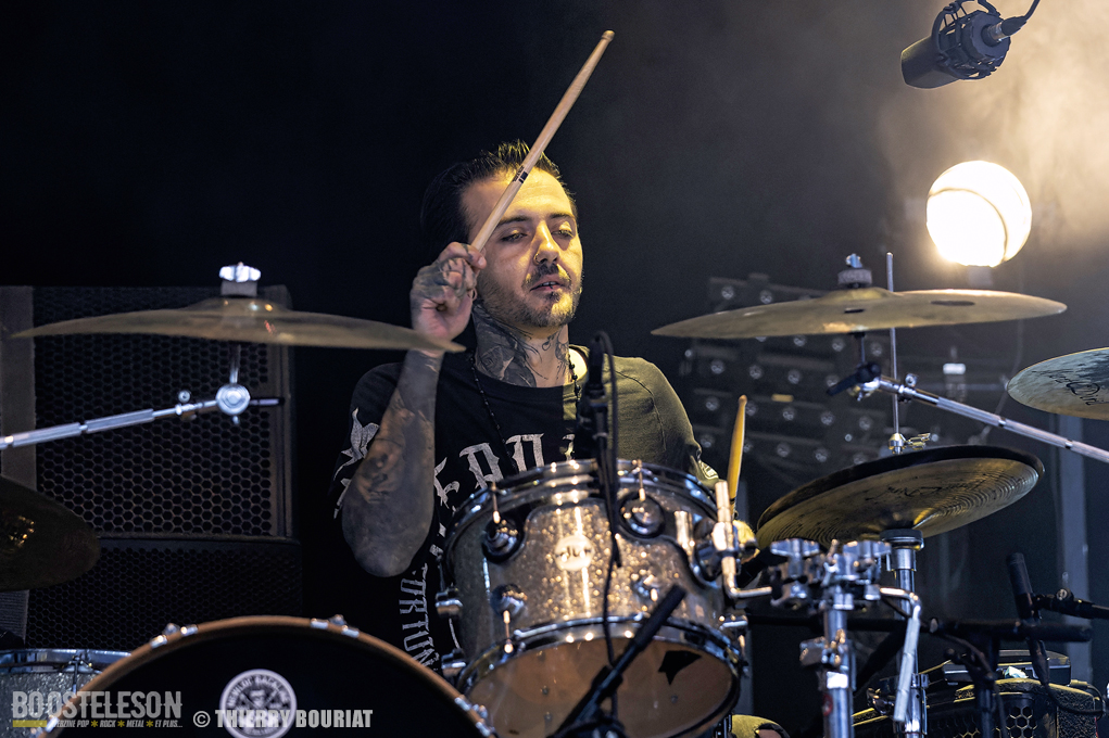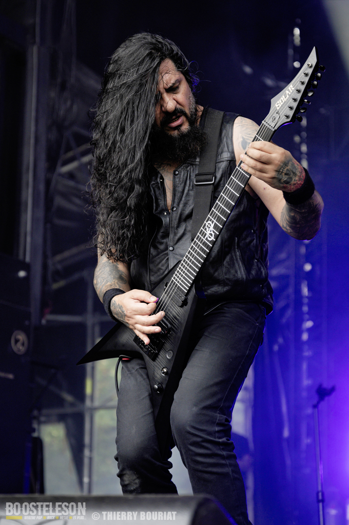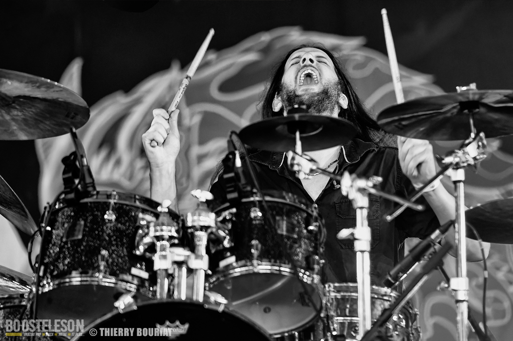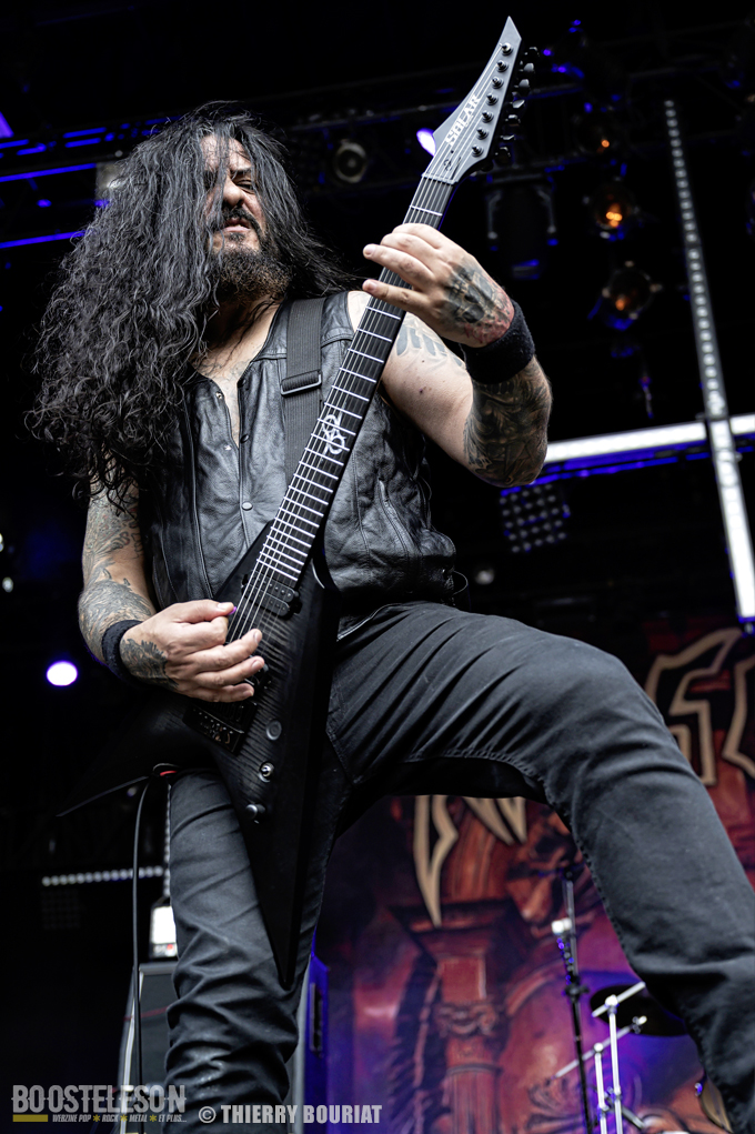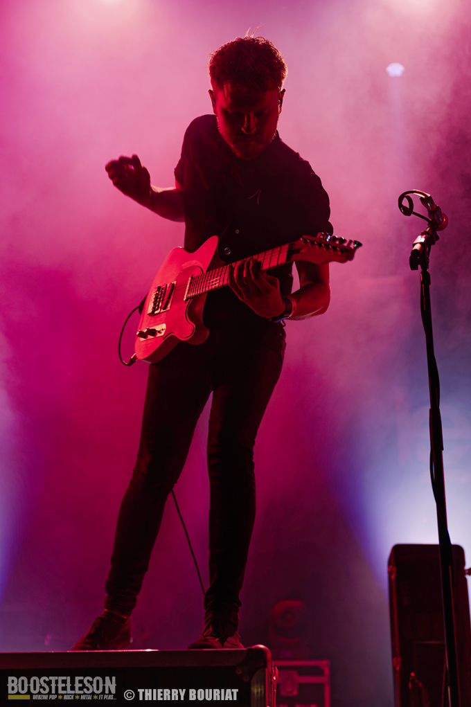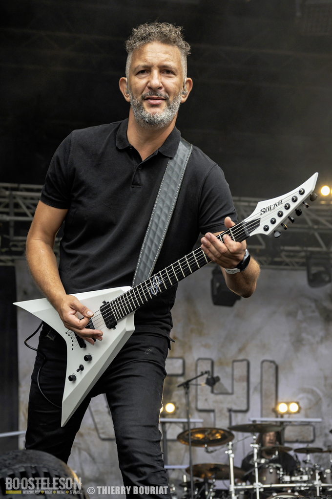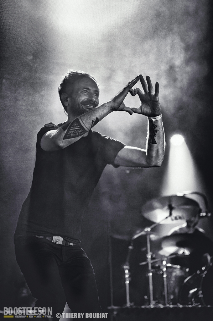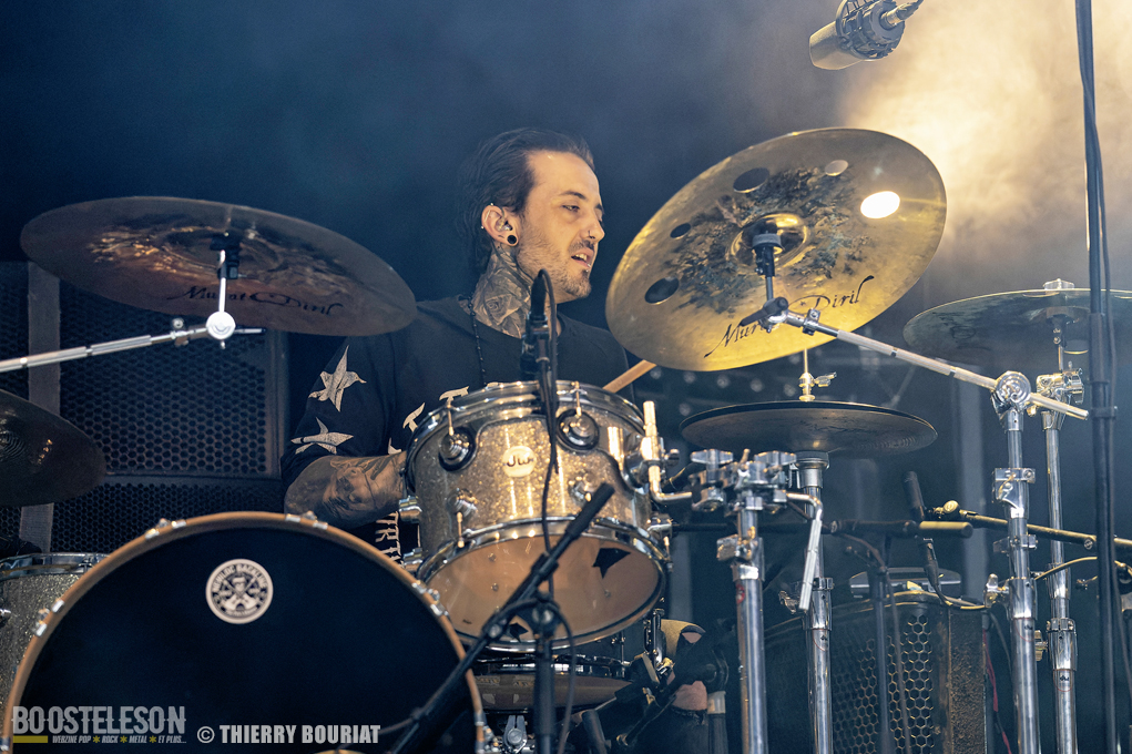 La formation nous offre une bonne prestation avec de nombreux titres du dernier double album Phanerozoic (sorti en deux parties entre 2018 et 2020) plus éclectique dans son approche musicale que les précédentes productions du groupe et quelques compos de Pelagical (2013). Des compos aux ambiances contrastées avec un enchainement de moments musclés et de passages plus mélodiques, beaucoup de breaks. Une belle communion avec le public conquis, Loïc Rossetti (chant) n’hésitera pas à se jeter dans la foule micro à la main. Le son est plutôt bon, les lights aussi avec un équilibre entre les lumières rouges et bleues couplées à quelques effets de fumée, et des passages agressifs soutenus par des stroboscopes massifs (pas toujours faciles pour les photographes). Une prestation réussie et de qualité, des musiciens aguerris. A vite revoir sur scène.