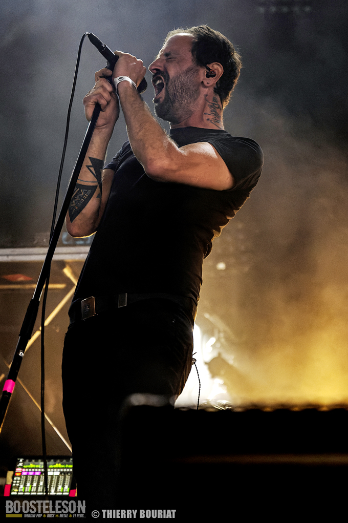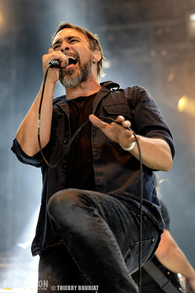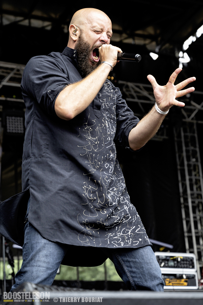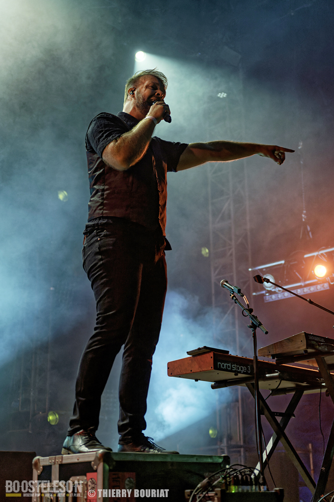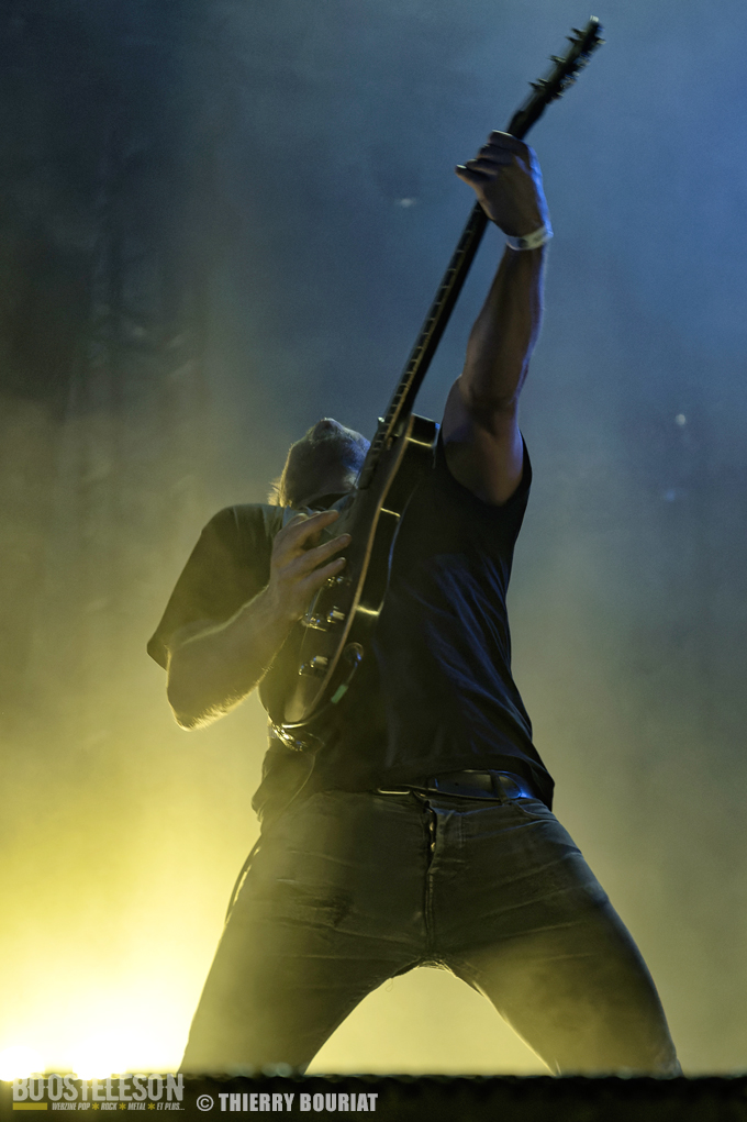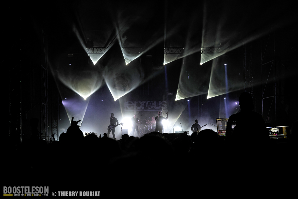 Je m’empresse de revenir à la Massey Ferguscène déjà bondée pour le concert des norvégiens de Leprous. Gros level comme d’habitude avec Leprous. Baard à la batterie martèle ses futs avec puissance et technicité, Einar au chant fait une prestation incroyable d’une grande justesse, sans oublier Tor Oddmund, Simen et Robin eux aussi particulièrement performants. Le son est impeccable L’enchaînement « Below », « From The Flame », « The Price » est des plus réussi et la foule reprend chaque refrain. Pour avoir vu Leprous à plusieurs reprises, j’ai trouvé qu’ils avaient quelque peu musclé les titres les plus pop pour ce Motocultor. Juste un petit regret, celui de ne pas avoir eu de morceaux tirés des albums Coal ou Bilateral (mon préféré) ainsi que (en tant que photographe je tiens à le préciser) des lights avec beaucoup de jeux d’ombre, des musiciens peu éclairés, des lights à dominante rouge et bleu, beaucoup de fumée…