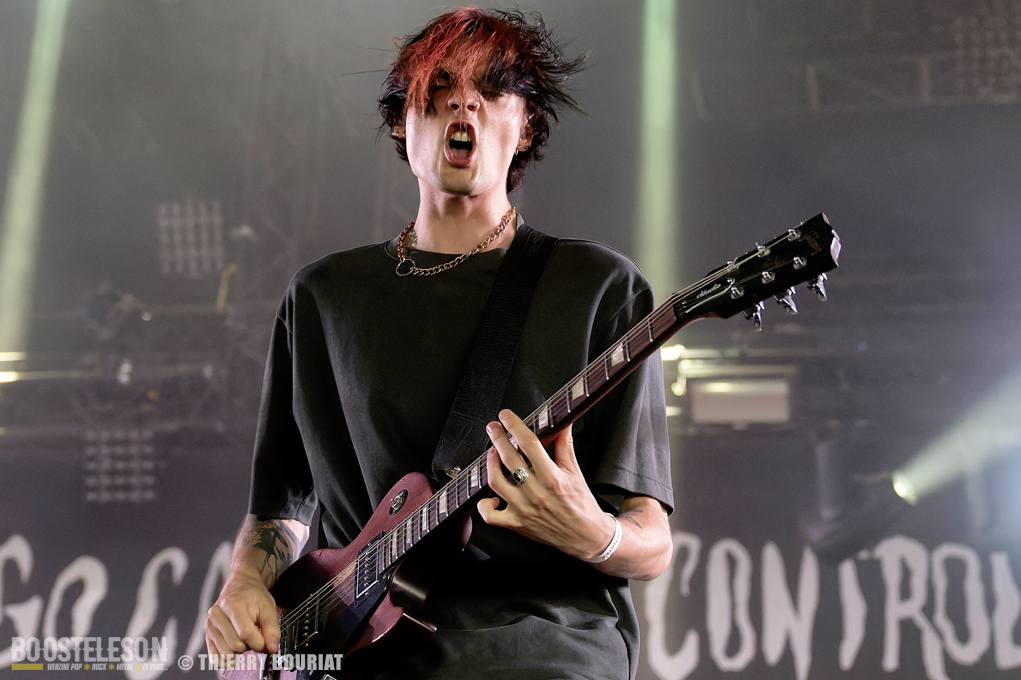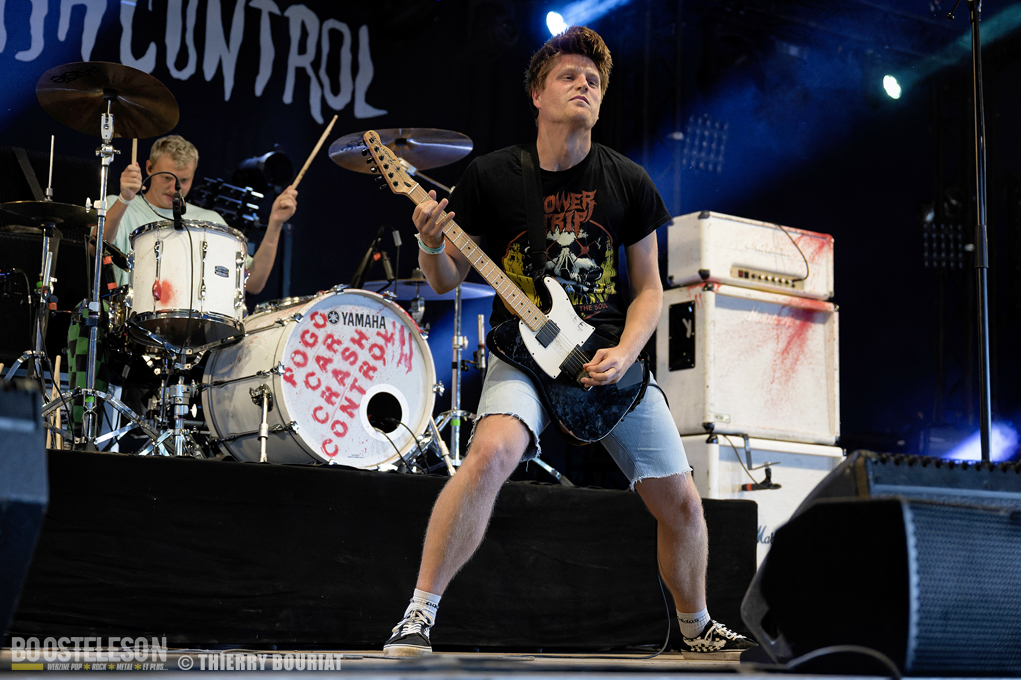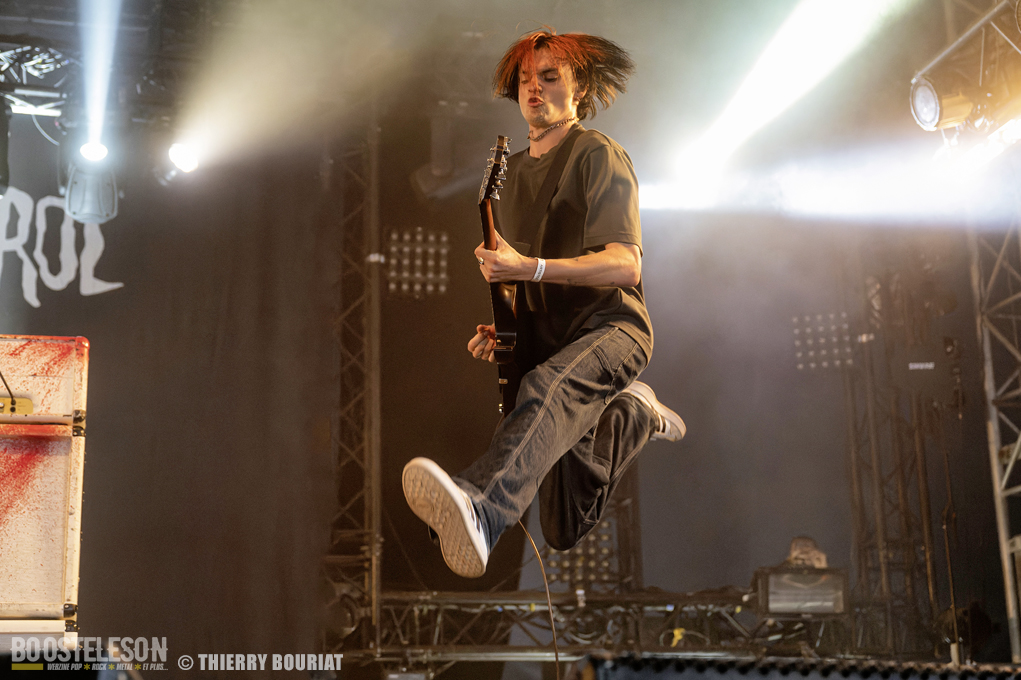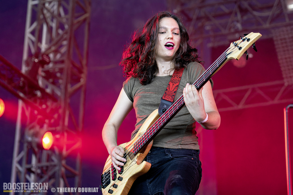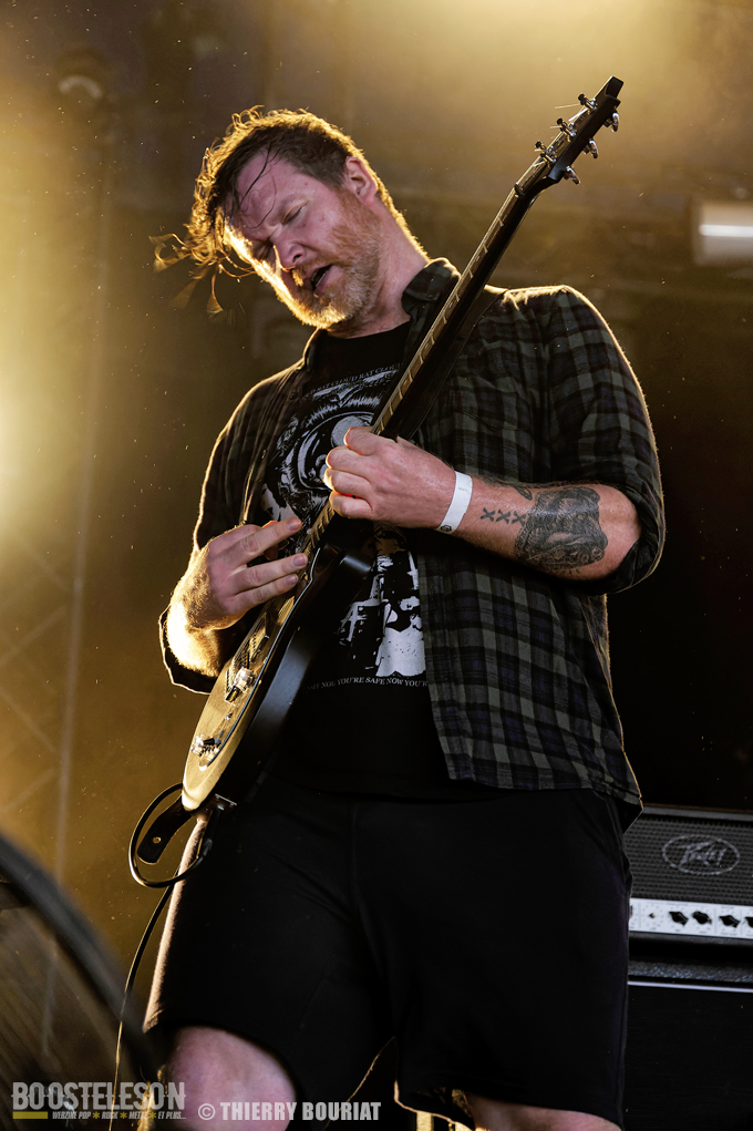 Je voulais découvrir live Pogo Car Crash Control que je ne connaissais que par le biais de YouTube qui me les avait proposés en lecture aléatoire. Et là, la claque… une énergie dévastatrice, ça bouge, ça saute, on en prend plein la gueule, les refrains sont accrocheurs. « Aluminium » titre tiré du dernier album « Fréquence Violence » ouvre les hostilités et le public ne se fait pas prié pour enchainer pogos et slams dans la fosse de la Massey. Lola à la basse est explosive, une belle présence scénique tout comme Olivier (chant, guitare), Simon (guitare, chant) et Louis derrière sa Tama maculée de tâches de sang (les amplis Marshall également). Au total 16 titres (dont 8 du dernier album) décapants et un set survitaminé.