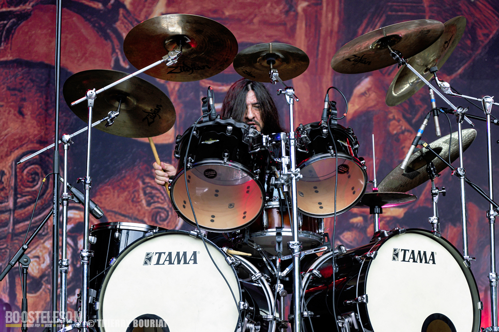 Krisiun a passé en revue leur discographie, avec une part belle réservée aux vieilles compos. Les 3 frères sont heureux d’être sur scène, Alex Camargo (basse, chant) a le sourire aux lèvres. Krisiun c’est un rouleau compresseur, ça joue vite et fort.