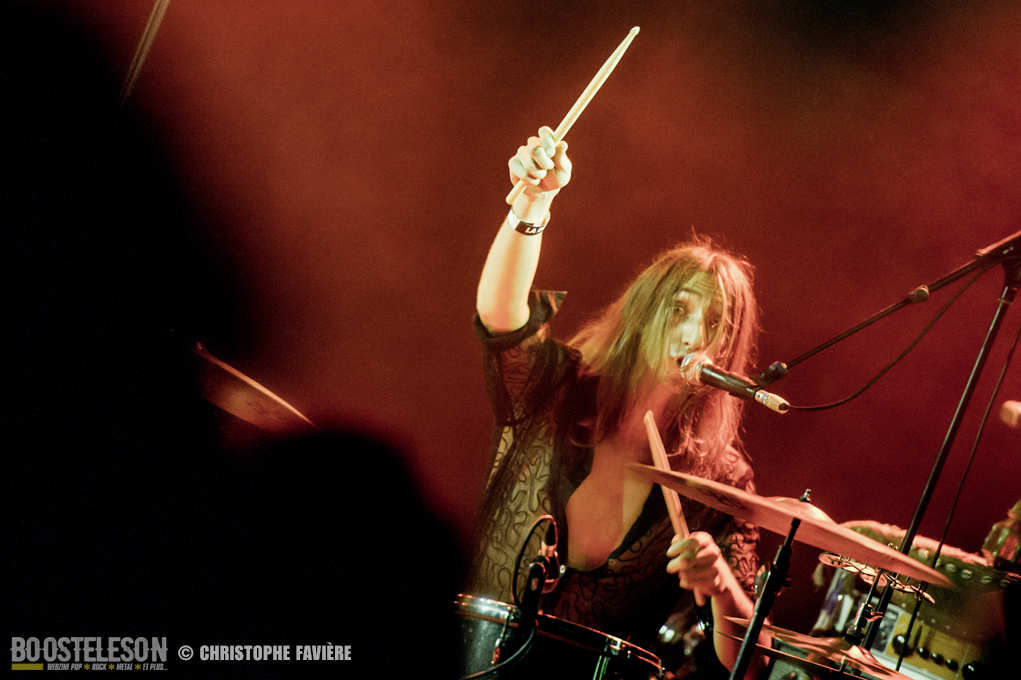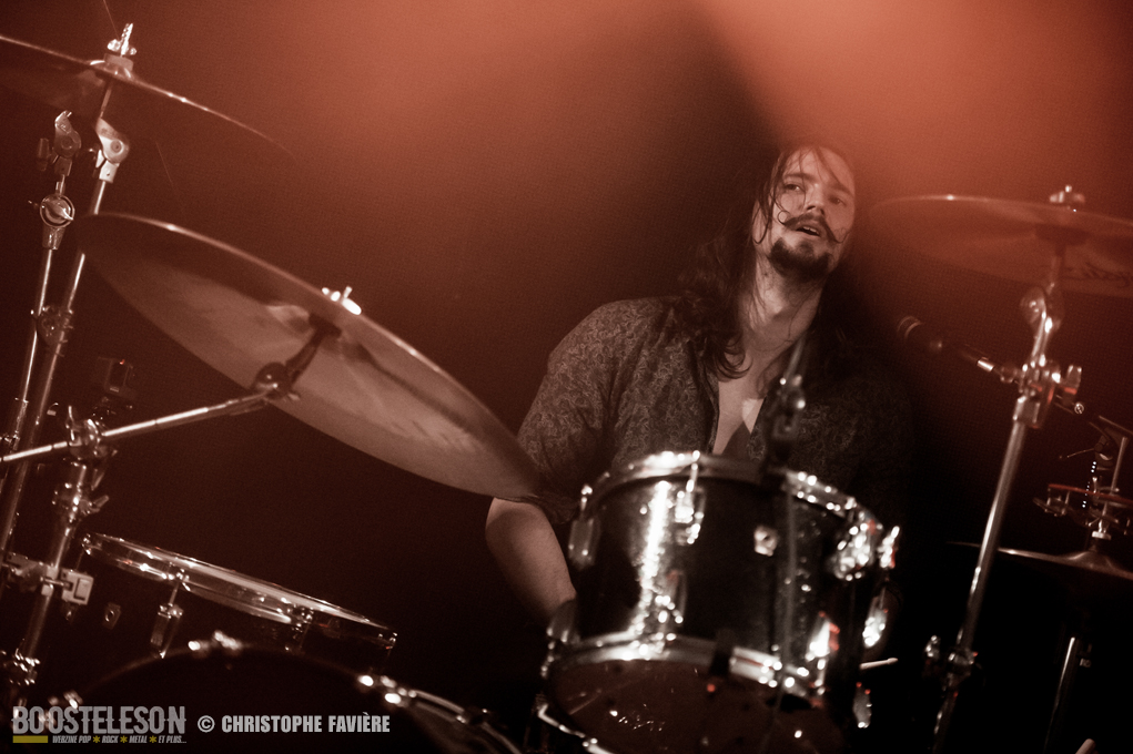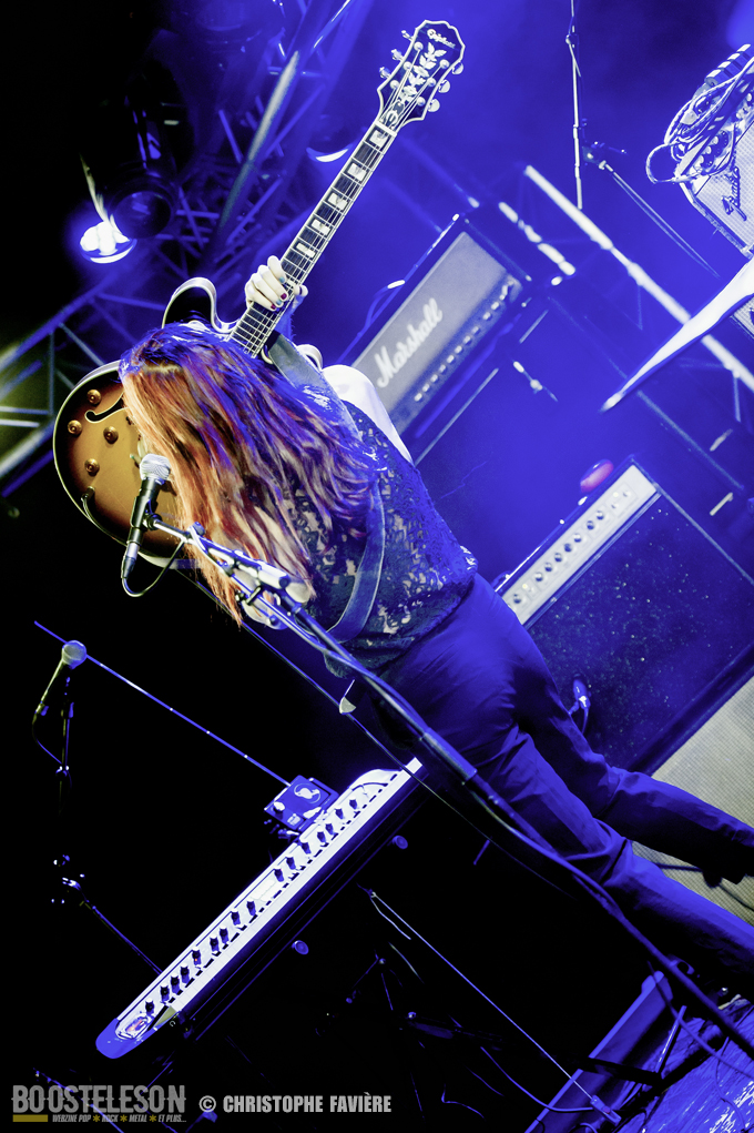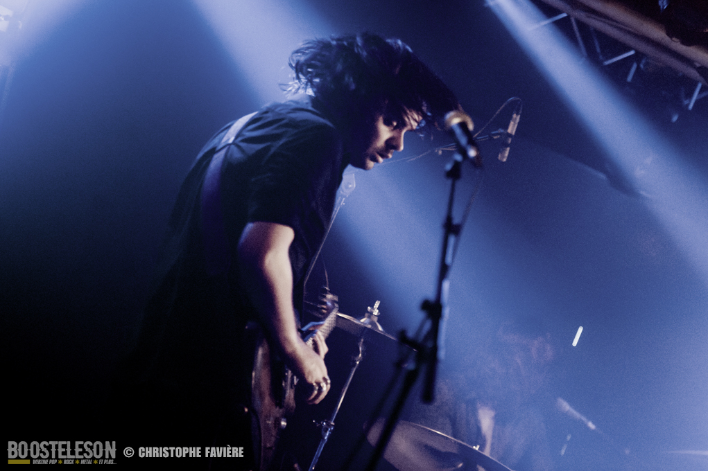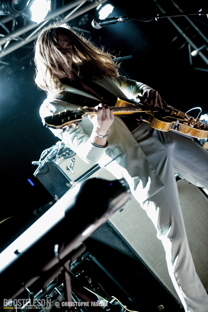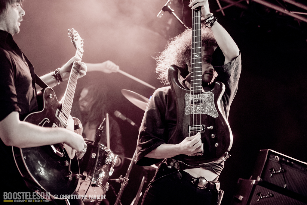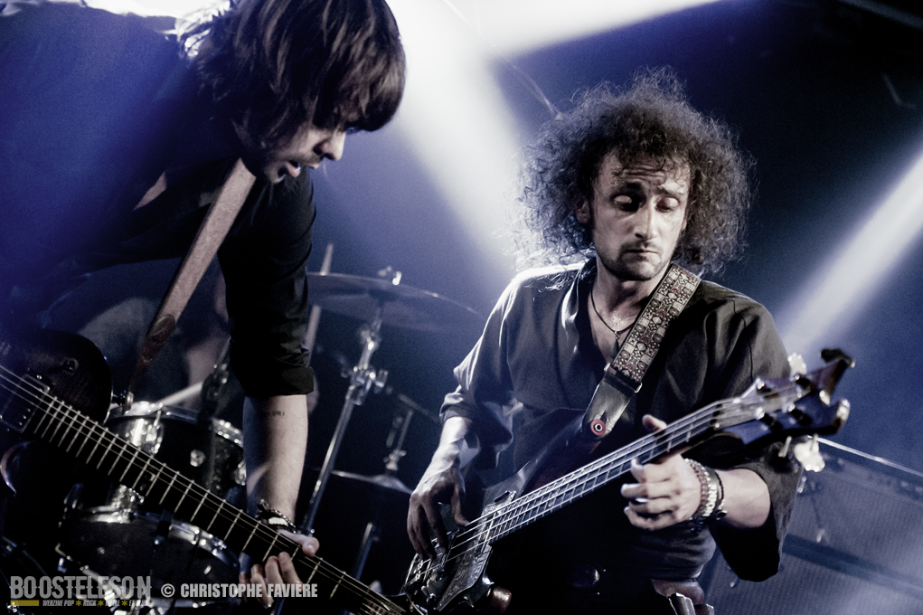 Pour leur avant dernier concert avant de rentrer en studio, ils ont conviés The Twin Souls à partager la scène de la Boule Noire avec eux. Et ce fut la première claque de la soirée. Une vraie découverte pour moi. Comment deux frères peuvent faire autant de boucan avec juste une guitare et une batterie. Issue directement des années 70 mais avec un son monumental, leur musique est vraiment un régale pour les oreilles. Chacun joue de la batterie comme de la guitare, chacun chante, fait les chœurs, bref les deux frères sont des touche à tout géniaux ! Ça bidouille les pédales pour sortir des sons distordus de la guitare, ça triture un thérémine, ça chante dans le micro de la guitare pour distordre la voix, ils expérimentent tout pour le ravissement de la Boule Noire. Ils vivent leur musique avec passion et des sourires de tous les instants et une énergie qu’ils transmettent au public avec un naturel déconcertant. Un groupe à suivre assurément.