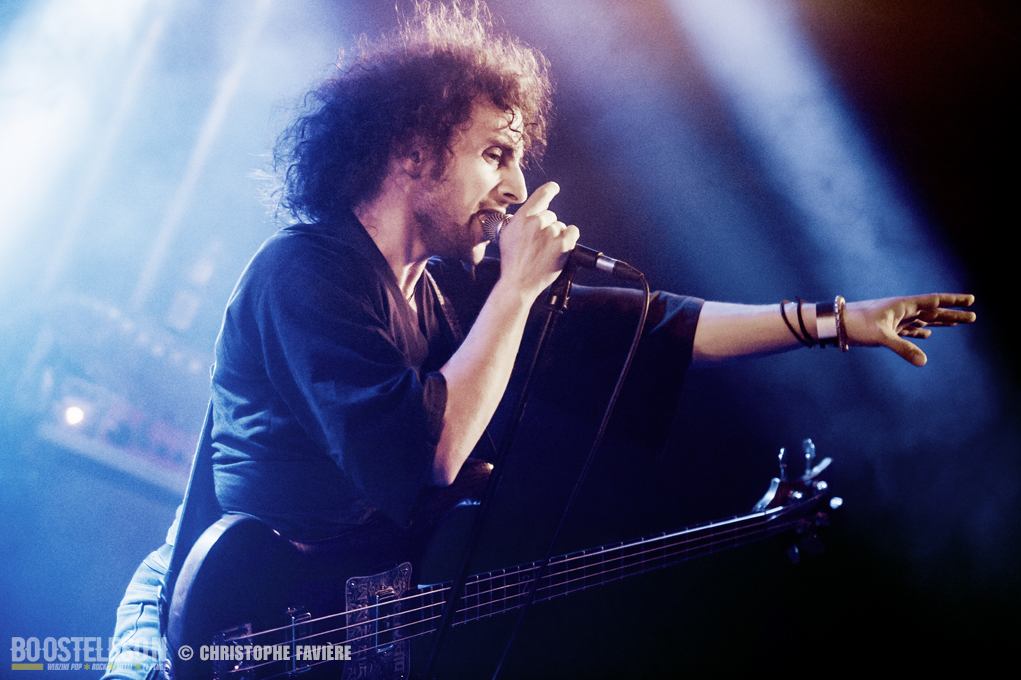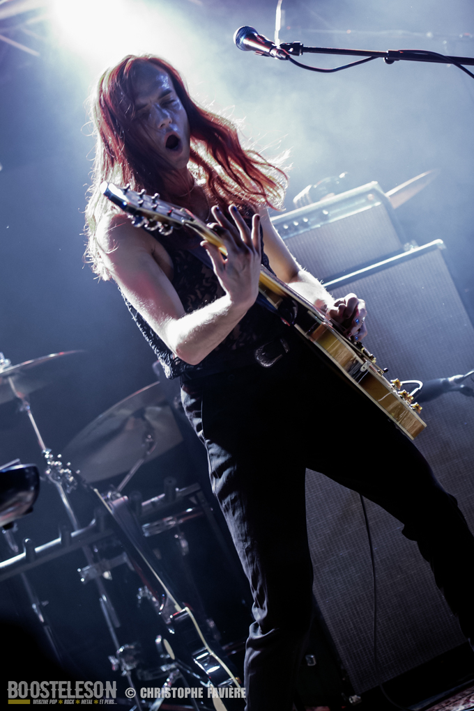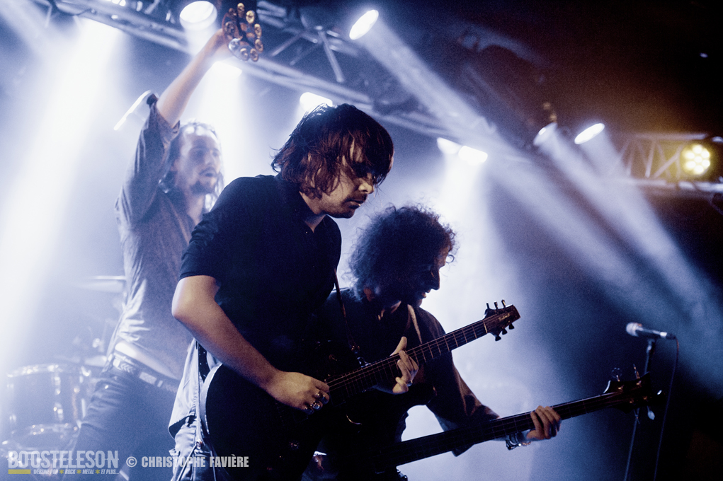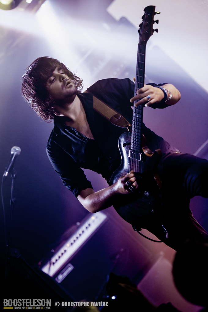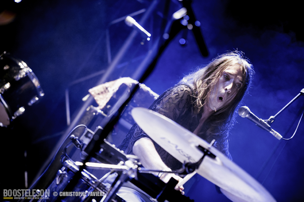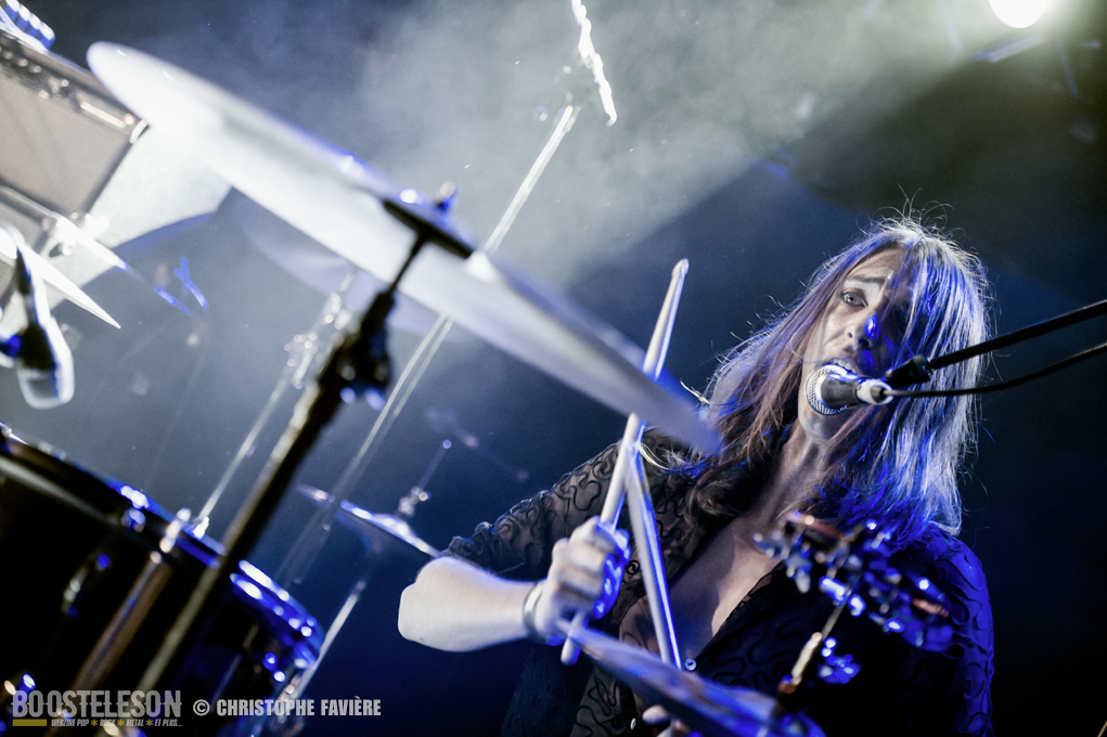 Pour leur avant dernier concert avant de rentrer en studio, ils ont conviés The Twin Souls à partager la scène de la Boule Noire avec eux. Et ce fut la première claque de la soirée. Une vraie découverte pour moi. Comment deux frères peuvent faire autant de boucan avec juste une guitare et une batterie. Issue directement des années 70 mais avec un son monumental, leur musique est vraiment un régale pour les oreilles. Chacun joue de la batterie comme de la guitare, chacun chante, fait les chœurs, bref les deux frères sont des touche à tout géniaux ! Ça bidouille les pédales pour sortir des sons distordus de la guitare, ça triture un thérémine, ça chante dans le micro de la guitare pour distordre la voix, ils expérimentent tout pour le ravissement de la Boule Noire. Ils vivent leur musique avec passion et des sourires de tous les instants et une énergie qu’ils transmettent au public avec un naturel déconcertant. Un groupe à suivre assurément.