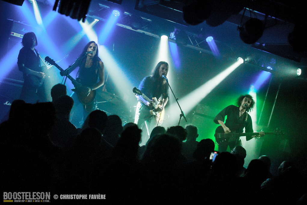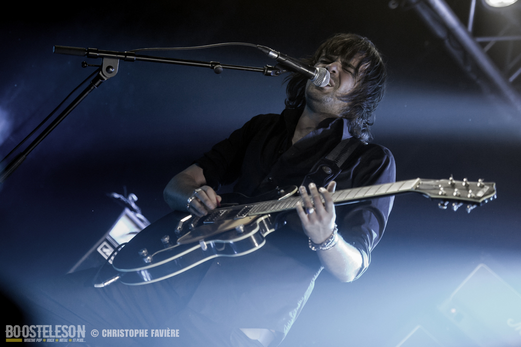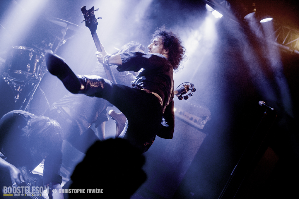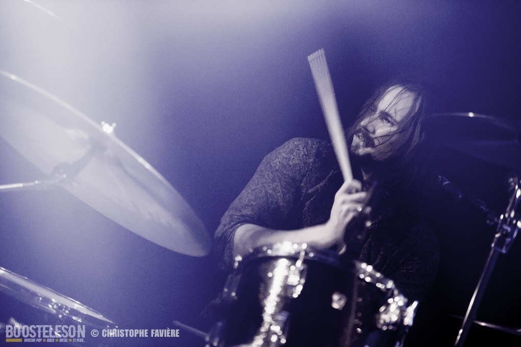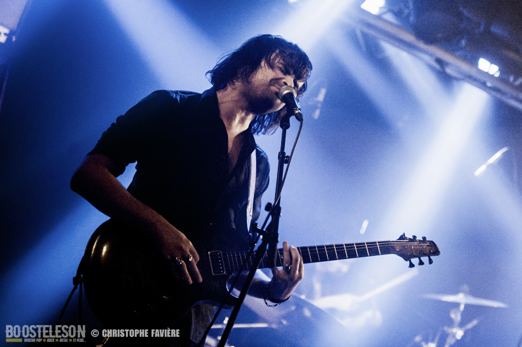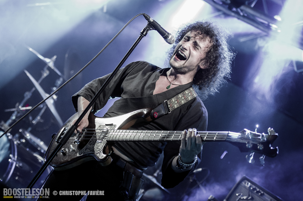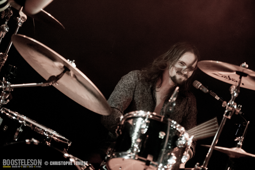Pour leur avant dernier concert avant de rentrer en studio, ils ont conviés The Twin Souls à partager la scène de la Boule Noire avec eux. Et ce fut la première claque de la soirée. Une vraie découverte pour moi. Comment deux frères peuvent faire autant de boucan avec juste une guitare et une batterie. Issue directement des années 70 mais avec un son monumental, leur musique est vraiment un régale pour les oreilles. Chacun joue de la batterie comme de la guitare, chacun chante, fait les chœurs, bref les deux frères sont des touche à tout géniaux ! Ça bidouille les pédales pour sortir des sons distordus de la guitare, ça triture un thérémine, ça chante dans le micro de la guitare pour distordre la voix, ils expérimentent tout pour le ravissement de la Boule Noire. Ils vivent leur musique avec passion et des sourires de tous les instants et une énergie qu’ils transmettent au public avec un naturel déconcertant. Un groupe à suivre assurément.