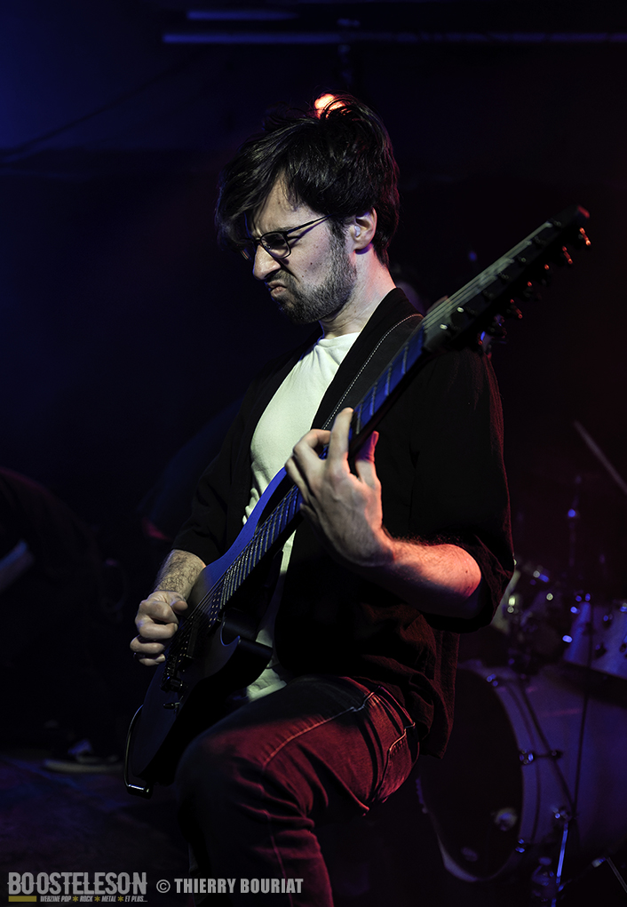Silvère : Je pense que la plupart du temps, les groupes partent d’un riff de guitare comme base de composition. Ils se demandent ensuite ce qu’ils aimeraient entendre avant et après ce riff afin d’en déduire une structure globale, puis ils rajoutent la basse et la batterie. Les paroles et la voix viennent en dernier. Notre groupe n’échappe pas à cette méthode “classique” de composition. Cela étant dit, il nous est arrivé à plusieurs reprises de procéder autrement. Par exemple, pour deux morceaux de l’album, Yumi nous a d’abord présenté une structure entière comprenant une ébauche d’orchestration (revisitée à posteriori par Francesco Ferrini) et une partie de batterie programmée. Rodolphe et moi avons ensuite composé les parties de guitare de manière à ce que ces dernières complètent les maquettes proposées par Yumi. Une autre fois, c’est à partir d’un sample que nous avons composé les parties de guitare avant d’élaborer une structure globale. A titre personnel, j’apprécie ces manières plus “atypiques” de composer. Je trouve que les morceaux sonnent différemment à l’arrivée.