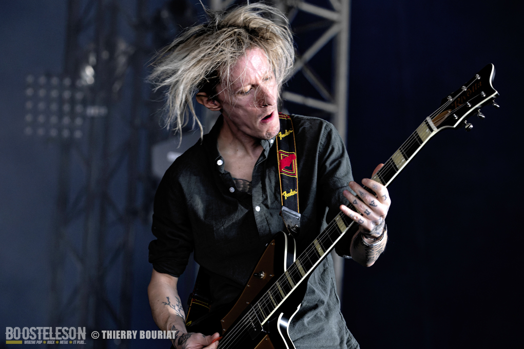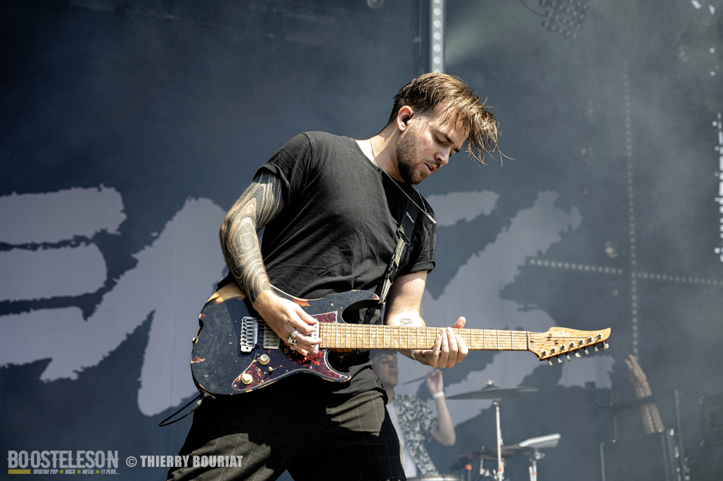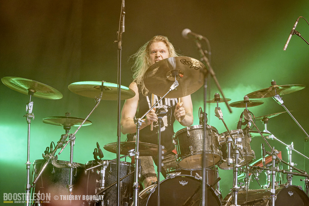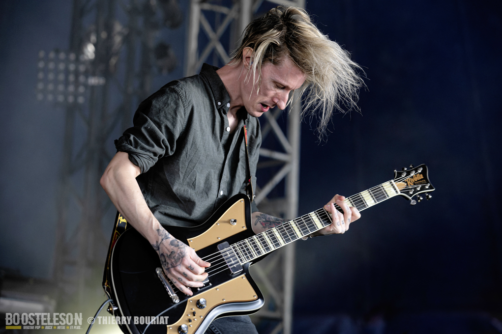 La générosité scénique du groupe est impressionnante. Sami Elbanna (chant, guitare) est un frontman survolté. Il court, exhibe son corps entièrement tatoué, monte sur les amplis, saute, descend au contact du public, … et nous propose quelques battles avec Arttu Lesonen l’autre guitariste.