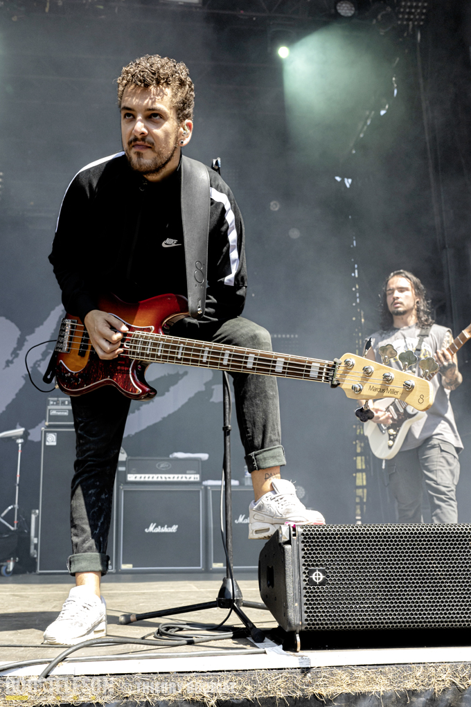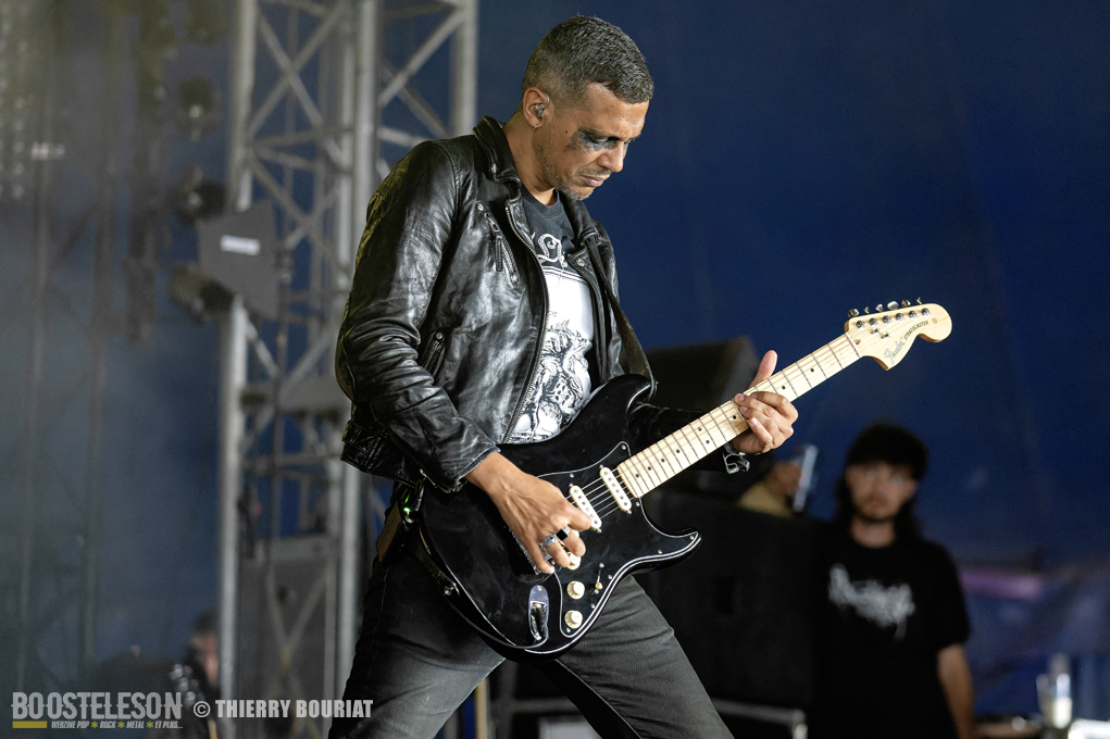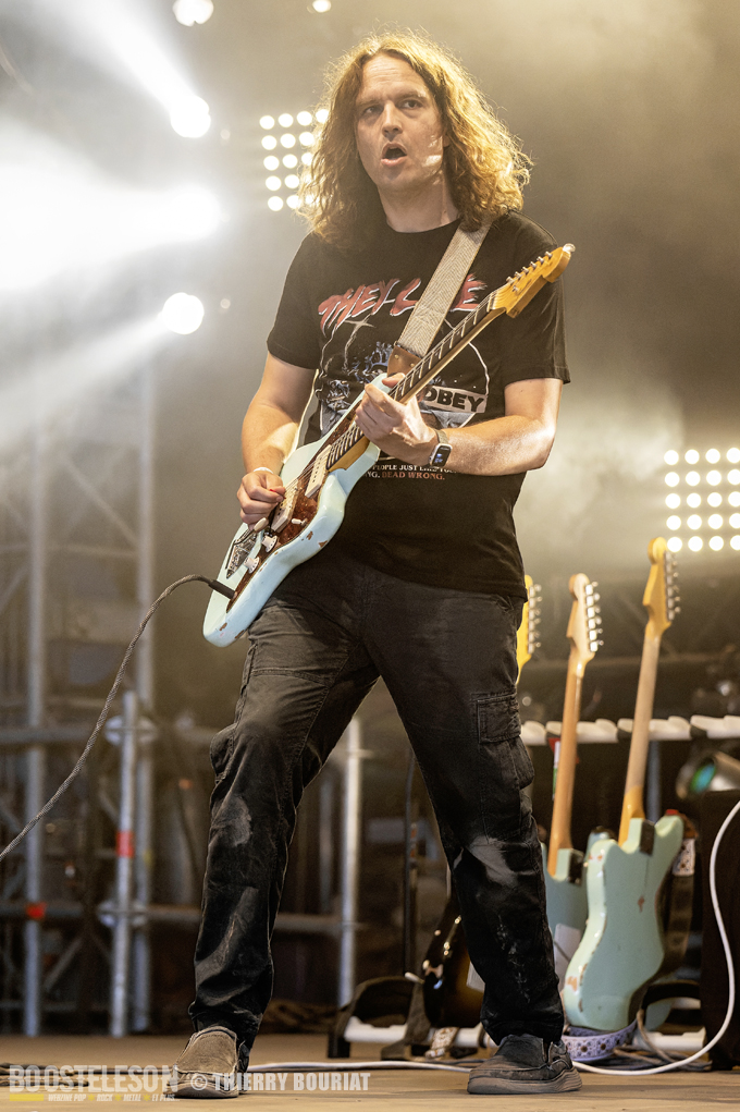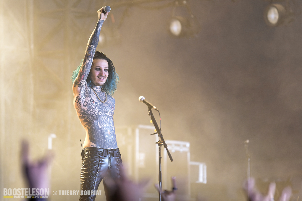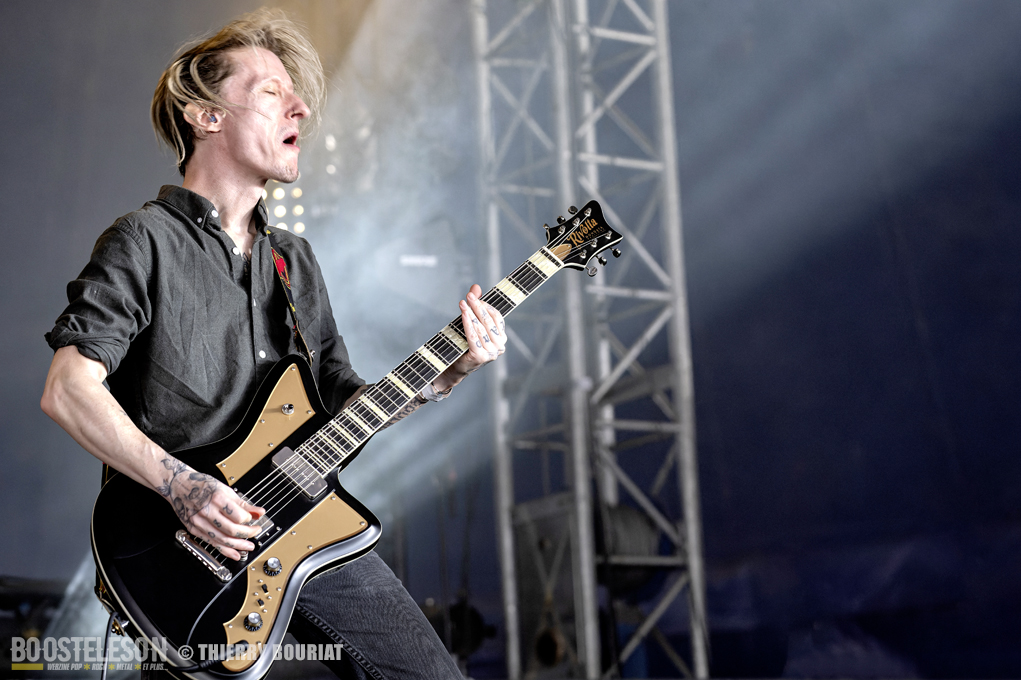 La générosité scénique du groupe est impressionnante. Sami Elbanna (chant, guitare) est un frontman survolté. Il court, exhibe son corps entièrement tatoué, monte sur les amplis, saute, descend au contact du public, … et nous propose quelques battles avec Arttu Lesonen l’autre guitariste.
