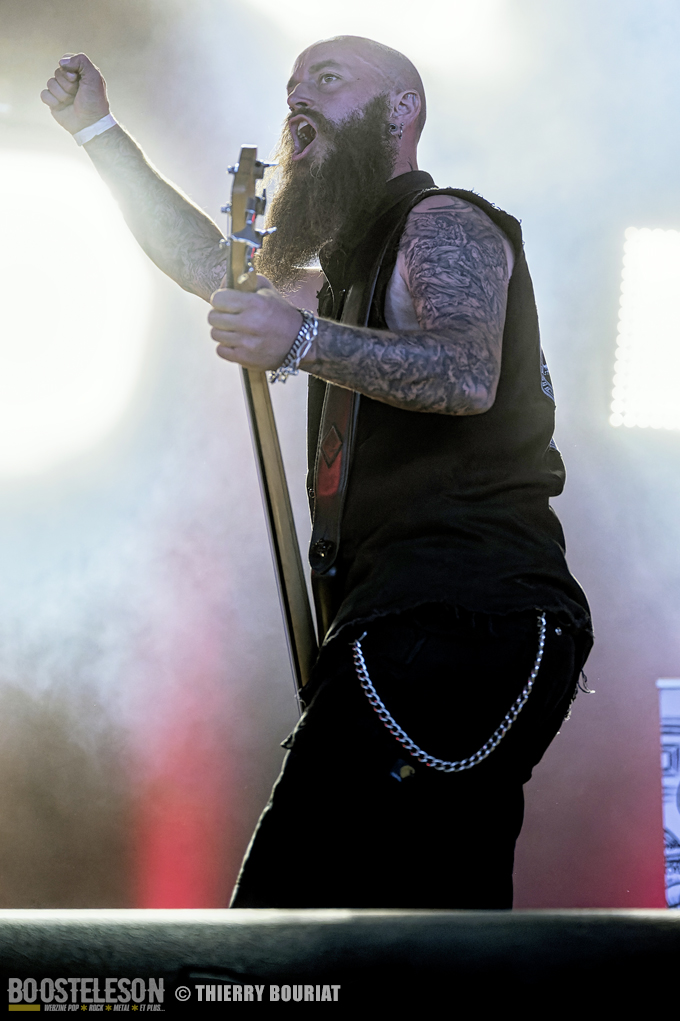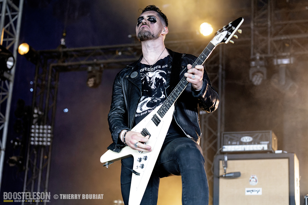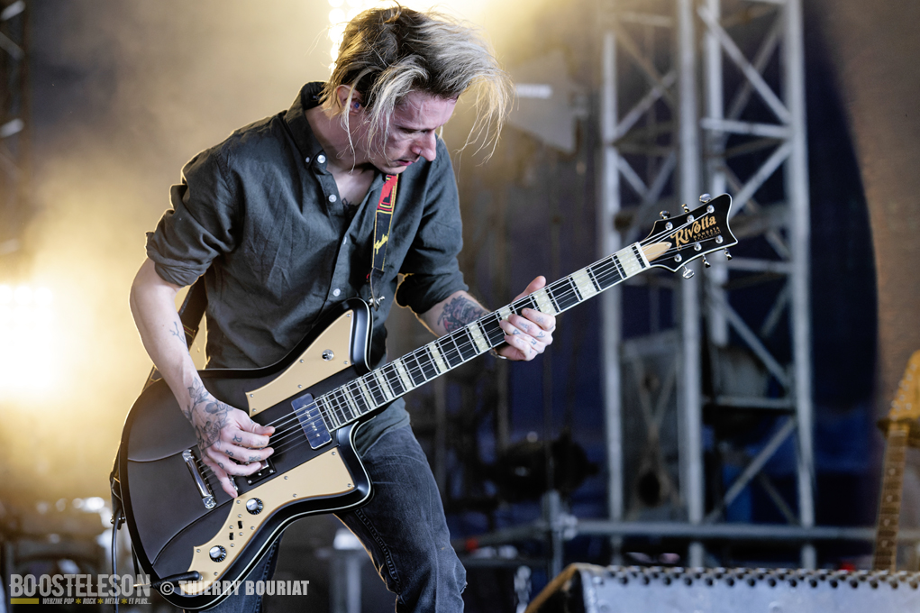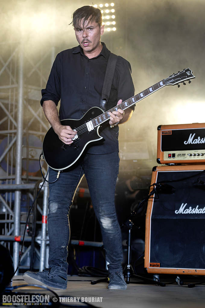 Les riffs de guitare d’Eddy Pelletier sont agressifs et efficaces, ses poses sont très photogéniques, le duo basse / batterie d’Olivier Le Lin Morgan et d’Anciles est efficace à souhait, Thomas Lord Noué s’avère un redoutable frontman et dirige la première session de bagarre de la journée sous la Dave Mustage qui engendre un impressionnant nuage de poussière.