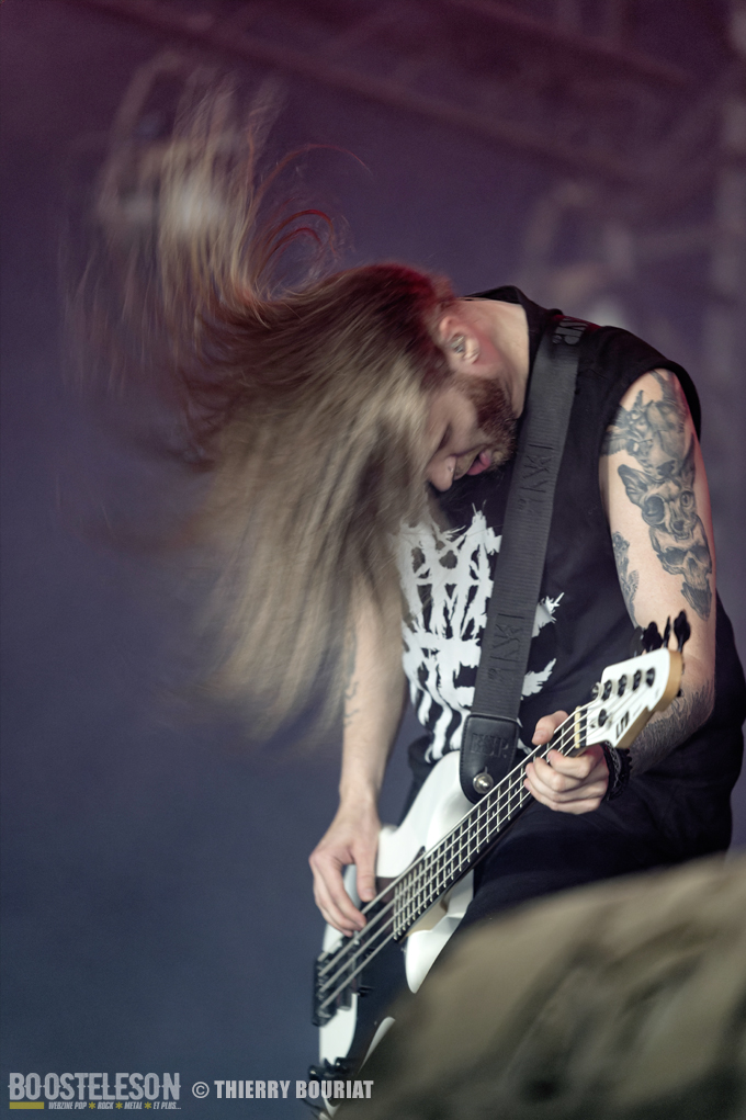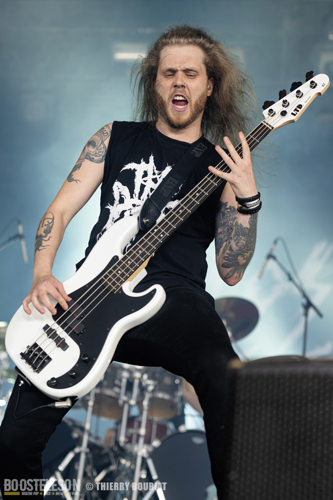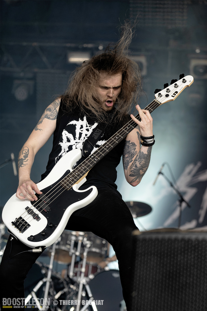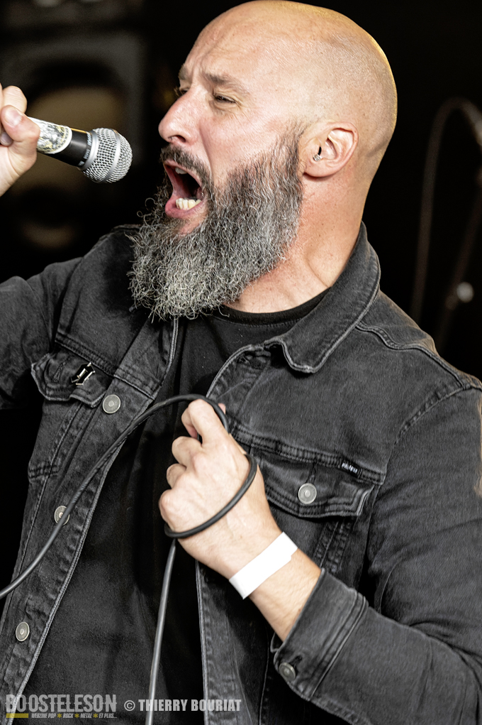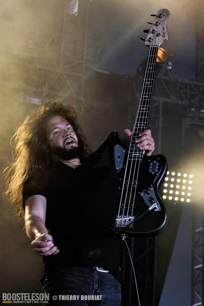 Sur scène le groupe ne ménage pas ses efforts et offre au public les morceaux de son album « Void » sorti en 202. Ça bouge bien, c’est intense, on ressent une intensité émotionnelle forte, Maxime à la basse est très charismatique, Arno au chant alterne screams et chant clair, les guitaristes Pierre et Gru (ancien bassiste d’Ultra Vomit pour ce dernier) balancent de gros riffs, Alain martèle ses futs sans concession.