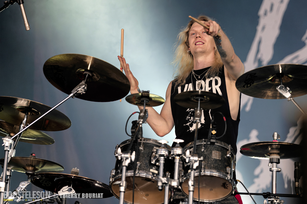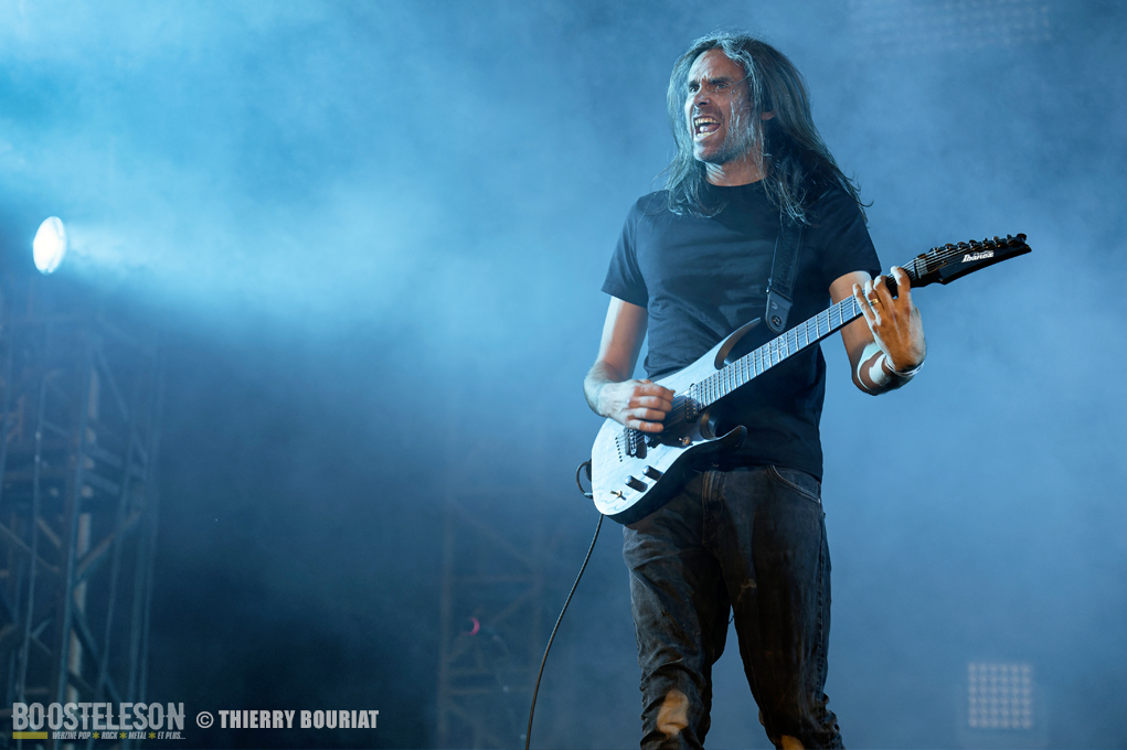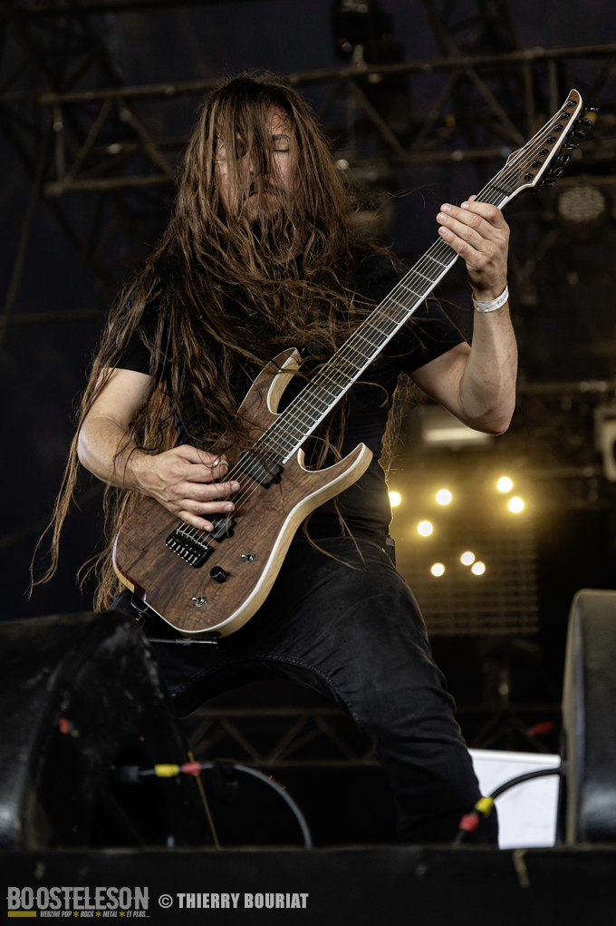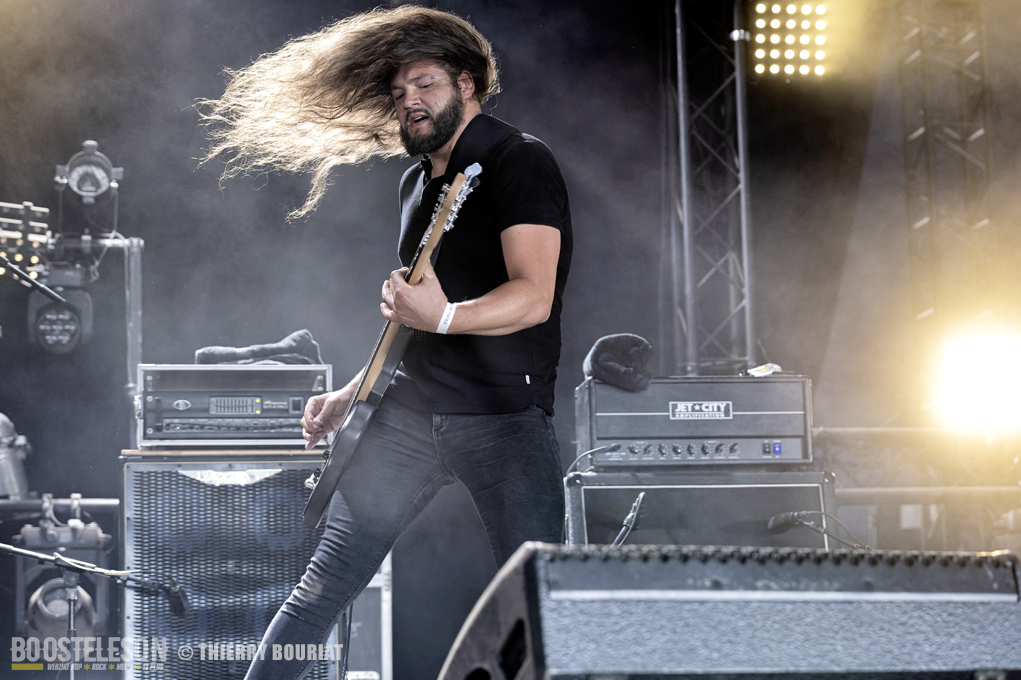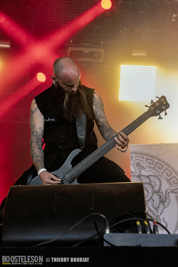 Sur scène le groupe ne ménage pas ses efforts et offre au public les morceaux de son album « Void » sorti en 202. Ça bouge bien, c’est intense, on ressent une intensité émotionnelle forte, Maxime à la basse est très charismatique, Arno au chant alterne screams et chant clair, les guitaristes Pierre et Gru (ancien bassiste d’Ultra Vomit pour ce dernier) balancent de gros riffs, Alain martèle ses futs sans concession.
