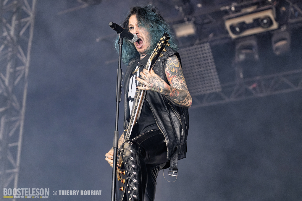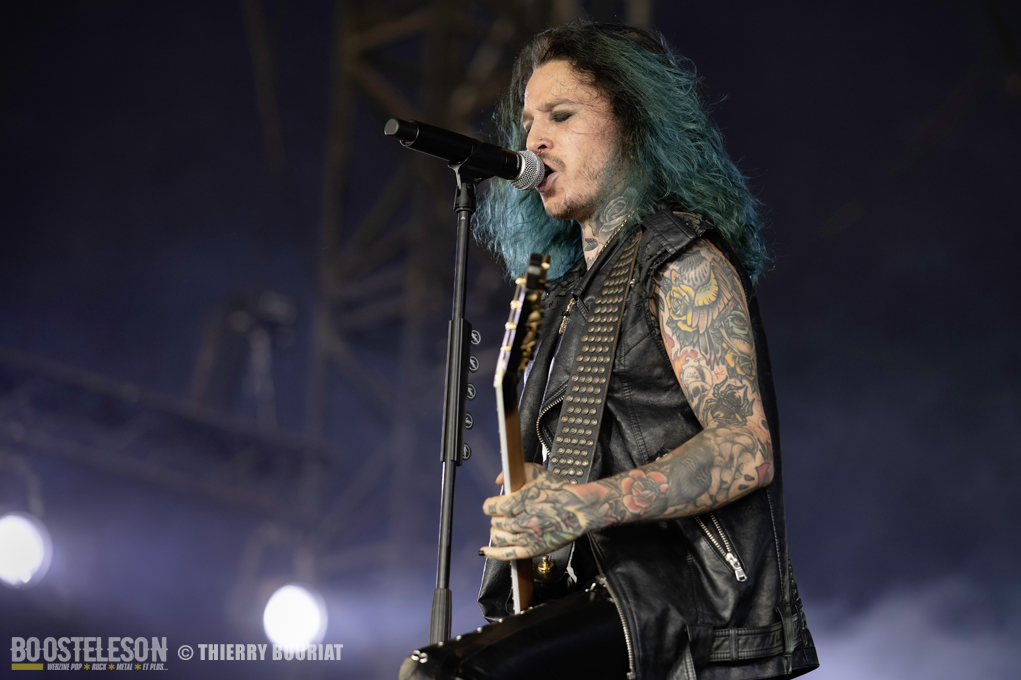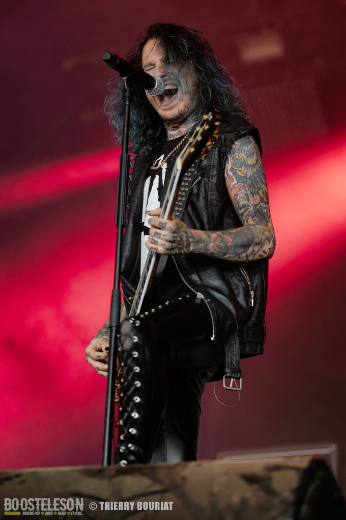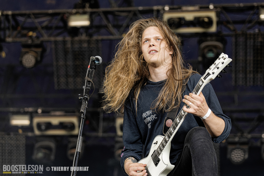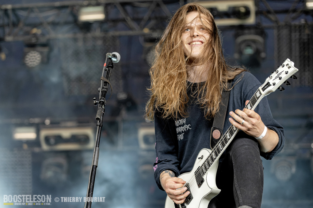 Changement de style assez radical pour la suite de la journée, avec Lost Society, groupe finlandais sur la Dave Mustage dont j’avais plus qu’apprécié l’album « No Absolution » sorti en 2020 chez Nuclear Blast et les clips « 112 » et « Stitches » du dernier opus « If The Sky Came Down » qui paraitra en octobre 2022.