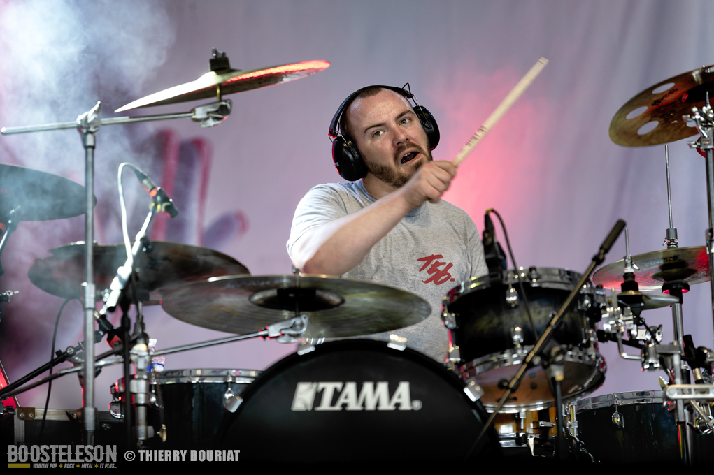Pas de temps mort, pas de blabla, vraiment une belle entrée en matière et une présence scénique des plus énergique avec Steve Tréguier à la basse, Sylvain Connier au chant, Léo Natale à la guitare et Martin Gronnier derrière ses futs.