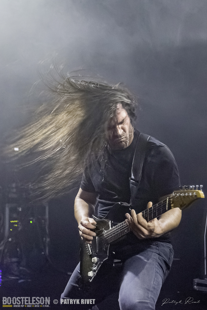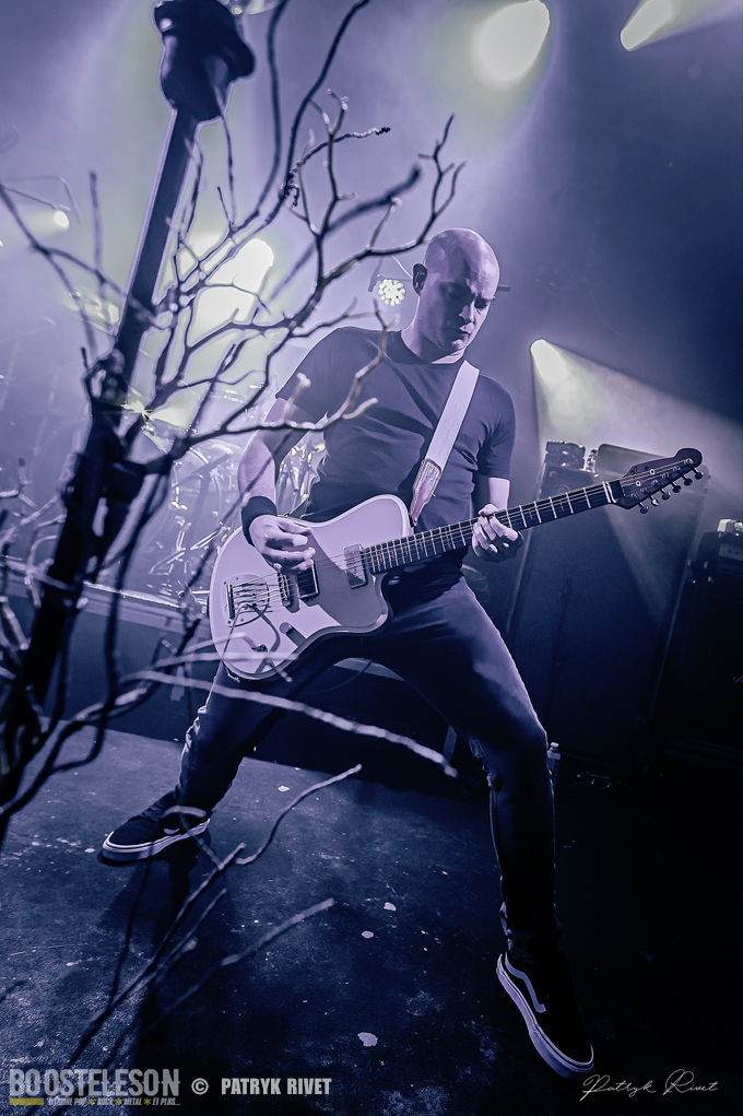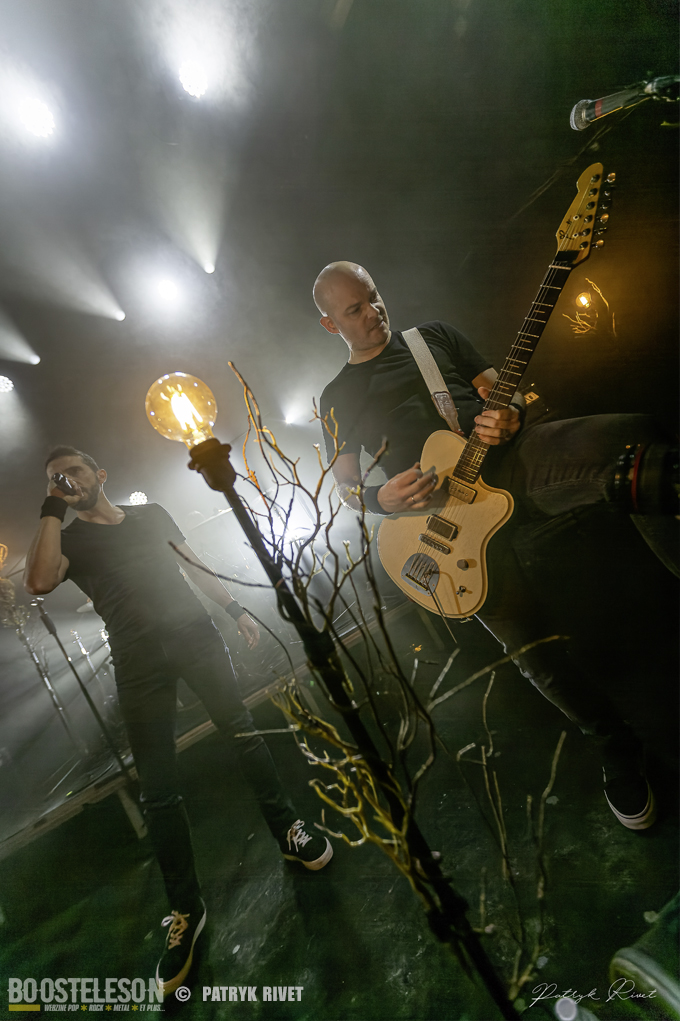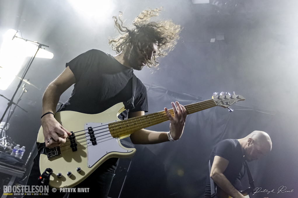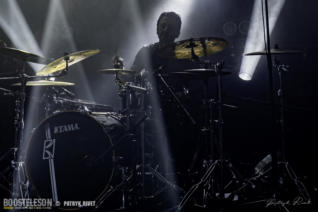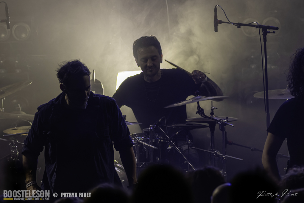 Place aux maitres de la soirée, j’ai nommé Klone. Le neuvième album du groupe de Métal Progressif Poitevin, intitulé « Meanwhile », est sorti la veille de leur passage au Trabendo. Mélange de Riffs lourds et planants, ça cogne fort à la batterie, je suis impressionné par la voix habitée chargée d’émotion de Yann Ligner qui enrobe à merveille la force et l’intensité dégagée par le reste du groupe parfaitement rodé à la scène. Morceaux contrastés alternants les Break survitaminés et les moments calmes. Comme pour leurs prédécesseurs pourtant, la voix était en retrait depuis le devant de la scène, ce souci était moins prononcé lorsque je me suis déplacé dans le fond de la salle pour finir ma série de clichés. Klone aura fait plaisir à ses fans en communion absolue avec le groupe. Une belle soirée éclectique pleine de surprises et de découvertes.