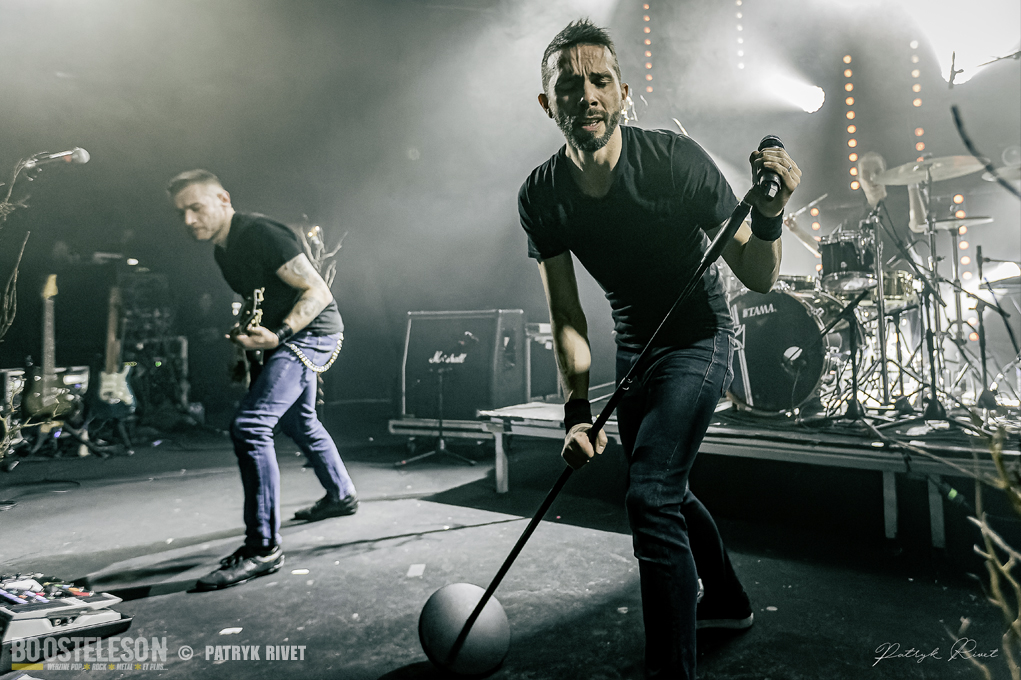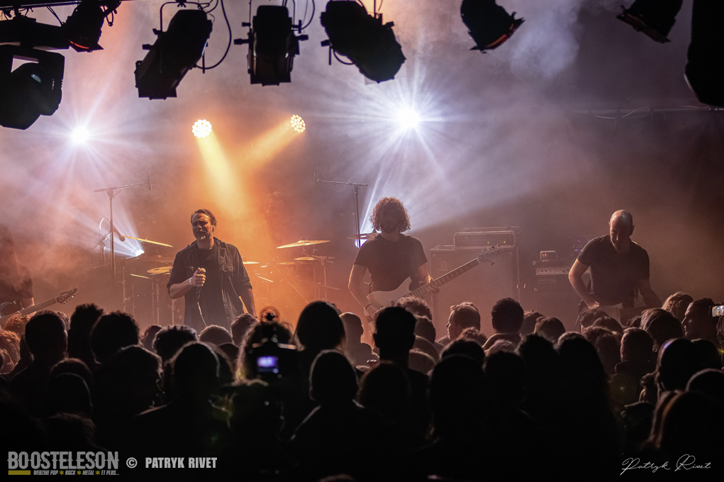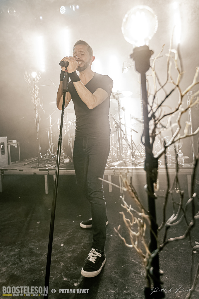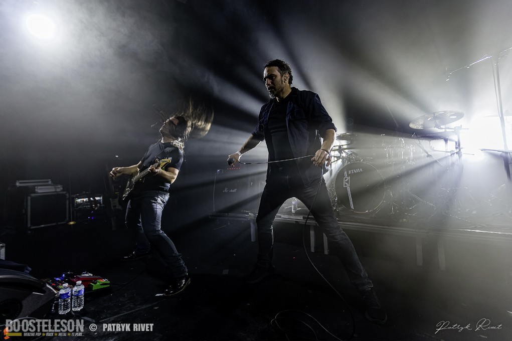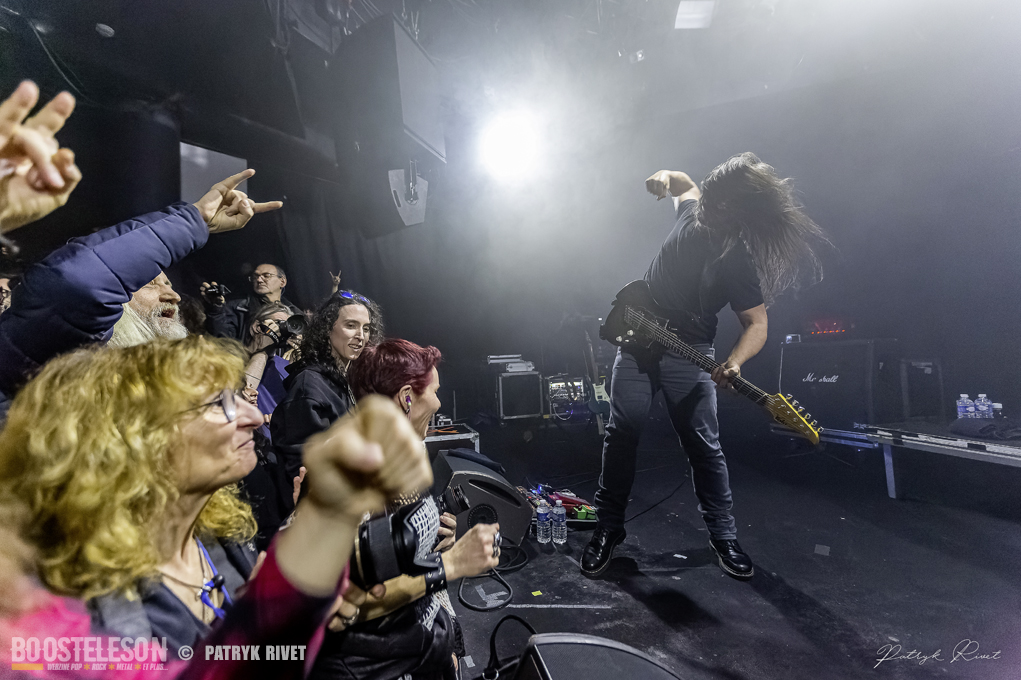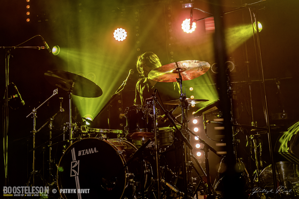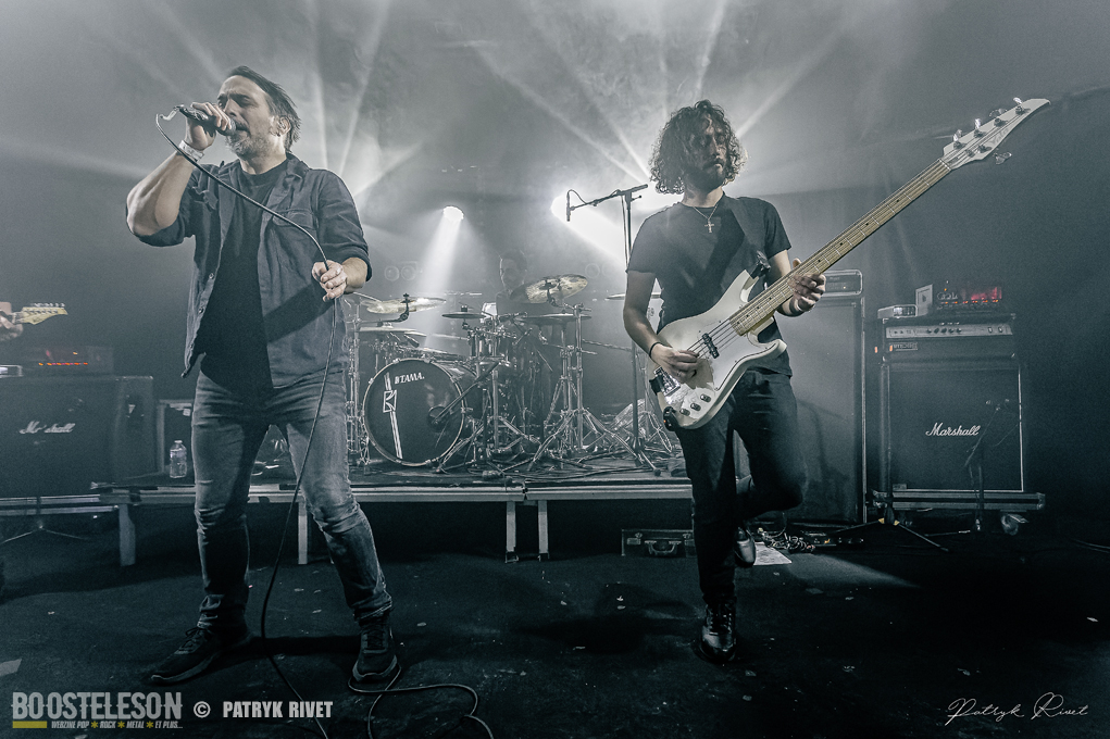 Place aux maitres de la soirée, j’ai nommé Klone. Le neuvième album du groupe de Métal Progressif Poitevin, intitulé « Meanwhile », est sorti la veille de leur passage au Trabendo. Mélange de Riffs lourds et planants, ça cogne fort à la batterie, je suis impressionné par la voix habitée chargée d’émotion de Yann Ligner qui enrobe à merveille la force et l’intensité dégagée par le reste du groupe parfaitement rodé à la scène. Morceaux contrastés alternants les Break survitaminés et les moments calmes. Comme pour leurs prédécesseurs pourtant, la voix était en retrait depuis le devant de la scène, ce souci était moins prononcé lorsque je me suis déplacé dans le fond de la salle pour finir ma série de clichés. Klone aura fait plaisir à ses fans en communion absolue avec le groupe. Une belle soirée éclectique pleine de surprises et de découvertes.