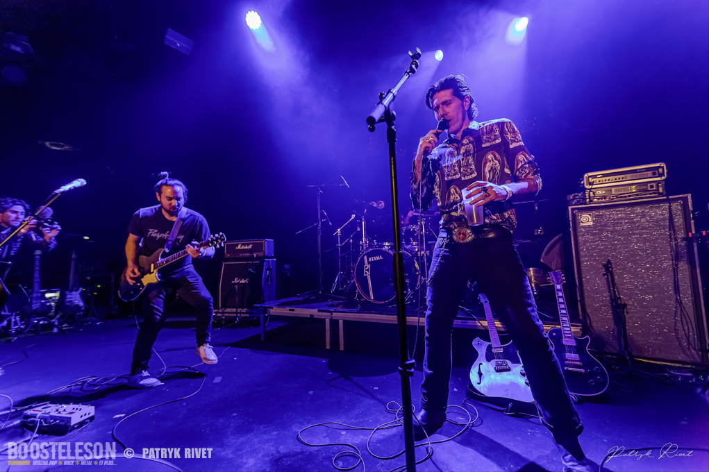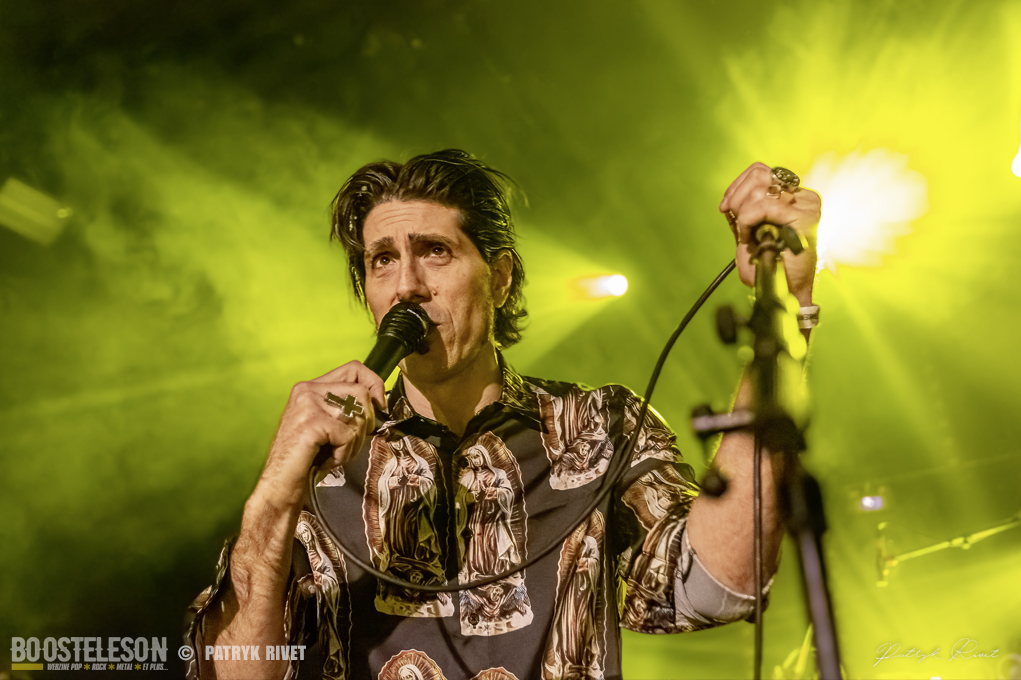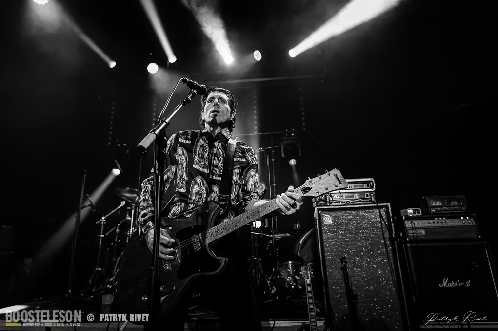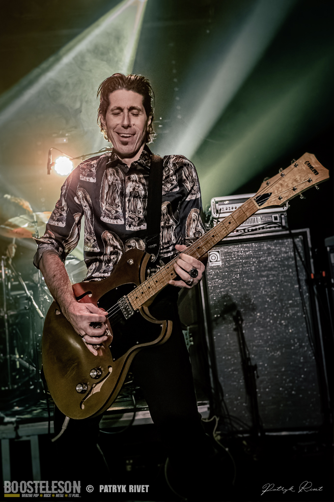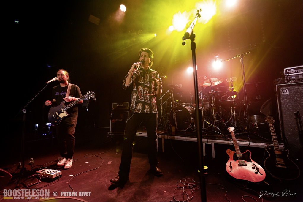 Beaucoup de monde au trabendo ce samedi soir, collé à la scène, impossible de bouger, coincé entre une jeune photographe et un caméraman. La salle est pleine à craquer dès l’arrivée de Lo, le chanteur guitariste de Patròn qui n’est autre que le lead vocal de Loading Data. Voix caverneuse de Crooner sur musique hypnotique, répétitive tout en restant mélodique. Je trouve que des titres comme « Very Bad Boy » ou « Room with a view » colleraient très bien au Générique de la série « True Detective ». Du Rock Stoner pur jus qui vous transporte de l’atmosphère chaude et moite de Nouvelle Orleans au désert aride d’Arizona. Ces Patròn là m’ont fait voyager et avec le sourire. On voit que les Garçons se sont fait plaisir à jouer ce soir. Une belle découverte, Il est fort probable que je me procure leur album éponyme.