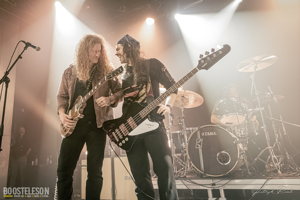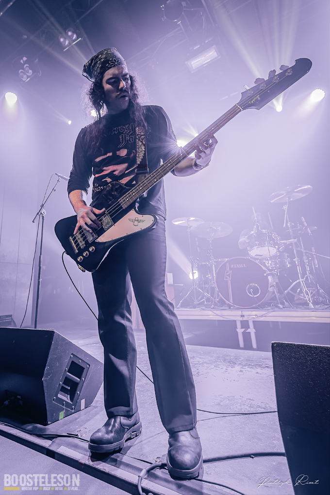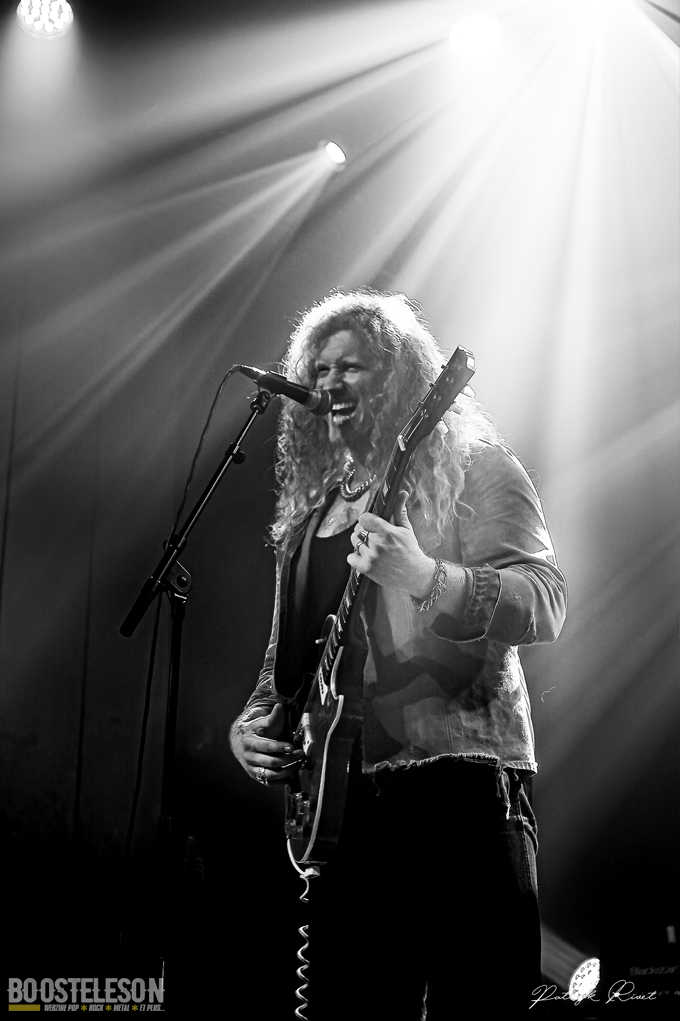 La salle est désormais remplie pour accueillir le trio composé de Denis à la batterie, Diego à la basse et bien sûr de Jared James Nichols à la guitare. Un des plus grands guitaristes de sa génération célèbre pour son jeu sans médiator et pour avoir assuré les premières parties de ZZ Top, Lynyrd Skynyrd, joué avec Joe Bonamassa, Peter Frampton, Slash, Steve Vai entre autres et ambassadeur de la marque Gibson. Le gaillard et Diego ont occupé la scène de belle manière et à voir leur sourire affiché tout au long de leur prestation et leur complicité avec le public, ont visiblement pris beaucoup de plaisir lors de cet unique concert en France. (Au passage, chapeau à Stéphane Labas, Julien Rousset et leurs équipes pour les avoir attirés à l’Empreinte). Ne connaissant pas l’artiste, je m’attendais à entendre des sons plus Blues-Rock que Rock à tendance Heavy mais j’ai pris un grand plaisir à voir cet artiste dont le talent et la virtuosité se sont dévoilés à moi sur les deux derniers titres du concert « War Pigs » et « Mississipi Queen ». Une grosse heure de concert, (10 titres et 2 rappels), un tantinet short comme Live mais superbe prestation. Jared James Nichols a promis de revenir en France plus souvent, ce sera en tous cas avec joie que je retournerai le voir.
