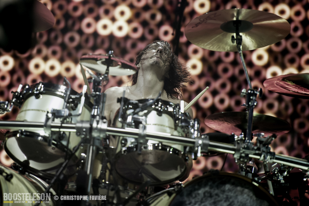 Jean-Michel Labadie (basse) est déchainé, arpentant la scène, Christian Andreu (guitare) n’est pas en reste et joue avec le public. Derrière les fûts, Mario Duplantier, considéré comme l’un des meilleurs batteurs du monde, se donne à 200%, nous gratifiant d’un solo de toute beauté. De son côté, Joe harangue le public, l’incitant à profiter du moment présent, et de ranger leurs téléphones.