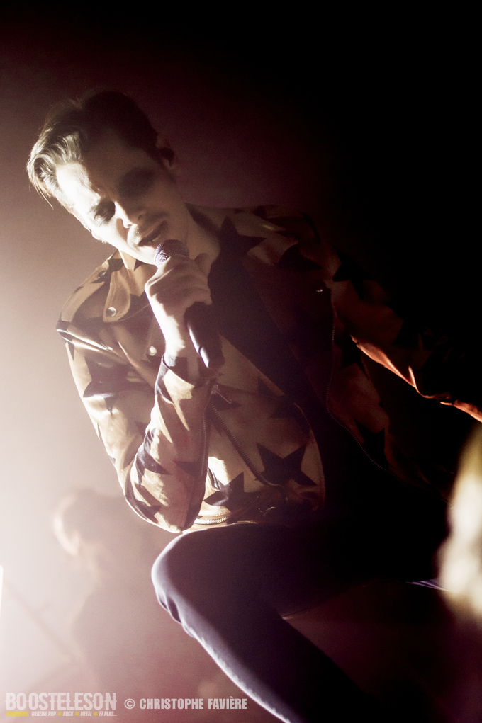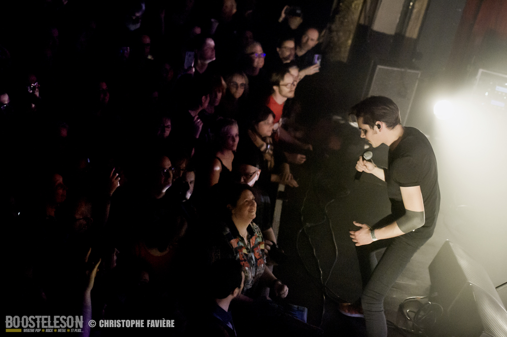Le public est survolté, ce qui a pour effet de décupler l’énergie du groupe. Le chanteur ira jusqu’à monter au balcon pour le faire se lever et chanter avec lui.