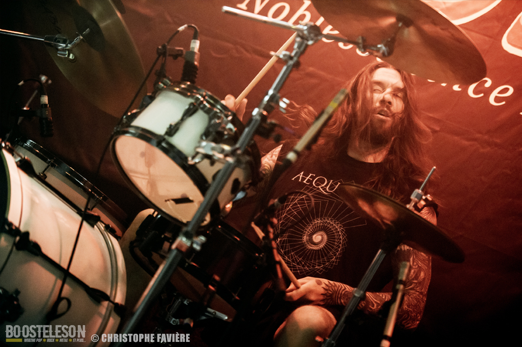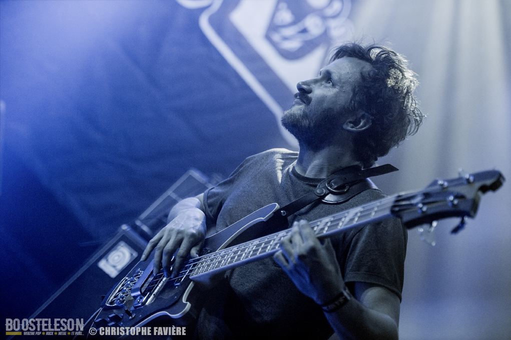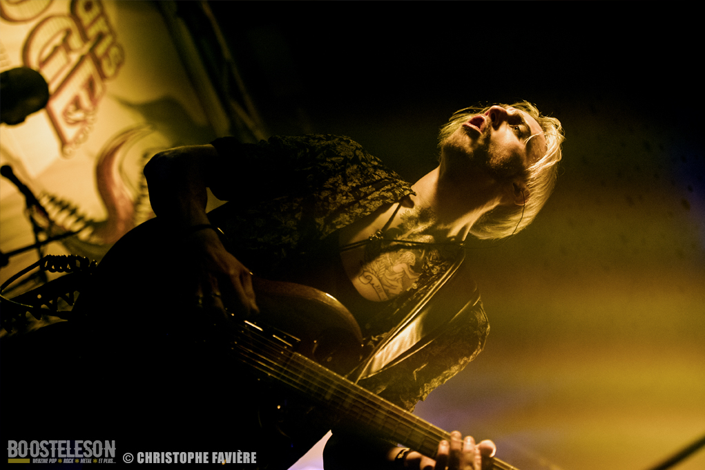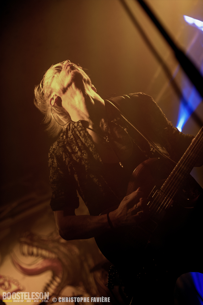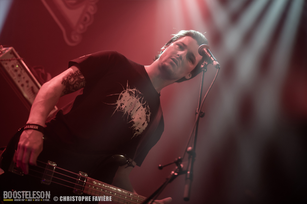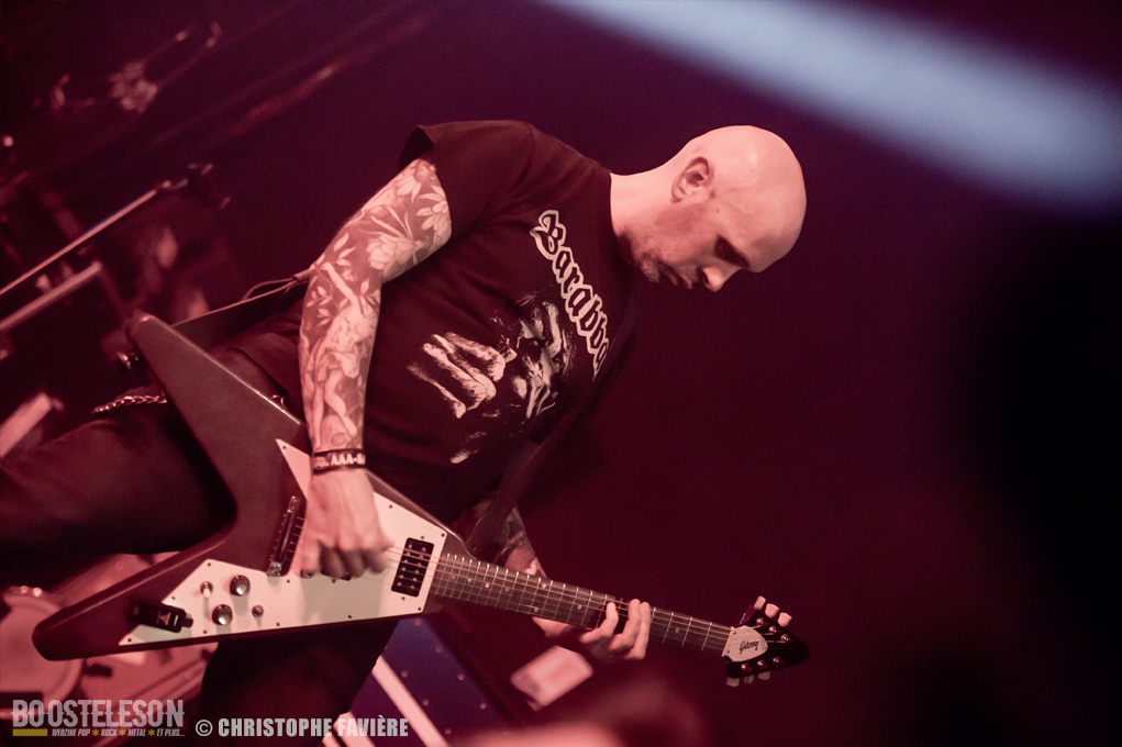 Retour dans la grande salle et changement de registre avec BARABBAS. Le groupe présente de nombreux supporters dans la salle. Leur Doom puissant et chanté en français électrise la salle de l’Empreinte. La basse monumentale retourne les tripes. Le groupe présente leur dernier album La Mort Appelle Tous Les Vivants. Une grosse claque malgré des lights rouges pas top pour les photos !