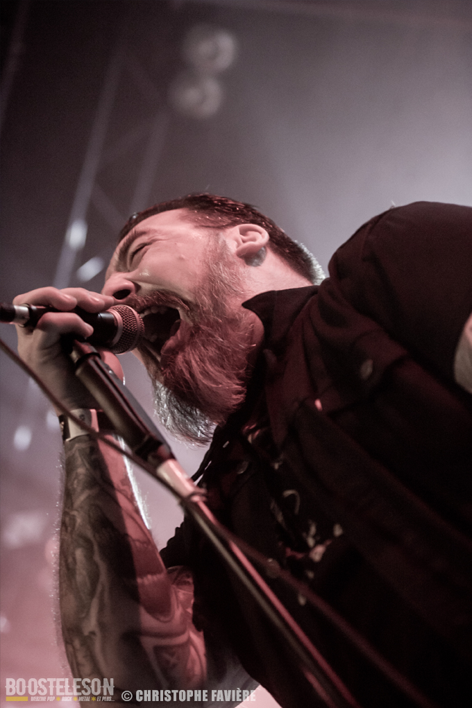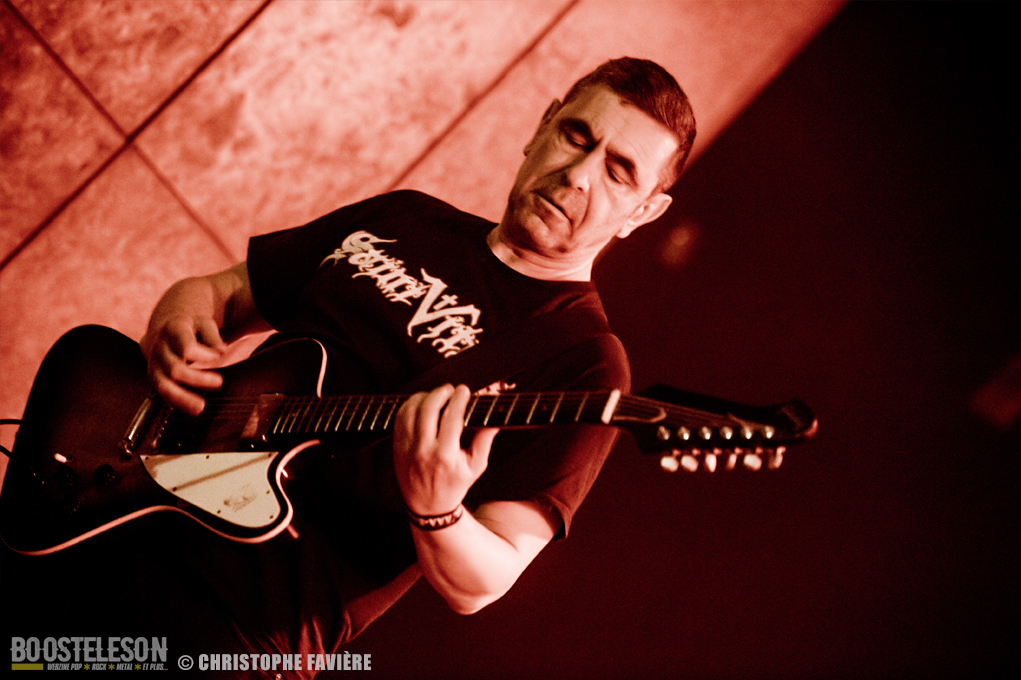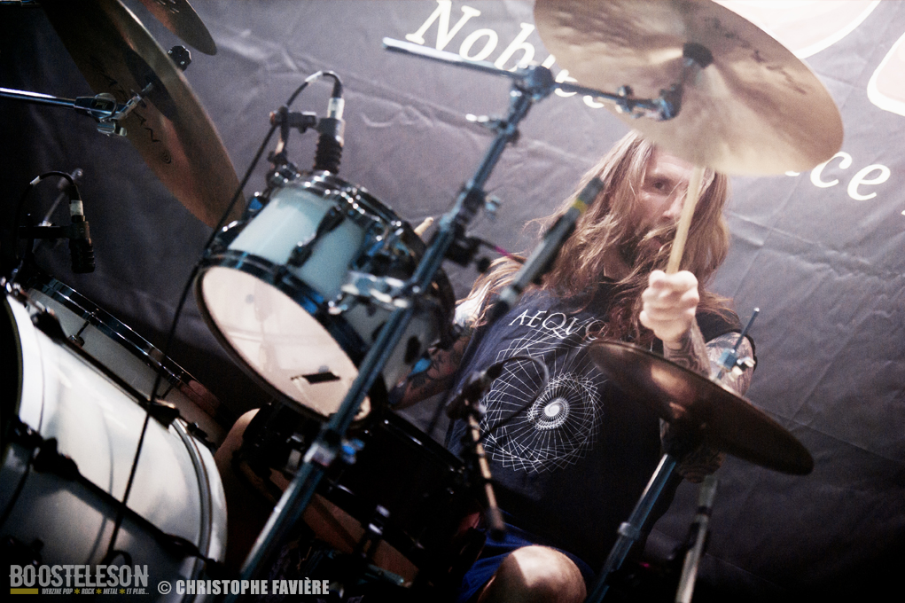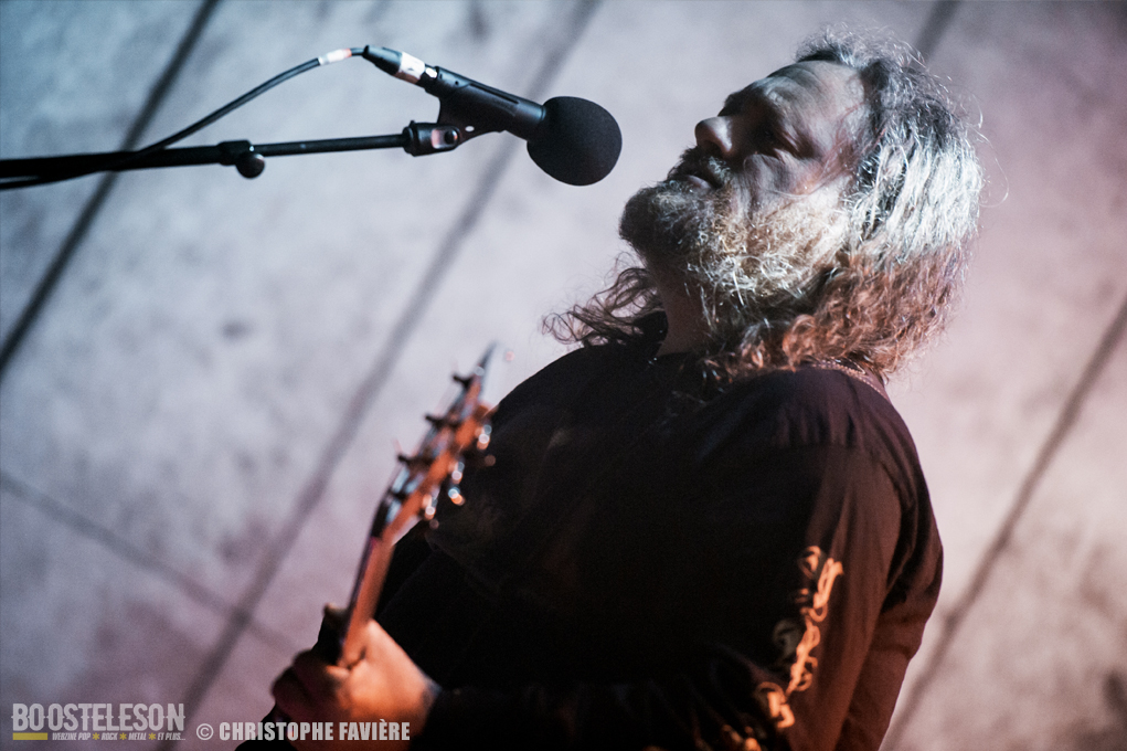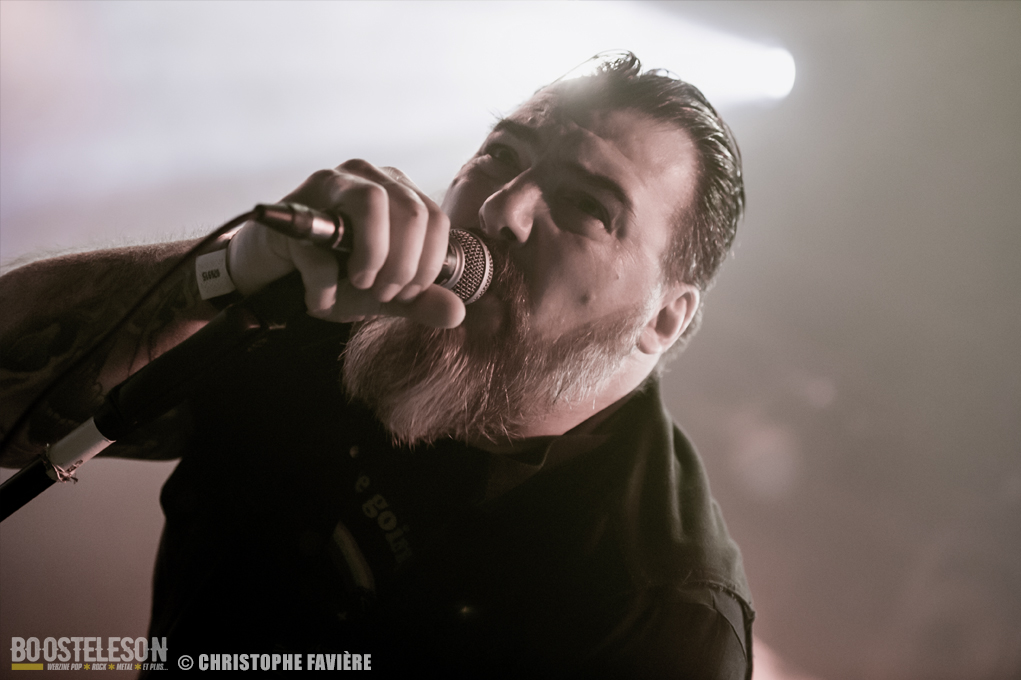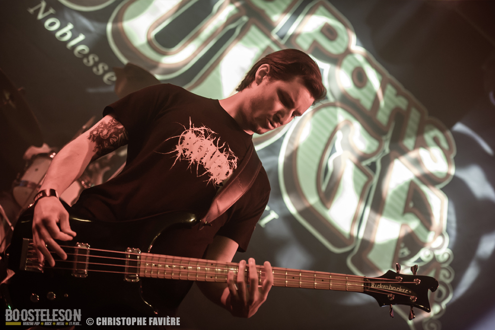 Retour dans la grande salle et changement de registre avec BARABBAS. Le groupe présente de nombreux supporters dans la salle. Leur Doom puissant et chanté en français électrise la salle de l’Empreinte. La basse monumentale retourne les tripes. Le groupe présente leur dernier album La Mort Appelle Tous Les Vivants. Une grosse claque malgré des lights rouges pas top pour les photos !