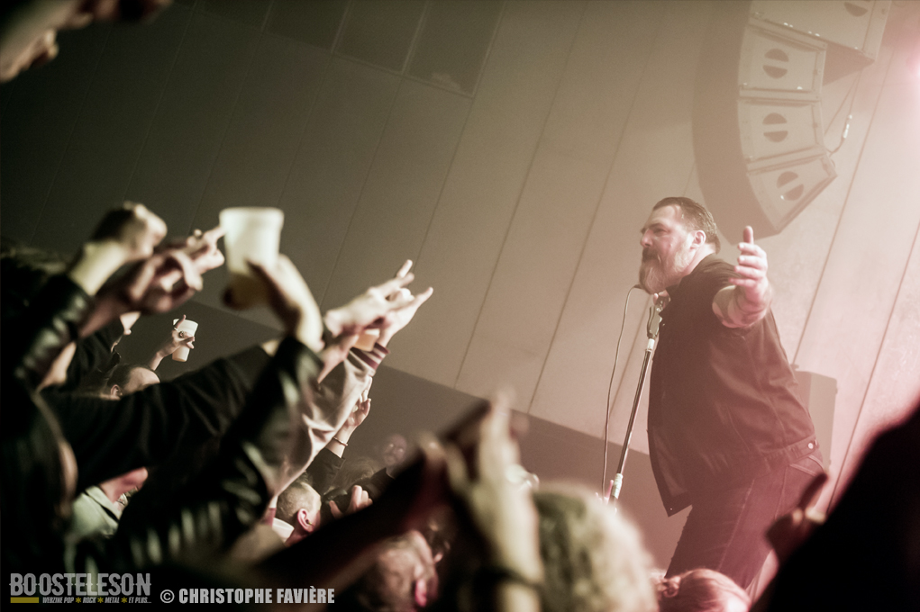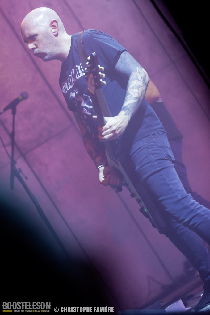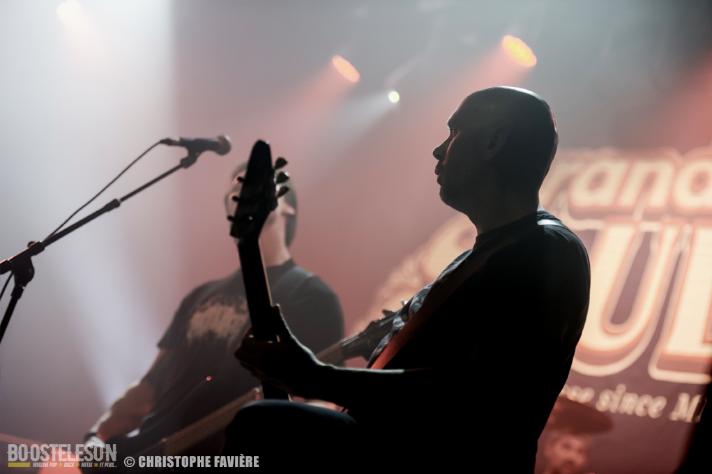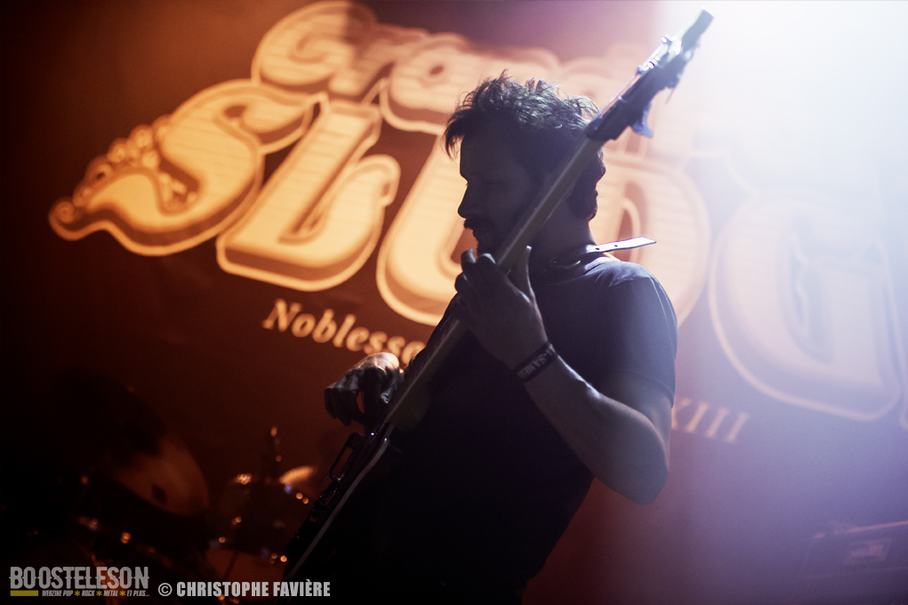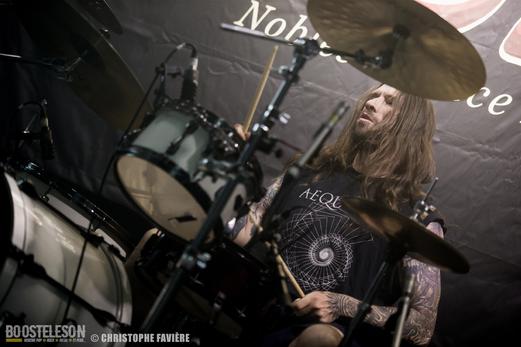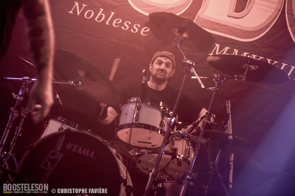 Retour dans la grande salle et changement de registre avec BARABBAS. Le groupe présente de nombreux supporters dans la salle. Leur Doom puissant et chanté en français électrise la salle de l’Empreinte. La basse monumentale retourne les tripes. Le groupe présente leur dernier album La Mort Appelle Tous Les Vivants. Une grosse claque malgré des lights rouges pas top pour les photos !