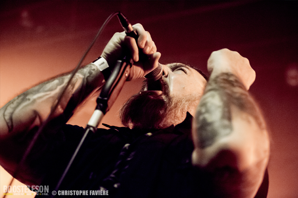 Ultime concert de cette première journée, et ce sont les Anglais de CONAN qui investissent la scène avec leur Doom surpuissant et lourd à souhait. Le public apprécie grandement la performance du trio. De loin le concert le plus violent de la soirée. Les fans plutôt calmes jusque-là (exception faite de la déferlante Barabbas) commencent à retourner l’Empreinte. Pogos, slams, et deux le deuxième morceau, un Wall Of Death terminera de mettre le feu aux poudres ! Encore une fois, le seul bémol sera les lumières rouges et les stroboscopes qui couplés à la fumée rendent la chose difficile à photographier.