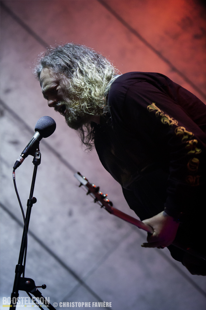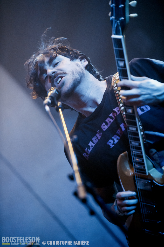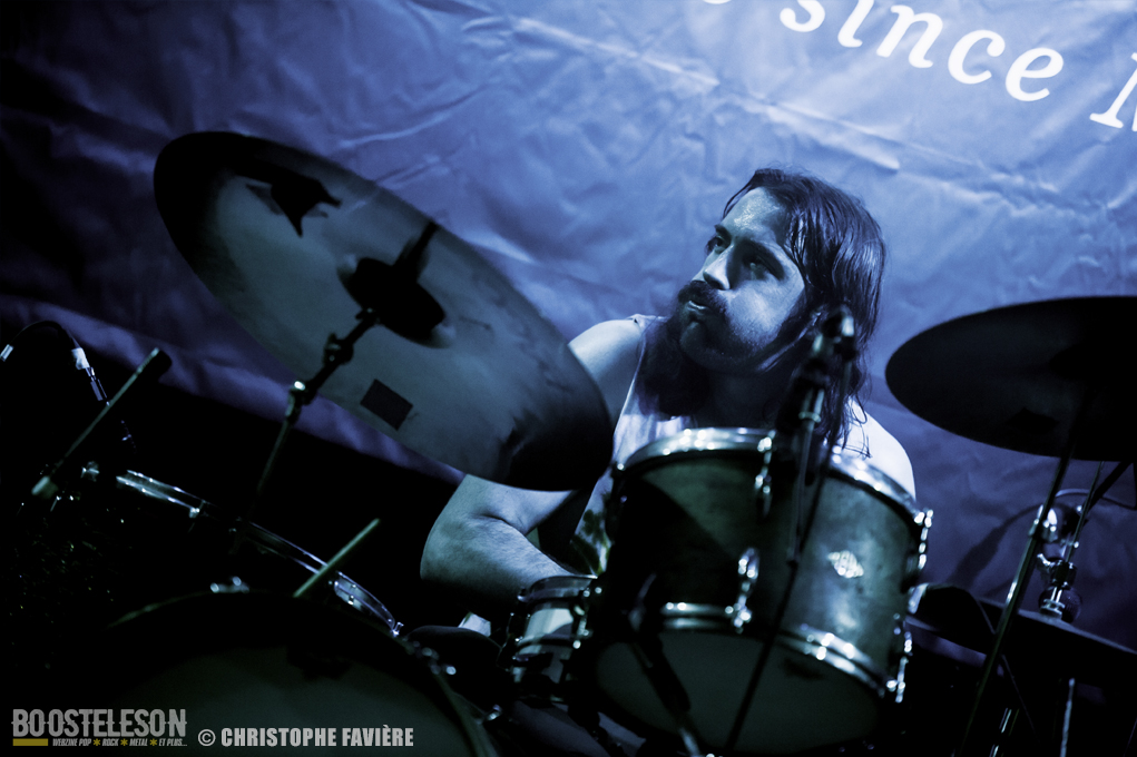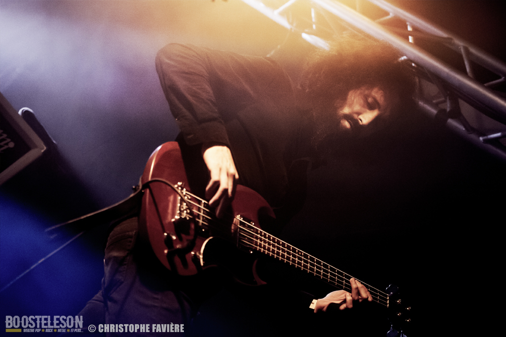 Et c’est aux parisiens de DECASIA d’ouvrir le bal de cette première journée. Le trio originaire de Nantes et expatrié à Paris envoi un Psychedelic Rock aux multiples influences, mais bien ancrées dans les années 70/80 comme le montre le t-shirt Black Sabbath du chanteur, et le public déjà nombreux réagi bien au groupe francilien. Le festival est la dernière date de leur tournée qui les a conduite en Belgique et en Allemagne, ce qui n’empêche nullement le groupe e déployer une énergie impressionnante. Premier concert et gros coup de cœur pour ce groupe attachant.