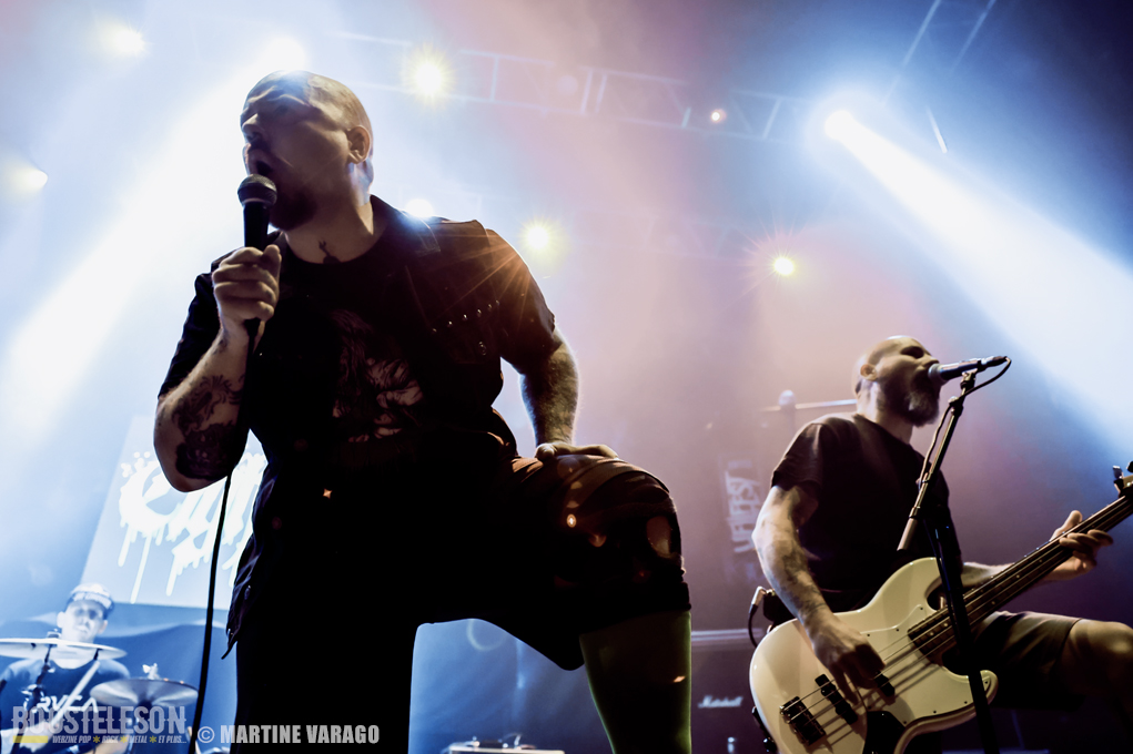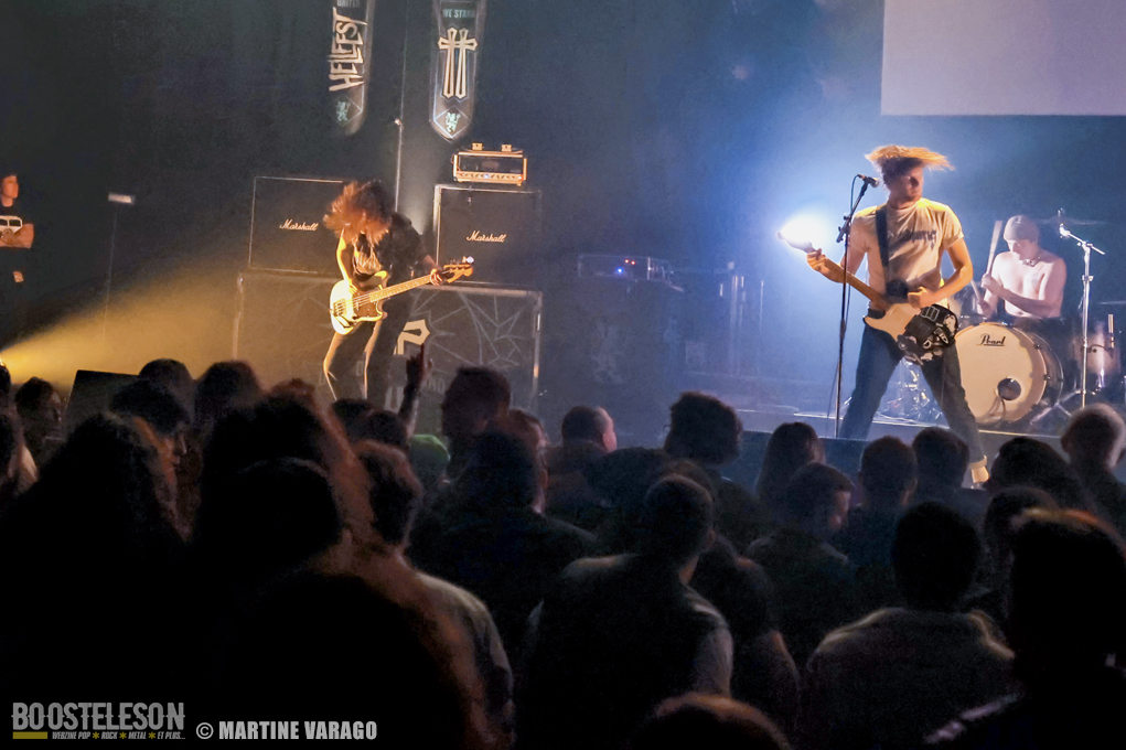 Au fur et à mesure, le public monte en ébullition notamment quand le groupe francilien joue quelques-uns de ses titres incontournables. Ceux qui vous retournent une fosse en moins de deux comme « Conseil », « Ville Prison » ou « Crève ». A force, on ne sait plus où regarder, entre le groupe qui se déchaîne et la fosse en effervescence. La prestation de P3C a gagné en notoriété après dix ans d’existence et le groupe a gagné en justesse et en assurance. On sent que c’est bien rodé, avec une setlist qu’il a su éprouver régulièrement. Les morceaux s’enchaînent en passant du hardcore au grunge metal, avec le vrombissement de la basse de Lola et les énergies délivrées par Simon et Olivier. Peu d’échanges, cependant, avec le public à part quelques remerciements. Le set se termine par « Crève » et bien vite le quatuor disparaît. Les lumières se rallument et signent la fin de cette mémorable soirée où les groupes et le public ont pu se déchaîner librement.