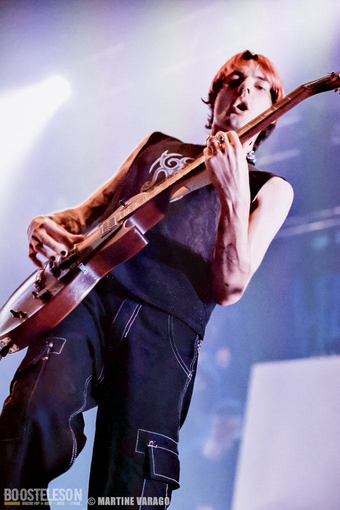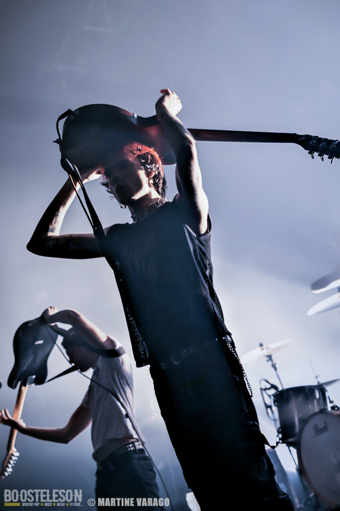 Quand vient l’heure de POGO CAR CRASH CONTROL, la salle est remplie. De nouveau le décompte : « 59-58… 3-2-1-0 ! » Un peu de tempo avant l’arrivée d’Olivier Pernot, Simon Péchinot, tous deux les ongles peints en noir et celle de Louis Péchinot et de Lola Fichet. Comme lors de leurs précédents concerts, le quatuor ouvre son set avec le très lourd « Aluminium », single de leur 3e album « Fréquence Violence ».
