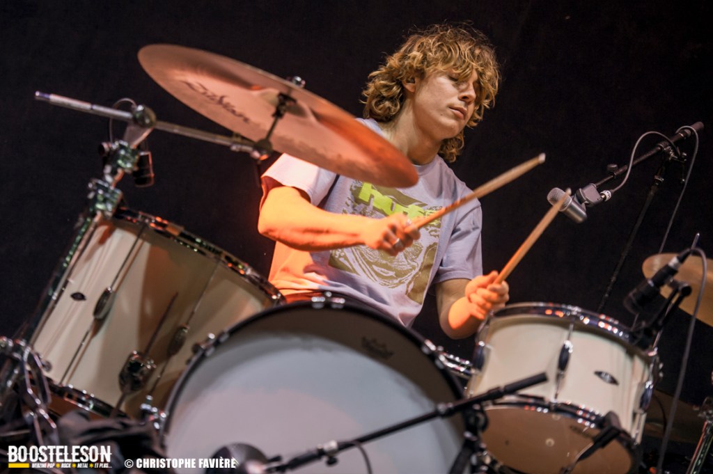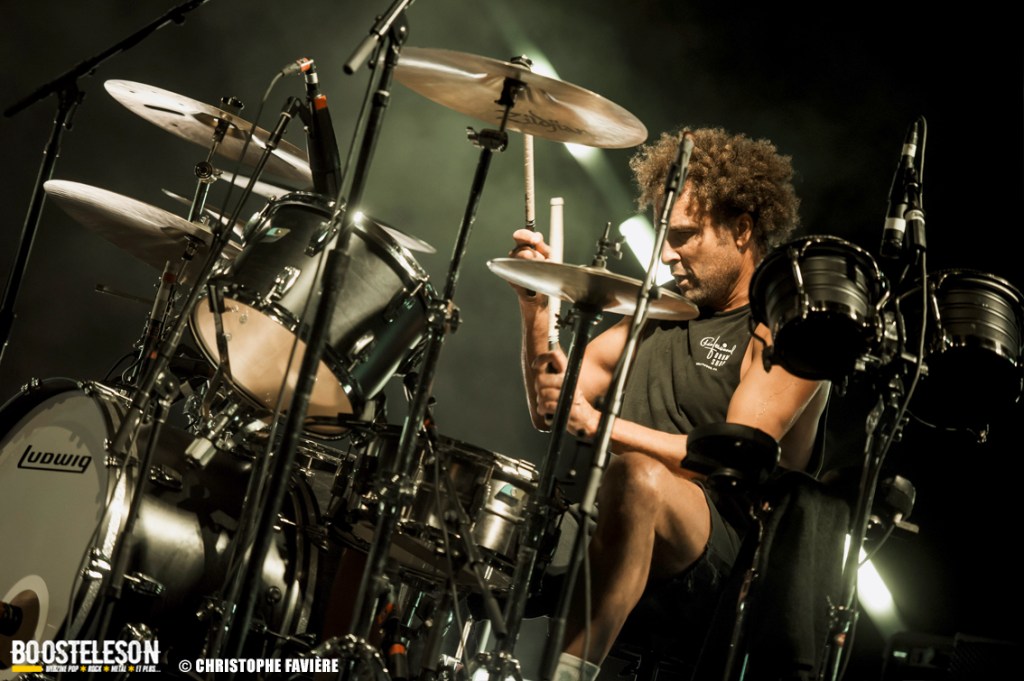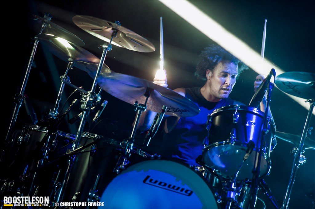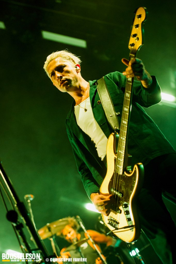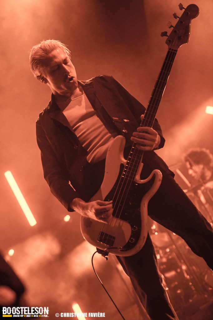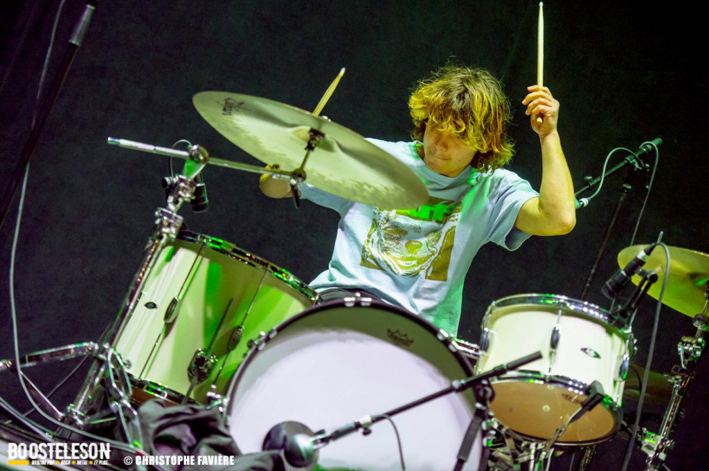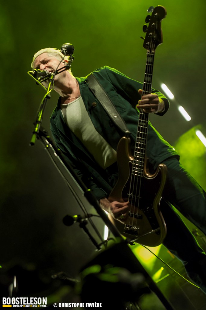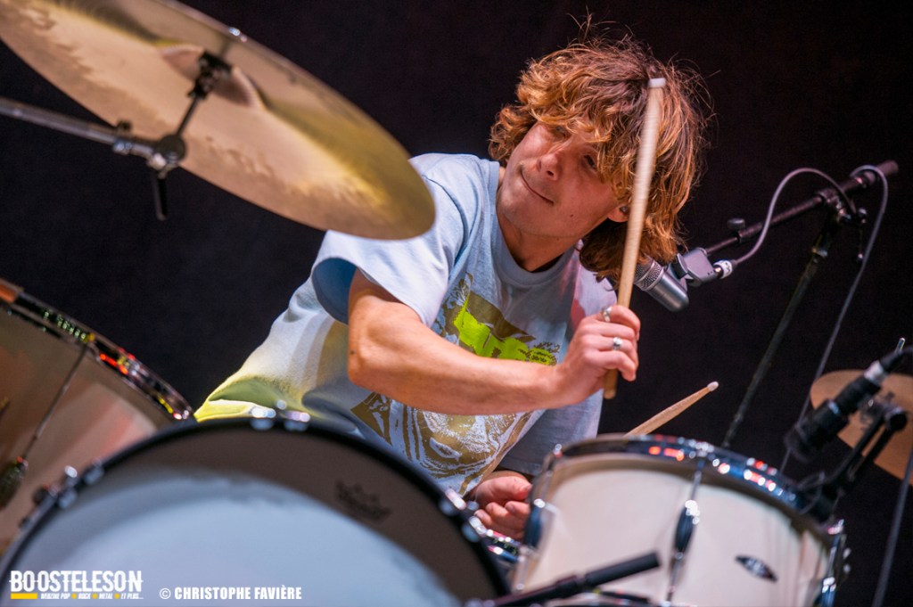 La section rythmique composée de Michael Shuman à la basse, très classe dans son costume vert, et Jon Theodore (ex-The Mars Volta) à la batterie se montre assez complice.