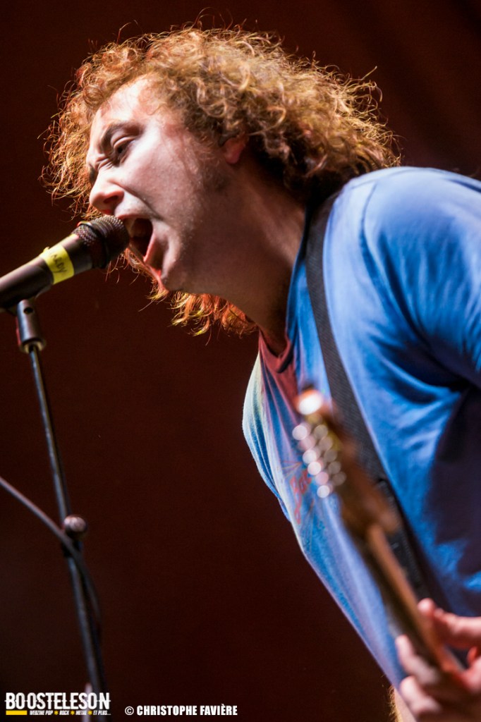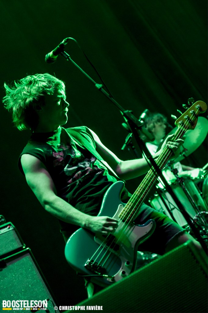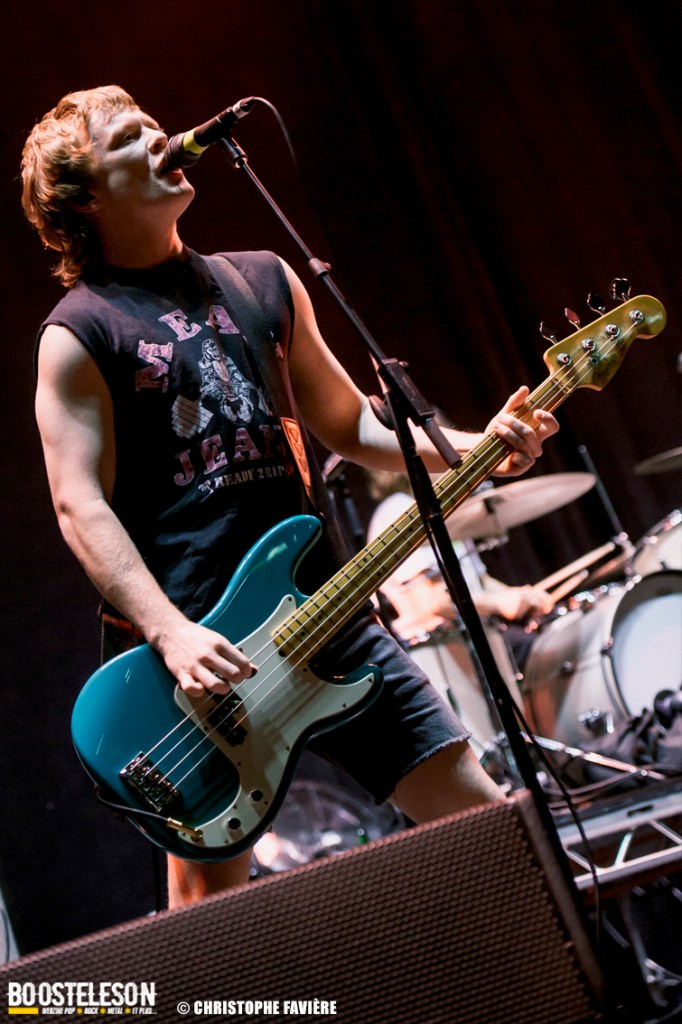 En revanche, nous assisterons à trois chansons de The Chats. Les jeunes Australiens déploient une énergie punk sortie tout droit des années 70. Et leur musique est à l’avenant ! Un brin de Ramones, un soupçon de Sex Pistols, des titres courts mais efficaces et tous plus énervés les uns que les autres. A tel point que Eamon Sandwith (basse/chant) finira par marcher sur son jack et débrancher sa basse ! Qu’à cela ne tienne, Josh Hardy (guitare) et Matt Boggis (batterie) continuent le morceau sourire en coin en attendant qu’un roadie ne vienne rebrancher l’instrument. Une bonne prestation pour cette jeune formation à suivre.