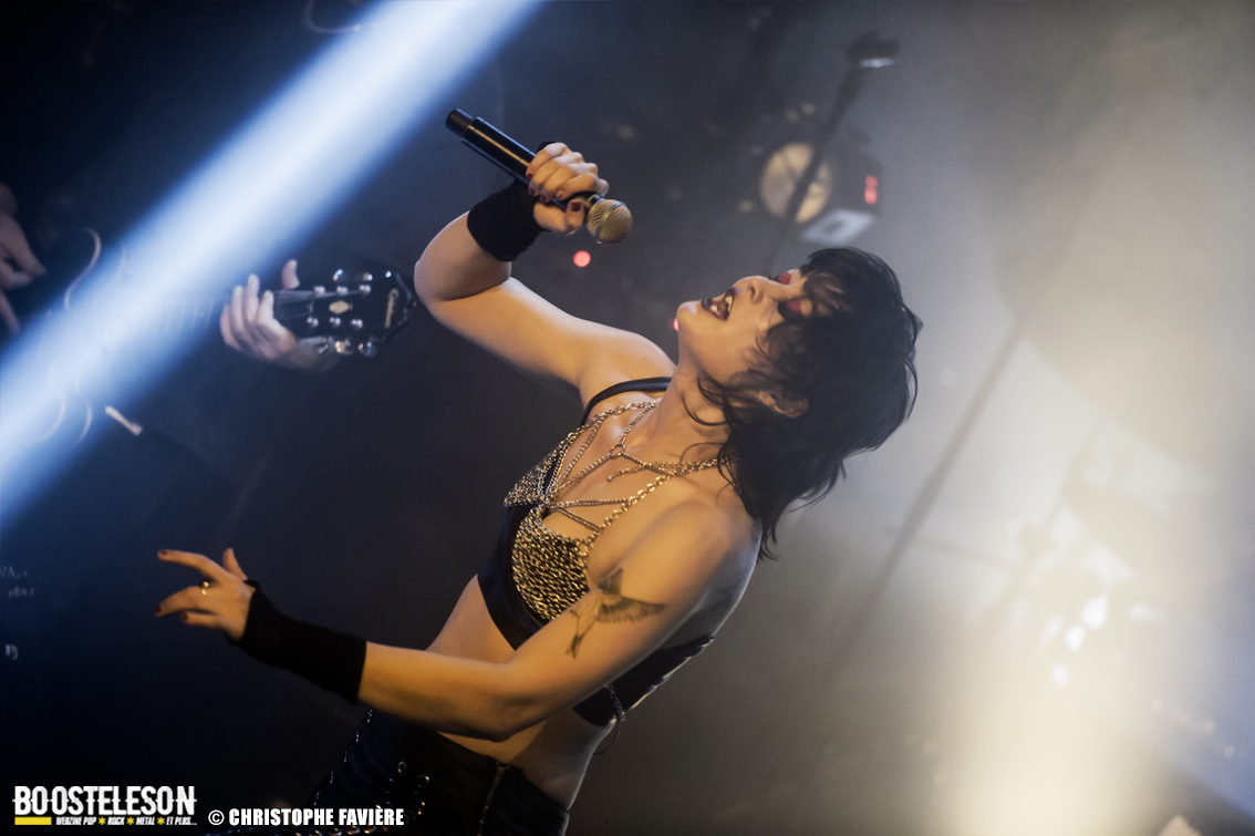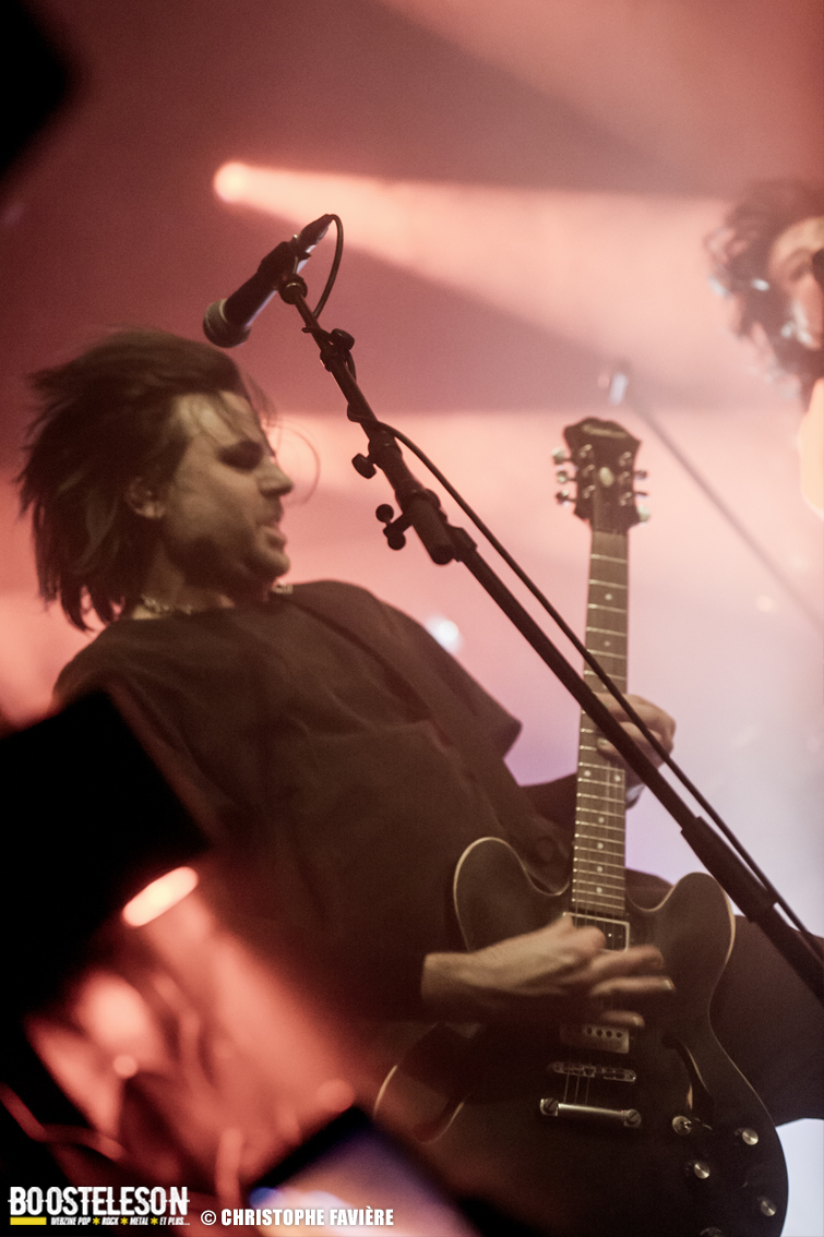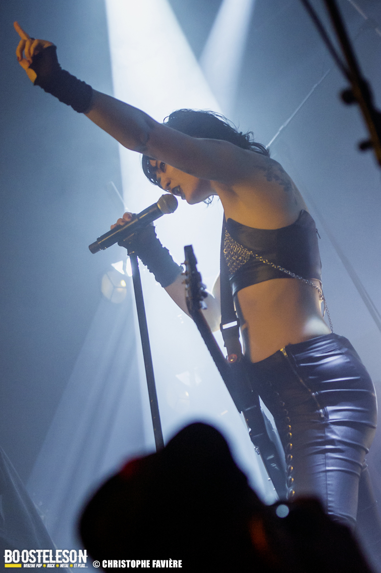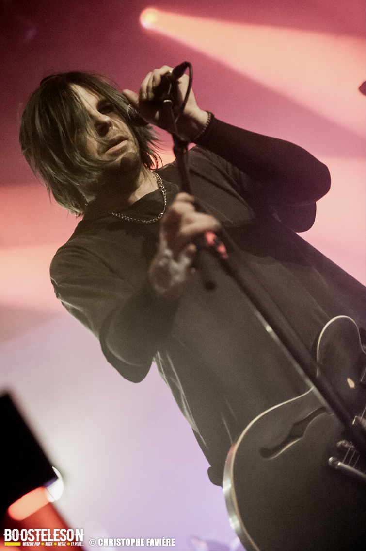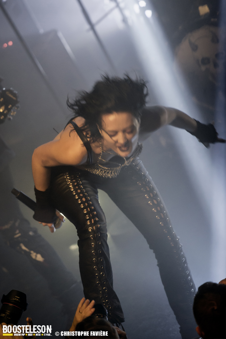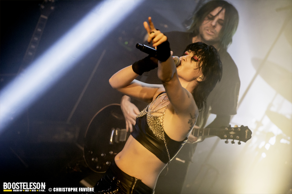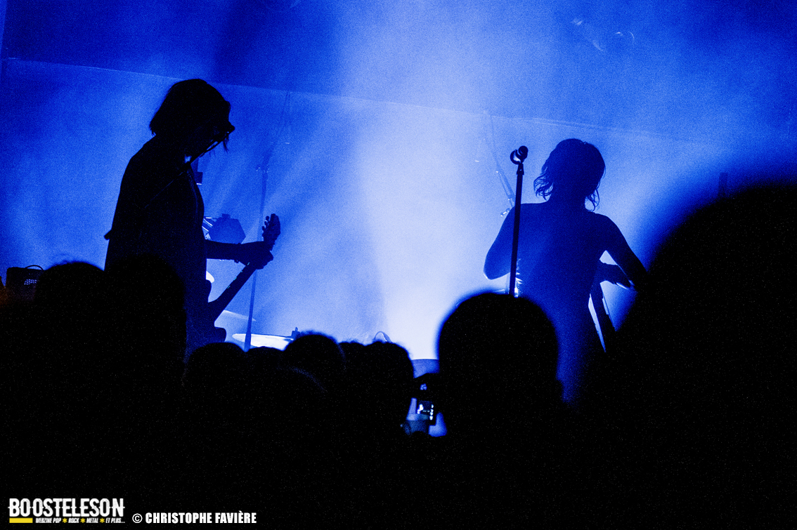 Originaire de l’est londonien, Saint Agnes était venu passer une journée promo au Dr Feelgood l’automne dernier. Groupe aux influences musicales plutôt variées, allant de Nine Inch Nails à Ho99o9, The White Stripes, Grinderman, White Zombie en passant par PJ Harvey, la chanteuse Kitty A. Austen vient sur scène exorciser ses démons. Accompagnée de Jon James Tufnell (chant, guitare), d’Andy Head (batterie) et de Maxine Cahill bassiste pour la tournée, le quatuor fait preuve d’une belle énergie. Que ce soit la jolie bassiste, en short, sautillant et agitant son médiator à vitesse grand V, le guitariste assénant des riffs violents à la Nine Inch Nail ou Rage Against The Machine, ou encore le batteur produisant une frappe monumentale à la manière d’un Dave Grohl, on ressent à chaque instants toute la vitalité du combo. Sur « Mean Nothing To You », Kitty se mettre définitivement le public dans la poche en organisant sur le break un Wall Of Death que l’assistance exécutera avec plaisir. Avec une setlist de quelques titres tirés de leur dernier album « Bloodsuckers », Kitty, à l’attitude punk, anime à merveille la scène des Etoiles. Dans chaque morceau, les paroles ont un lien avec un événement comme celui du décès de la mère de Kitty dans l’émotionnel « This Is not The End ». Sa plus grande énergie vient d’ailleurs de son fort intérieur, de ses émotions. Autrement dit, jouer devant le public lui procure beaucoup d’énergie ! A tel point qu’elle finira par plonger et surfer dans la fosse parisienne qui l’accueille bien volontiers. Avec un show de seulement cinquante minutes, Saint Agnes parvient à conquérir l’audience des Etoiles : les pogoteurs s’en donnent à cœur joie.