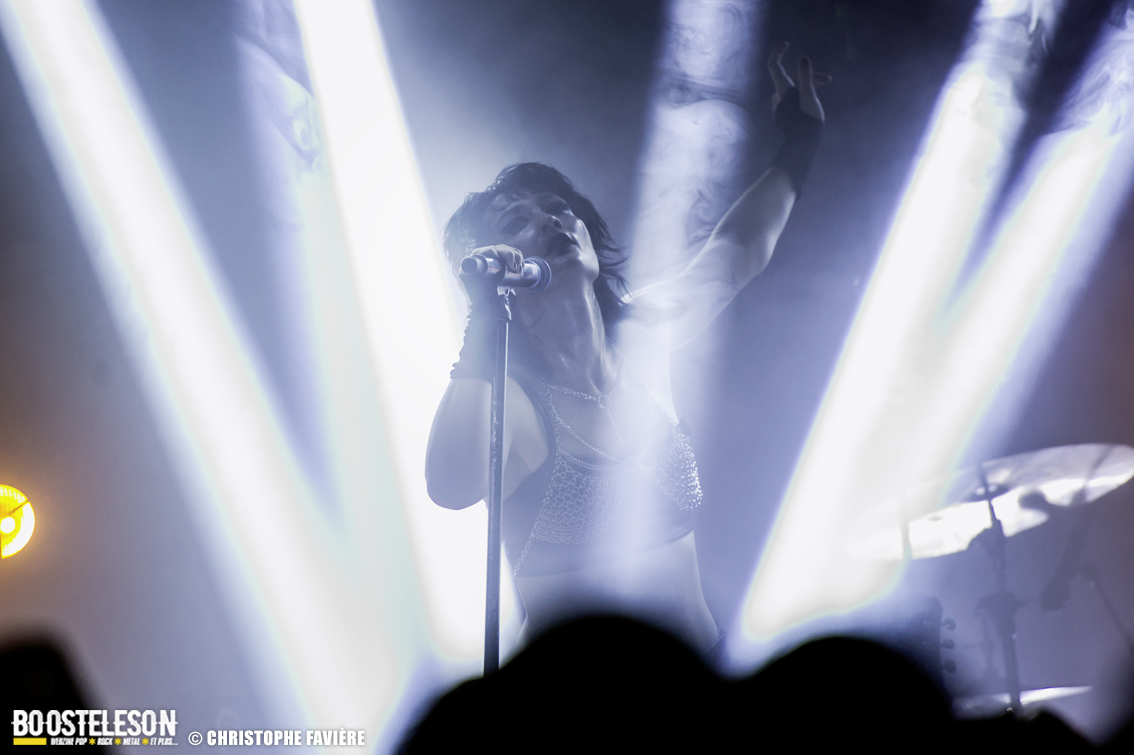 Originaire de l’est londonien, Saint Agnes était venu passer une journée promo au Dr Feelgood l’automne dernier. Groupe aux influences musicales plutôt variées, allant de Nine Inch Nails à Ho99o9, The White Stripes, Grinderman, White Zombie en passant par PJ Harvey, la chanteuse Kitty A. Austen vient sur scène exorciser ses démons. Accompagnée de Jon James Tufnell (chant, guitare), d’Andy Head (batterie) et de Maxine Cahill bassiste pour la tournée, le quatuor fait preuve d’une belle énergie. Que ce soit la jolie bassiste, en short, sautillant et agitant son médiator à vitesse grand V, le guitariste assénant des riffs violents à la Nine Inch Nail ou Rage Against The Machine, ou encore le batteur produisant une frappe monumentale à la manière d’un Dave Grohl, on ressent à chaque instants toute la vitalité du combo. Sur « Mean Nothing To You », Kitty se mettre définitivement le public dans la poche en organisant sur le break un Wall Of Death que l’assistance exécutera avec plaisir. Avec une setlist de quelques titres tirés de leur dernier album « Bloodsuckers », Kitty, à l’attitude punk, anime à merveille la scène des Etoiles. Dans chaque morceau, les paroles ont un lien avec un événement comme celui du décès de la mère de Kitty dans l’émotionnel « This Is not The End ». Sa plus grande énergie vient d’ailleurs de son fort intérieur, de ses émotions. Autrement dit, jouer devant le public lui procure beaucoup d’énergie ! A tel point qu’elle finira par plonger et surfer dans la fosse parisienne qui l’accueille bien volontiers. Avec un show de seulement cinquante minutes, Saint Agnes parvient à conquérir l’audience des Etoiles : les pogoteurs s’en donnent à cœur joie.