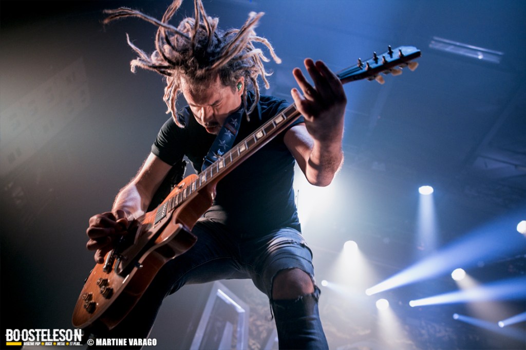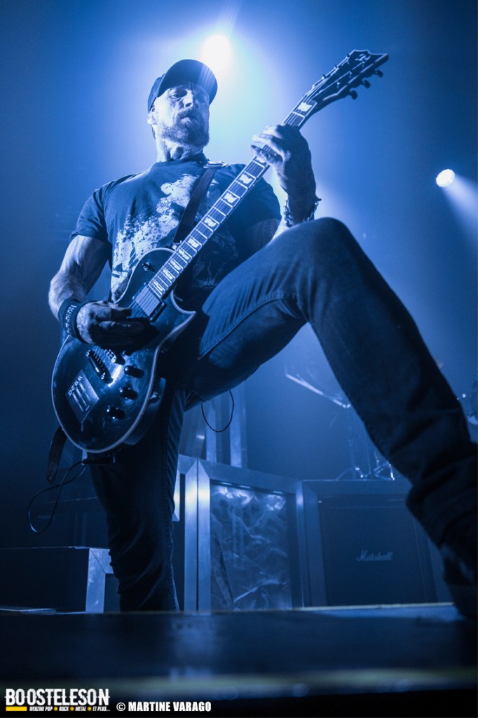 Pour le reste, on retrouve du grand Mass Hysteria. Fred et Yann envoient la sauce avec leur riffs accrocheurs et puissants. Atom, à la basse, virevolte tandis que le batteur martèle à coup de blast les caisses de sa batterie. Mouss bavarde entre chaque morceau et à chaque chanson, les fans attendent son énergie et sa conviction. On comprend qu’un tel concert soit dur physiquement tant les musiciens donnent toute leurs émotions et jouent le jeu à fond ! Le concert passe à une vitesse folle et c’est l’heure des rappels qui nous rapproche de la fin. Elle arrive avec des titres qui nous font aller chercher le reste d’énergie pour sauter et pogoter gaiement. Autrement dit, un concert de furieux et de furieuses, un concert de Mass Hysteria !