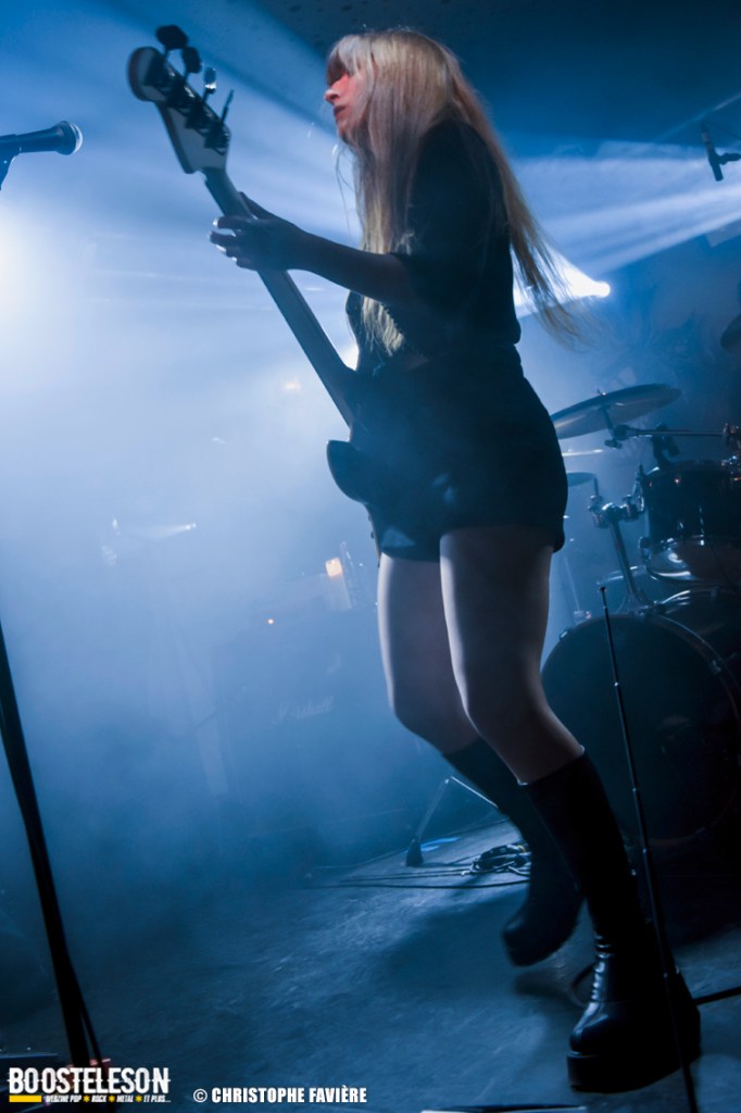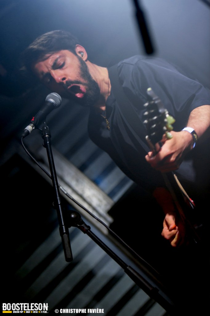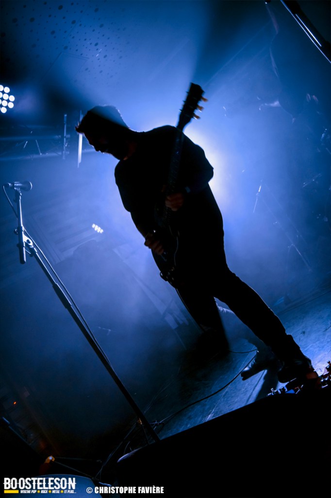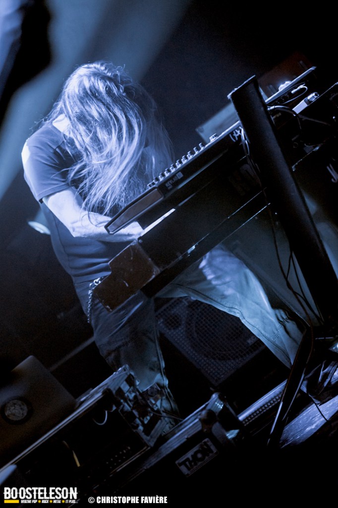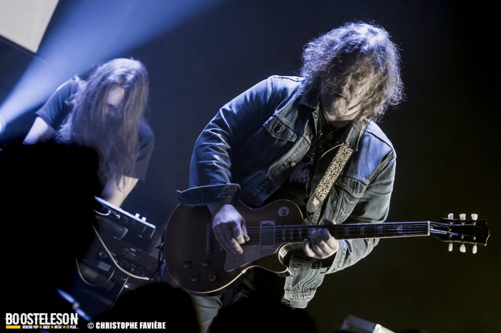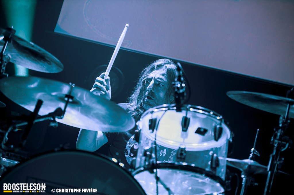 Là encore, ce samedi avait bien commencé avec ONE SHOT. Formé pratiquement uniquement d’anciens membres du groupe Magma, le groupe nous fait voyager dans son univers entre Jazz expérimental, Psychedelic et Progressive Rock. De quoi remettre gentiment la machine en route en ce samedi. On se précipite alors au Club pour retrouver Witchorious qui nous avait tant impressionné lors de leur passage en première partie de Knuckle Head quinze jours plus tôt à la Maroquinerie (Live report ici ->). Et le trio n’a fait que confirmé tout le bien que l’on avait pensé d’eux. Gros riffs à la Black Sabbath, section rythmique impressionnant, univers sombre, nous ne serions pas étonnés de voir ce groupe gravir rapidement les échelons tant leur prestation et leur cohésion sont impressionnantes. Retour dans la grande salle pour Cloakroom. Difficile de définir la musique du groupe originaire de l’Indiana. Mélange de Space Rock, de Stoner, de Doom ou encore de Shoegaze, le combo nous invite dans un univers tantôt lourd, tantôt atmosphérique, étonnant, mais appréciable. A ce moment de la soirée, les choses commencent à se gâter. Suite probablement aux pluies de la semaine, une remontée d’égouts commence à exercer une certaine influence sur l’air ambiant et une odeur nauséabonde (on vous laisse imaginer laquelle) commence à envahir la grande salle. Bonne excuse pour filer une dernière fois au Club pour retrouver Maudits (désolé pour les photos, un problème de carte mémoire). Le trio alterne entre Doom et Ambiant, créant une ambiance oppressante et répétitive grâce à une maitrise impressionnante des loops par le guitariste (pédale d’effet permettant d’enregistrer en direct un riff ou une mélodie et de la répéter à l’infini). Du fait de son côté instrumental et la richesse de ses compos, le groupe est difficilement identifiable à un genre. Là encore, une belle découverte. 22.30, l’heure de retourner dans la grande salle pour le dernier concert du week-end, et malgré la réactivité de l’équipe de l’Empreinte et la venue des services adéquats, les choses ne se sont pas arrangées. Les regards censés évacuer l’eau lors du nettoyage refoulent en plein milieu de la salle tout ce qui est supposé en sortir. Qu’à cela ne tienne, le public fait contre fortune bon cœur et reste en masse pour assister au concert de monkey3. Et les Suisses les en remercient en nous offrant un show de toute beauté, tant sonore que visuel. Avec leur musique à la croisée du Stoner et du Psychedelic Rock, les Helvètes nous gratifient d’un voyage hors du temps et de l’espace, renforcé par les images diffusées sur l’écran géant en fond de scène. Une bien belle manière de conclure cette soirée et cette deuxième édition qui aura vu un public venir en masse malgré le RER en travaux, et malgré les problèmes de tuyauterie. Espérons que cette fidélité sera récompensée par une troisième édition en 2025. Cette musique le mérite amplement. Noblesse oblige !