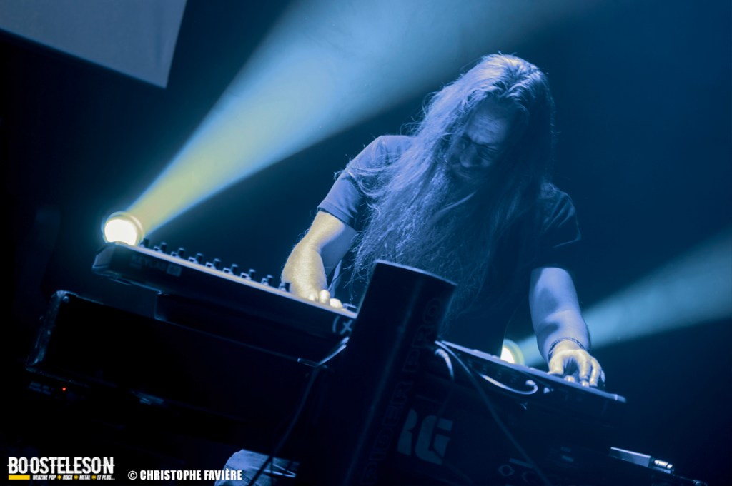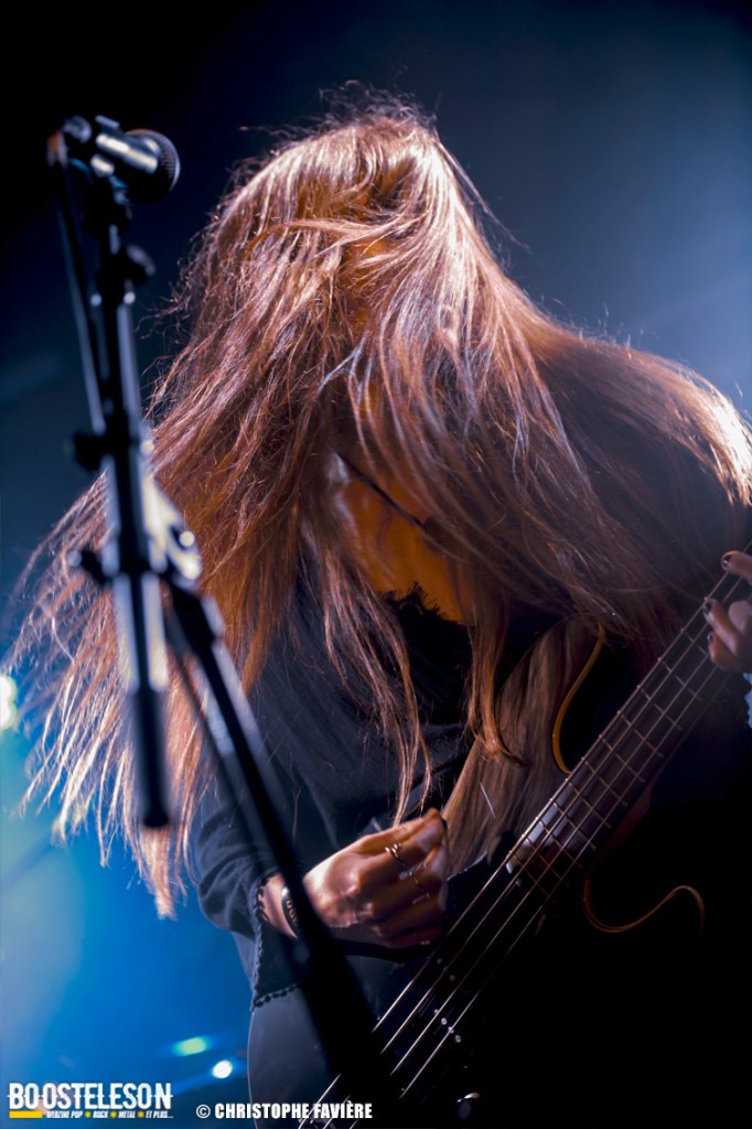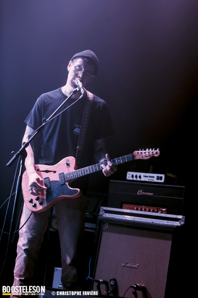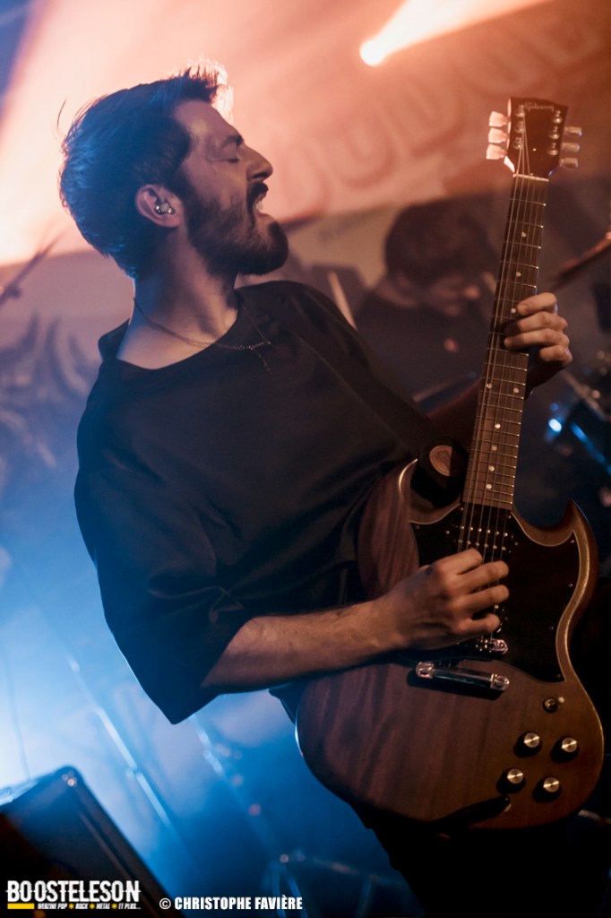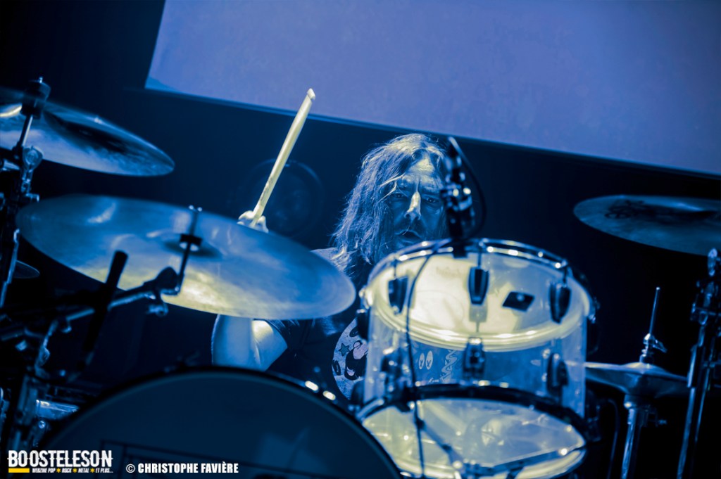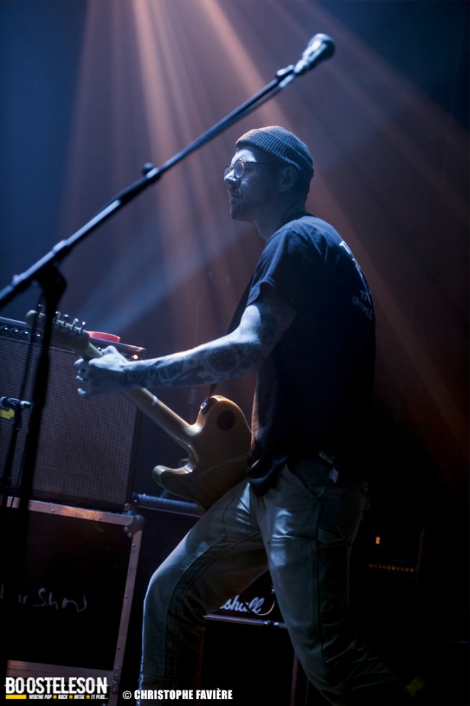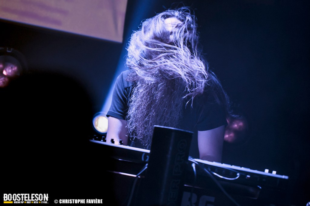 Là encore, ce samedi avait bien commencé avec ONE SHOT. Formé pratiquement uniquement d’anciens membres du groupe Magma, le groupe nous fait voyager dans son univers entre Jazz expérimental, Psychedelic et Progressive Rock. De quoi remettre gentiment la machine en route en ce samedi. On se précipite alors au Club pour retrouver Witchorious qui nous avait tant impressionné lors de leur passage en première partie de Knuckle Head quinze jours plus tôt à la Maroquinerie (Live report ici ->). Et le trio n’a fait que confirmé tout le bien que l’on avait pensé d’eux. Gros riffs à la Black Sabbath, section rythmique impressionnant, univers sombre, nous ne serions pas étonnés de voir ce groupe gravir rapidement les échelons tant leur prestation et leur cohésion sont impressionnantes. Retour dans la grande salle pour Cloakroom. Difficile de définir la musique du groupe originaire de l’Indiana. Mélange de Space Rock, de Stoner, de Doom ou encore de Shoegaze, le combo nous invite dans un univers tantôt lourd, tantôt atmosphérique, étonnant, mais appréciable. A ce moment de la soirée, les choses commencent à se gâter. Suite probablement aux pluies de la semaine, une remontée d’égouts commence à exercer une certaine influence sur l’air ambiant et une odeur nauséabonde (on vous laisse imaginer laquelle) commence à envahir la grande salle. Bonne excuse pour filer une dernière fois au Club pour retrouver Maudits (désolé pour les photos, un problème de carte mémoire). Le trio alterne entre Doom et Ambiant, créant une ambiance oppressante et répétitive grâce à une maitrise impressionnante des loops par le guitariste (pédale d’effet permettant d’enregistrer en direct un riff ou une mélodie et de la répéter à l’infini). Du fait de son côté instrumental et la richesse de ses compos, le groupe est difficilement identifiable à un genre. Là encore, une belle découverte. 22.30, l’heure de retourner dans la grande salle pour le dernier concert du week-end, et malgré la réactivité de l’équipe de l’Empreinte et la venue des services adéquats, les choses ne se sont pas arrangées. Les regards censés évacuer l’eau lors du nettoyage refoulent en plein milieu de la salle tout ce qui est supposé en sortir. Qu’à cela ne tienne, le public fait contre fortune bon cœur et reste en masse pour assister au concert de monkey3. Et les Suisses les en remercient en nous offrant un show de toute beauté, tant sonore que visuel. Avec leur musique à la croisée du Stoner et du Psychedelic Rock, les Helvètes nous gratifient d’un voyage hors du temps et de l’espace, renforcé par les images diffusées sur l’écran géant en fond de scène. Une bien belle manière de conclure cette soirée et cette deuxième édition qui aura vu un public venir en masse malgré le RER en travaux, et malgré les problèmes de tuyauterie. Espérons que cette fidélité sera récompensée par une troisième édition en 2025. Cette musique le mérite amplement. Noblesse oblige !