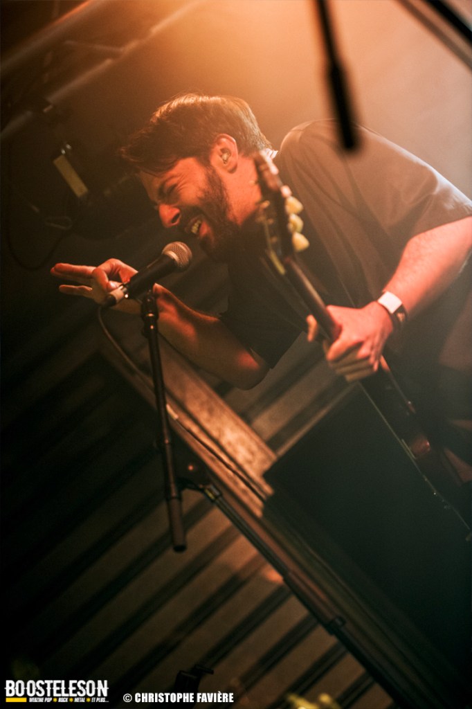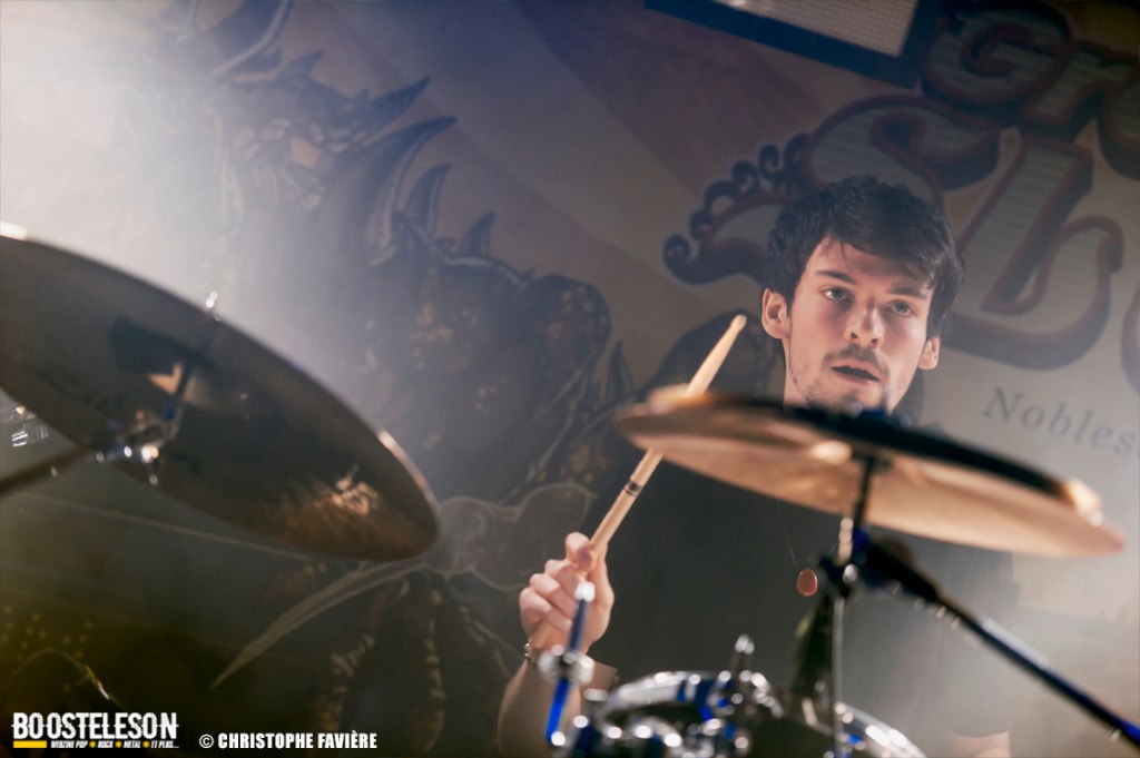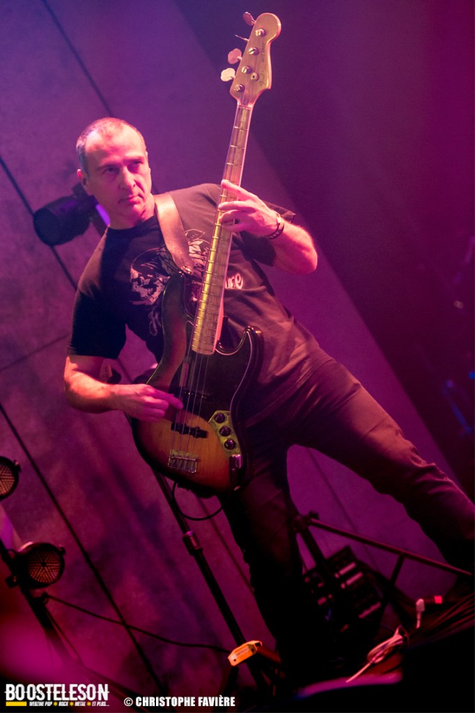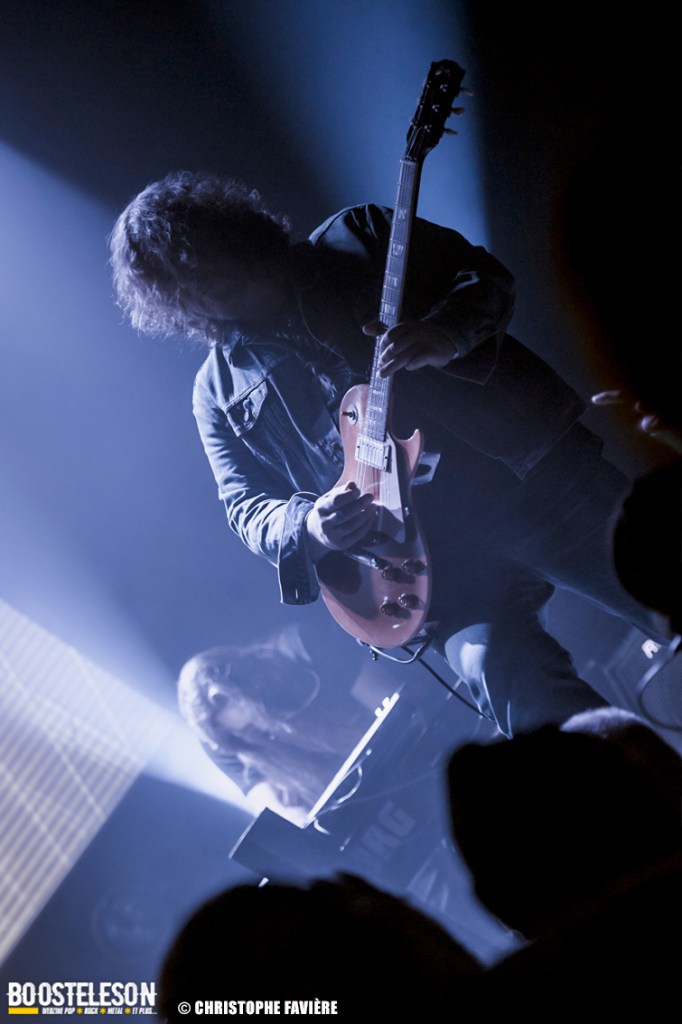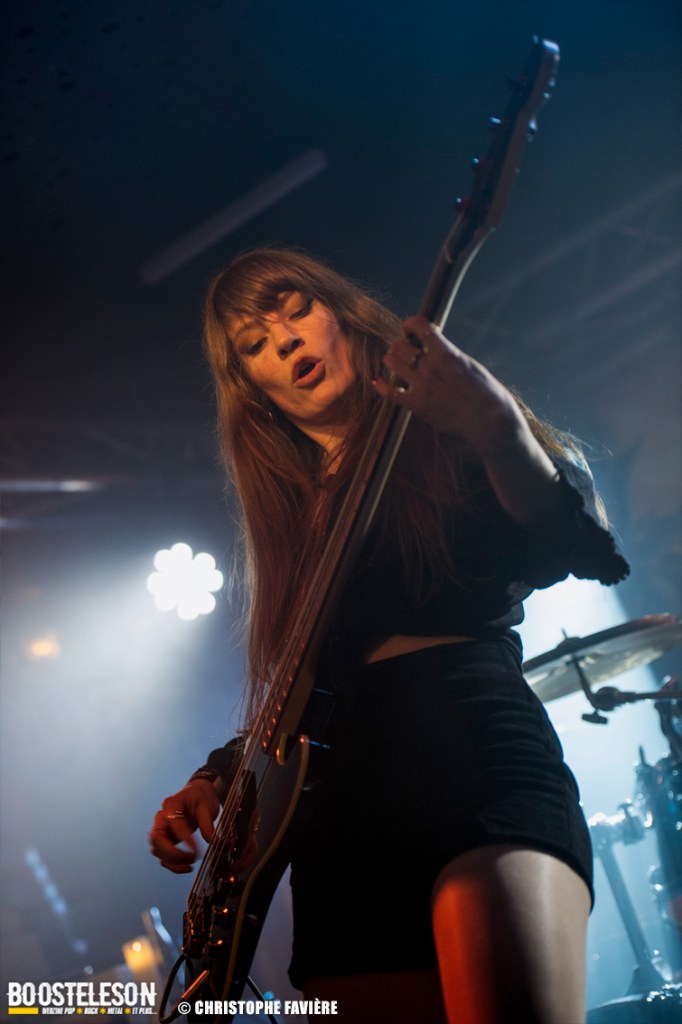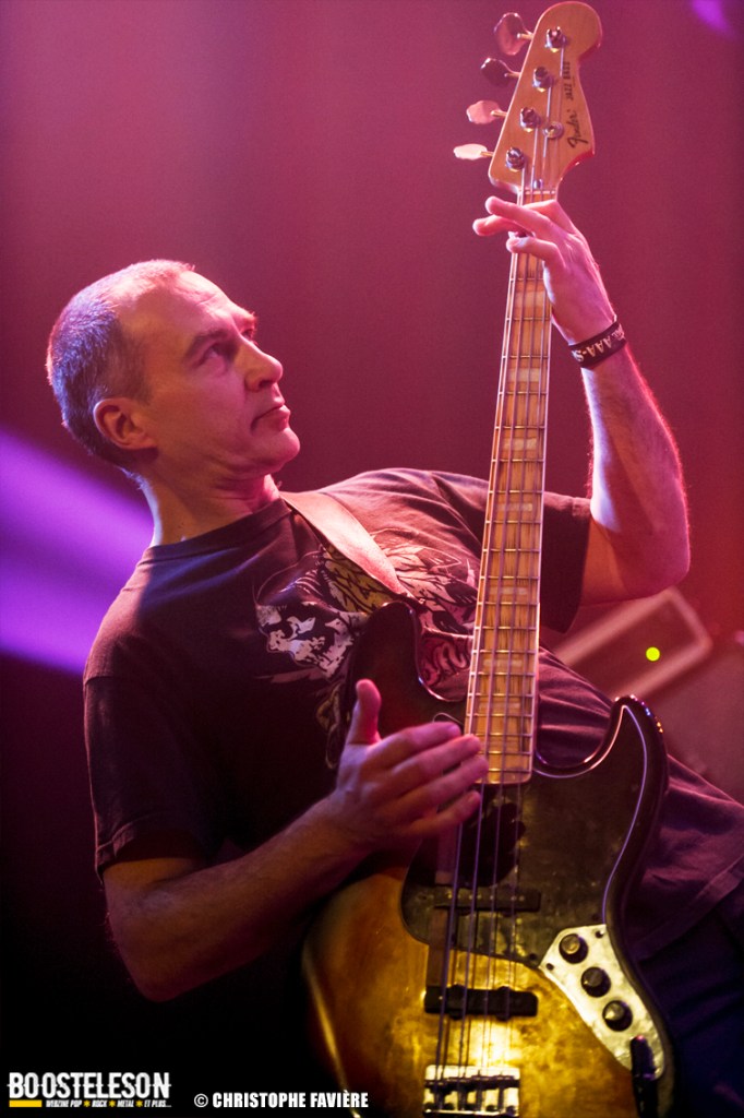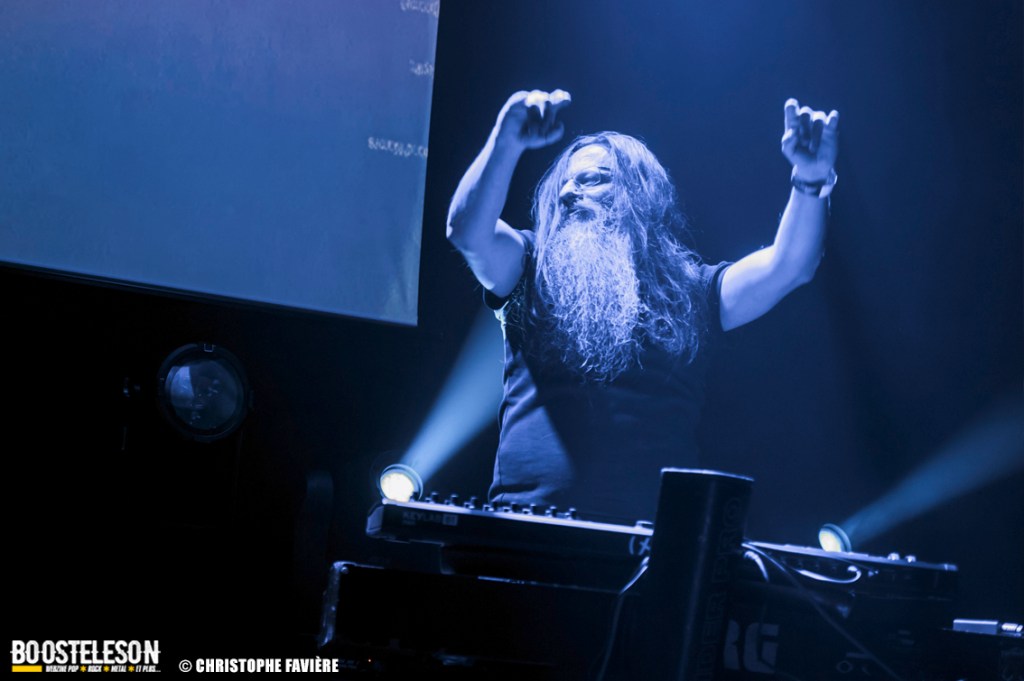 Là encore, ce samedi avait bien commencé avec ONE SHOT. Formé pratiquement uniquement d’anciens membres du groupe Magma, le groupe nous fait voyager dans son univers entre Jazz expérimental, Psychedelic et Progressive Rock. De quoi remettre gentiment la machine en route en ce samedi. On se précipite alors au Club pour retrouver Witchorious qui nous avait tant impressionné lors de leur passage en première partie de Knuckle Head quinze jours plus tôt à la Maroquinerie (Live report ici ->). Et le trio n’a fait que confirmé tout le bien que l’on avait pensé d’eux. Gros riffs à la Black Sabbath, section rythmique impressionnant, univers sombre, nous ne serions pas étonnés de voir ce groupe gravir rapidement les échelons tant leur prestation et leur cohésion sont impressionnantes. Retour dans la grande salle pour Cloakroom. Difficile de définir la musique du groupe originaire de l’Indiana. Mélange de Space Rock, de Stoner, de Doom ou encore de Shoegaze, le combo nous invite dans un univers tantôt lourd, tantôt atmosphérique, étonnant, mais appréciable. A ce moment de la soirée, les choses commencent à se gâter. Suite probablement aux pluies de la semaine, une remontée d’égouts commence à exercer une certaine influence sur l’air ambiant et une odeur nauséabonde (on vous laisse imaginer laquelle) commence à envahir la grande salle. Bonne excuse pour filer une dernière fois au Club pour retrouver Maudits (désolé pour les photos, un problème de carte mémoire). Le trio alterne entre Doom et Ambiant, créant une ambiance oppressante et répétitive grâce à une maitrise impressionnante des loops par le guitariste (pédale d’effet permettant d’enregistrer en direct un riff ou une mélodie et de la répéter à l’infini). Du fait de son côté instrumental et la richesse de ses compos, le groupe est difficilement identifiable à un genre. Là encore, une belle découverte. 22.30, l’heure de retourner dans la grande salle pour le dernier concert du week-end, et malgré la réactivité de l’équipe de l’Empreinte et la venue des services adéquats, les choses ne se sont pas arrangées. Les regards censés évacuer l’eau lors du nettoyage refoulent en plein milieu de la salle tout ce qui est supposé en sortir. Qu’à cela ne tienne, le public fait contre fortune bon cœur et reste en masse pour assister au concert de monkey3. Et les Suisses les en remercient en nous offrant un show de toute beauté, tant sonore que visuel. Avec leur musique à la croisée du Stoner et du Psychedelic Rock, les Helvètes nous gratifient d’un voyage hors du temps et de l’espace, renforcé par les images diffusées sur l’écran géant en fond de scène. Une bien belle manière de conclure cette soirée et cette deuxième édition qui aura vu un public venir en masse malgré le RER en travaux, et malgré les problèmes de tuyauterie. Espérons que cette fidélité sera récompensée par une troisième édition en 2025. Cette musique le mérite amplement. Noblesse oblige !