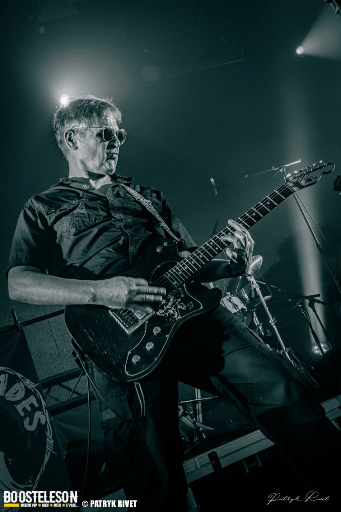 Comme à leur habitude, Les Sheriff démarrent le show pied au plancher. L’urgence est leur maitre mot depuis près de quarante ans. Héritiers du punk des années 70/80 avec des références telles que OTH, les Ramones ou encore les Stooges les Héraultais sont resté fidèles à leurs débuts. Des textes touchants, drôles, naïfs parfois, humains quoi ! Les changements de line up au fil du temps n’ont pas affecté la complicité du groupe, bien au contraire, ils donnent l’impression d’avoir trouvé une alchimie parfaite. Les anecdotes vont bon train en guise d’explication de textes, ou lorsque le chanteur, Olivier, sort une feuille pour « Tant de temps », chanson qu’ils jouent rarement en live et dont il a oublié les paroles, mais pas le public ! L’ambiance survoltée déclenche slams et pogos dès les premières minute et retombera pas avant la fin du set. Et quel set, pas loin de 30 titres seront enchainés par le groupe à une vitesse incroyable. Mais honnêtement, ça laisse tout de même un goût de trop court. Après tout, on n’a pas tous les jours 15 ans ! Merci les Sheriff.