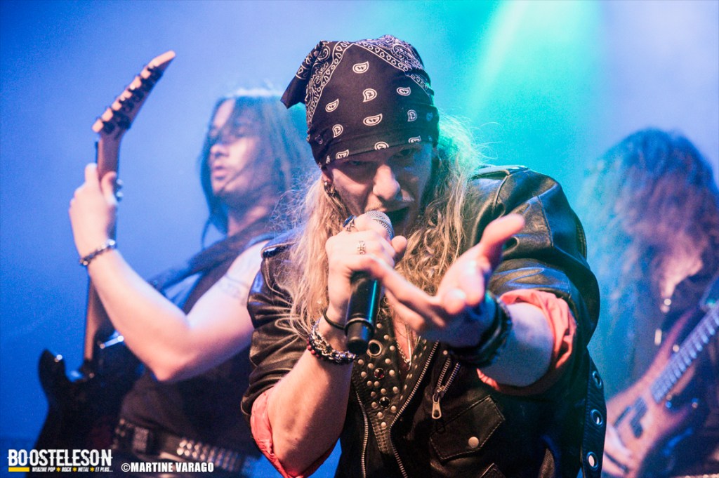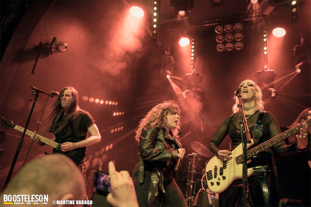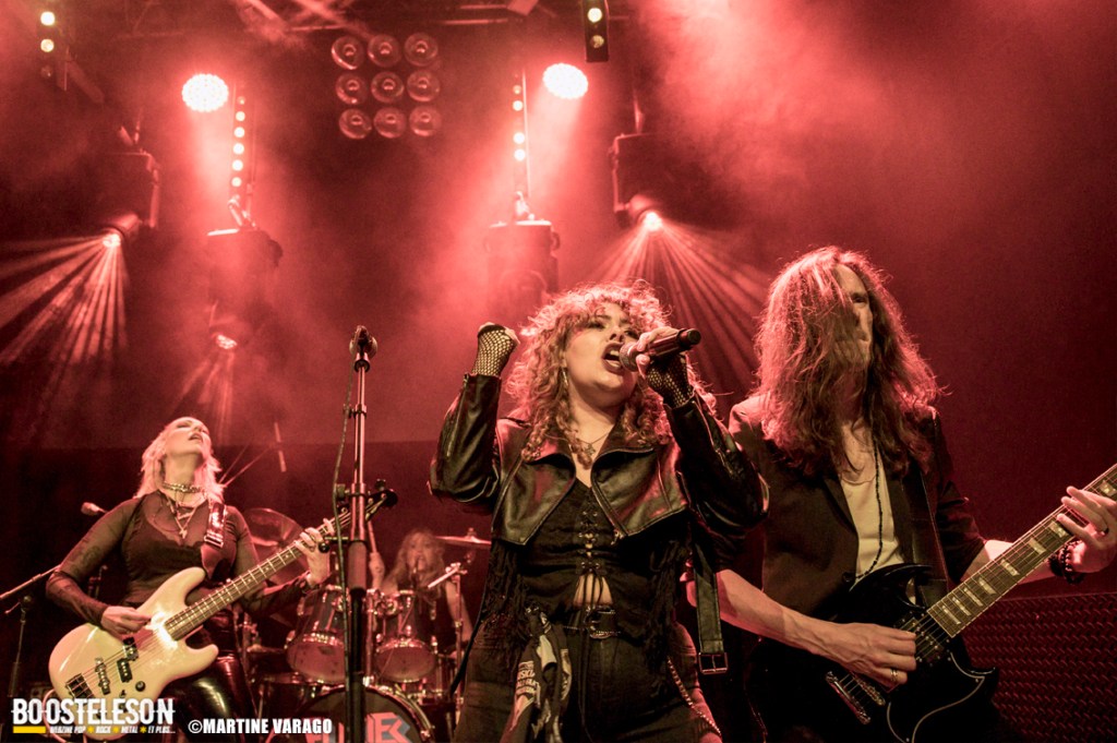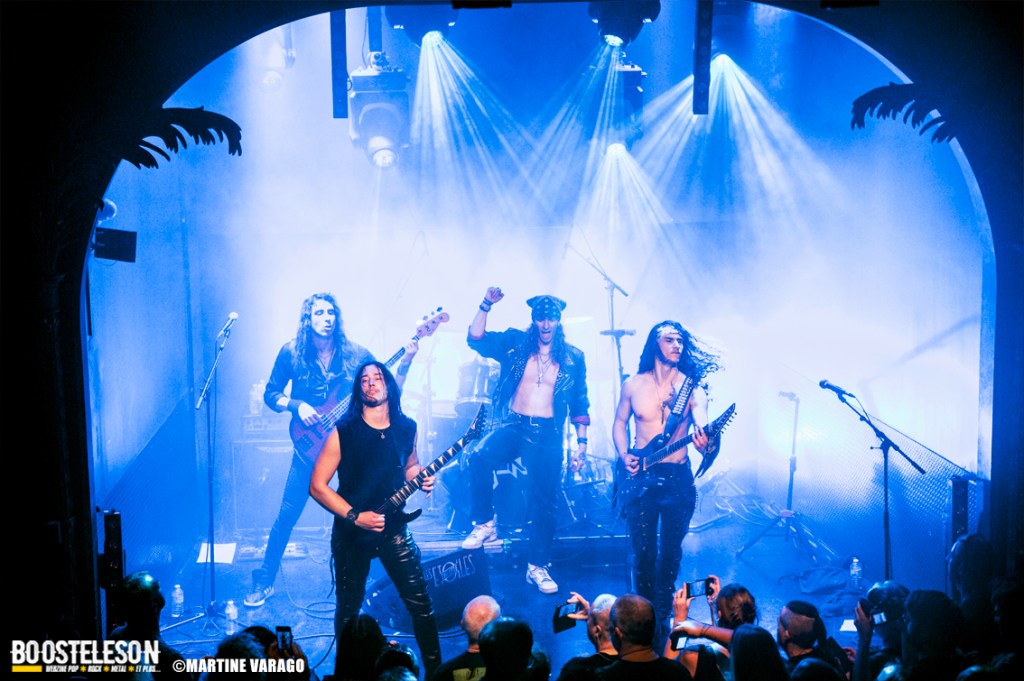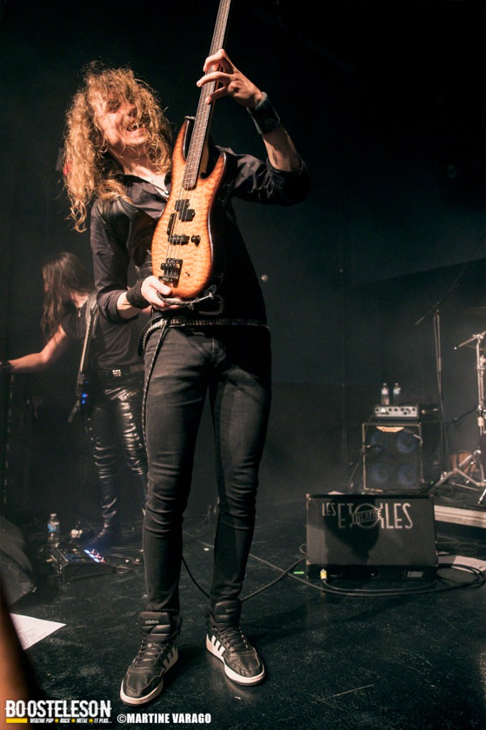 Avec Zaza Bathory, à la batterie, Lucie Sue à la basse et la chanteuse Cheyenne Janas, les trois déesses du Metal sont accompagnées de deux guitaristes, Guillaume Jockey et Fred Bend. Le show est frais, énergique tout comme le nouveau line-up puisque seuls Zaza et Guillaume étaient au sein du groupe avant 2022. Leur single « Rise And Shine » commence à chauffer l’audience, attentive aux riffs et aux ébats musicaux. Certes, Cheyenne occupe bien l’espace, un peu restreint des Etoiles et l’aura lyrique qui se dégage de sa performance mêle glam et gothique à la perfection. Le show se termine sur un morceau très speed « Unleash The Furies », puis se conclut avec « Stars Of Burning Lands ».