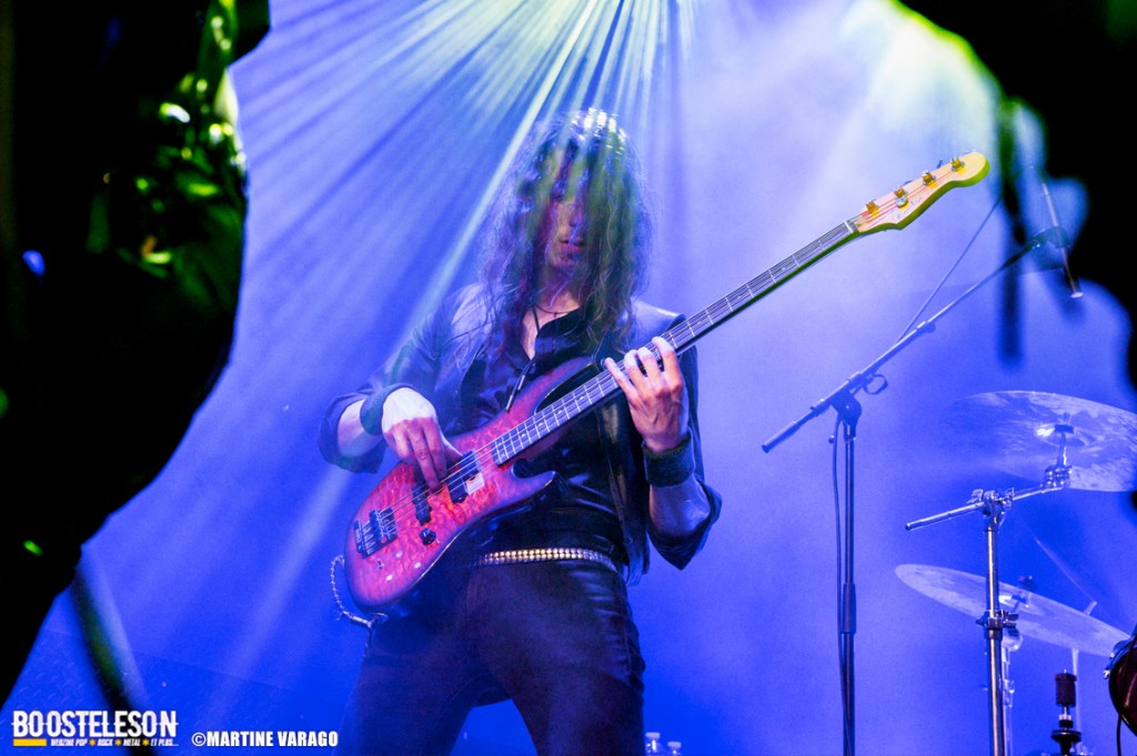 Le dynamisme du set passe par des transitions musicales inspirées : solo de batterie signé Marcel Binder, solo de guitare bien sûr du sexy Parker. Puis le bassiste belge Mathieu Trobec nous gratifie d’environ cinq minutes d’expérimentations à quatre cordes, osant les techniques emblématiques des guitaristes Metal (sweeping, tapping). Le résultat est inouï.