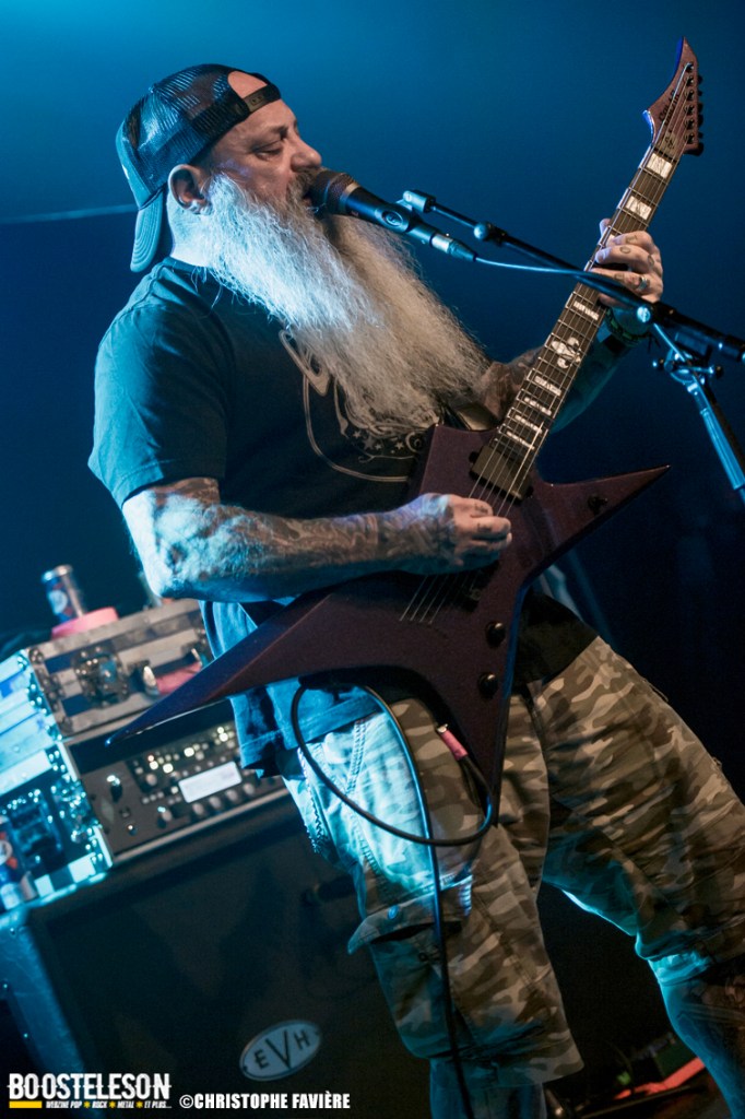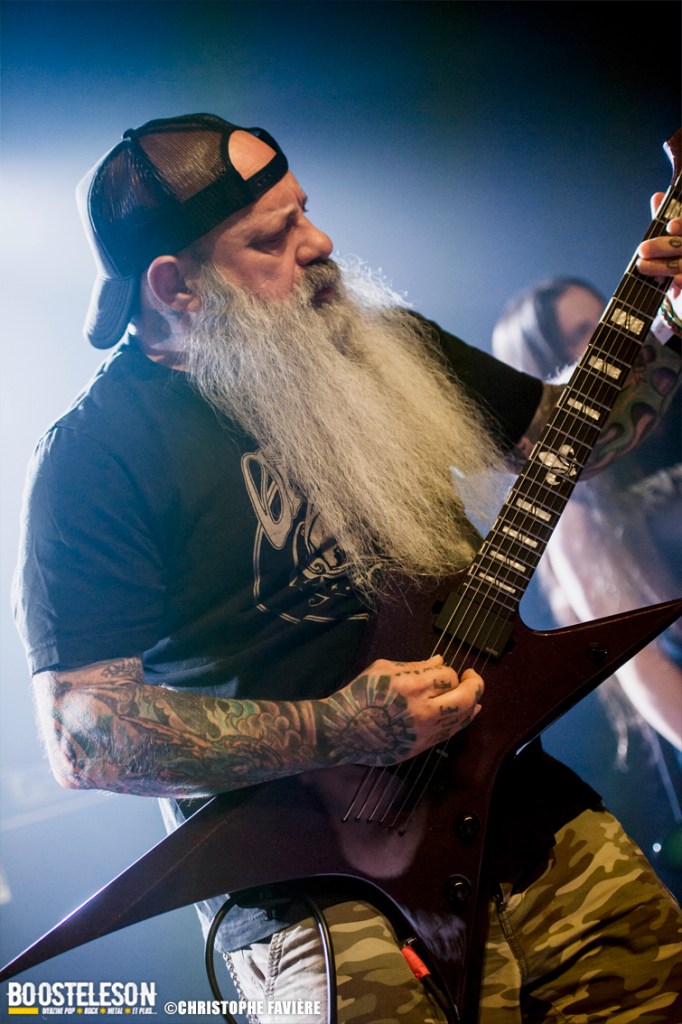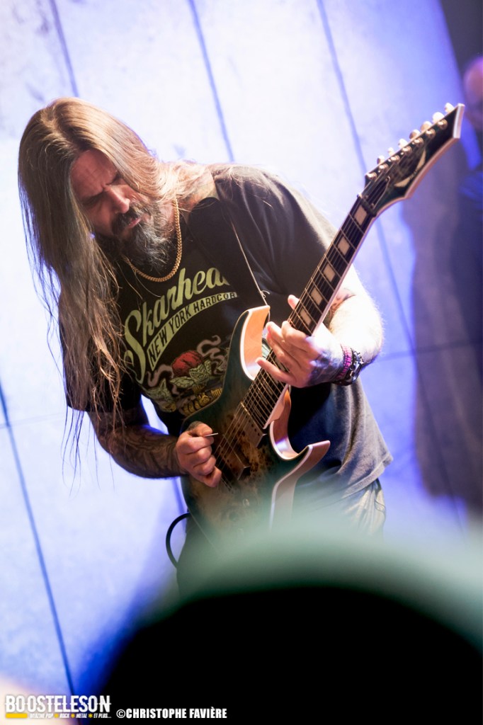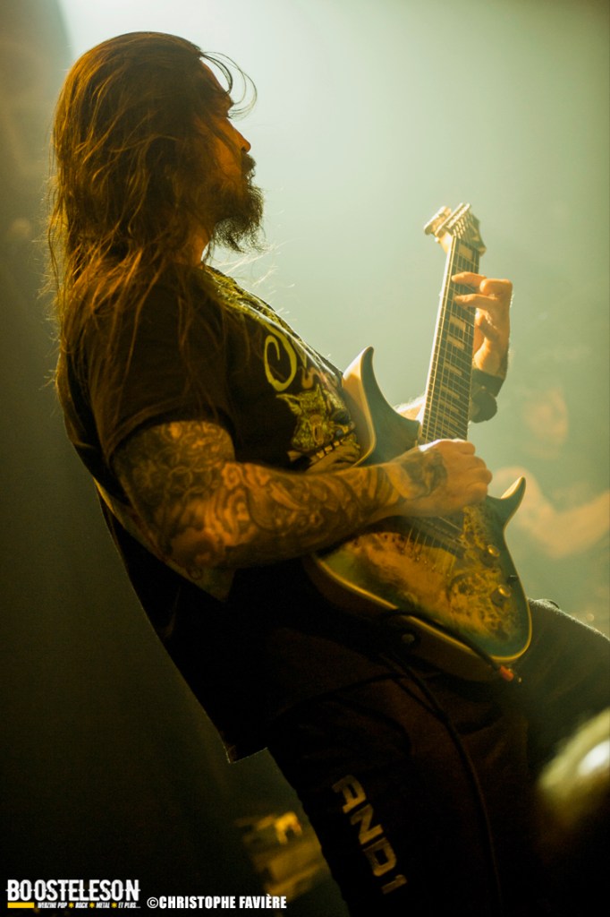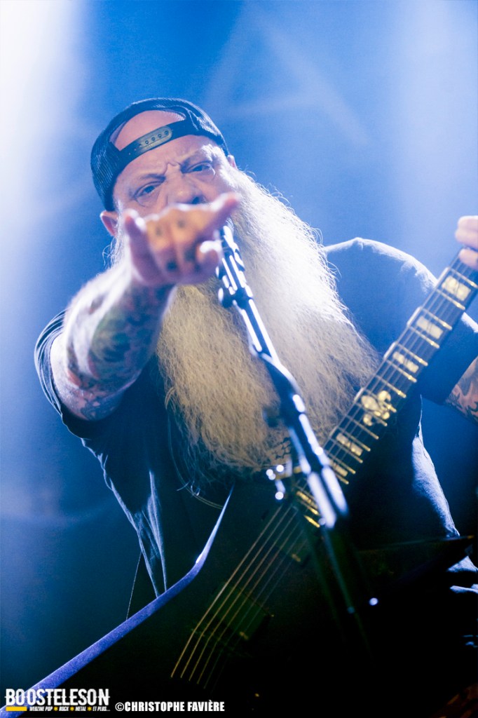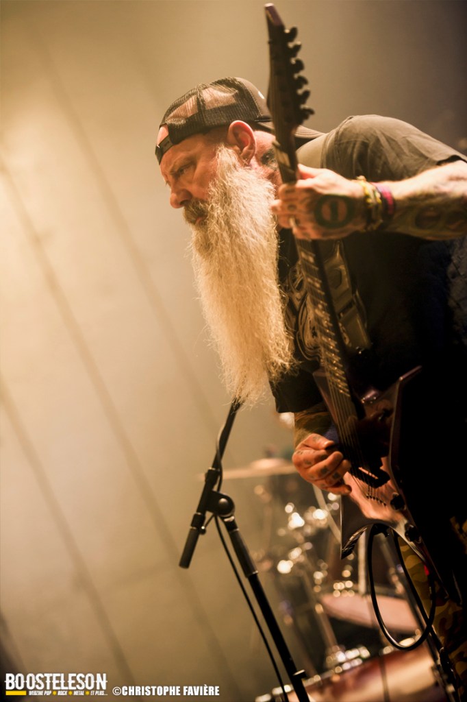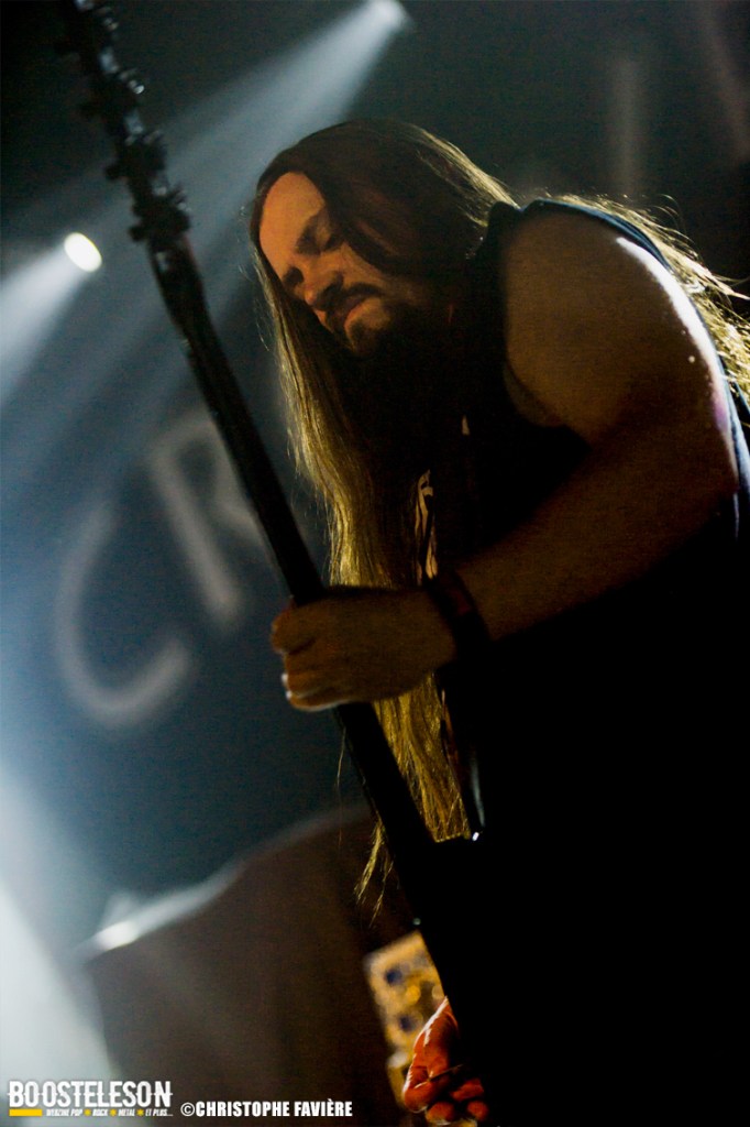 C’est avec le Sludge lourd et poisseux de Crowbar que commence la soirée. Inlassablement depuis presque 35 ans, Kirk Windstein et ses sbires assènent leurs riffs partout dans le monde. Le public adhère largement à l’ambiance lourde et au tempo ralenti. La voix de Kirk n’est pas très audible tant le volume des instruments prend le dessus, ce qui ne l’empêche pas de communiquer avec le public entre les morceaux. Après 40 minutes de lave en fusion, Crowbar cède la place aux maîtres de la soirée pour une ambiance radicalement opposée.