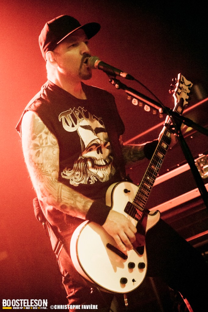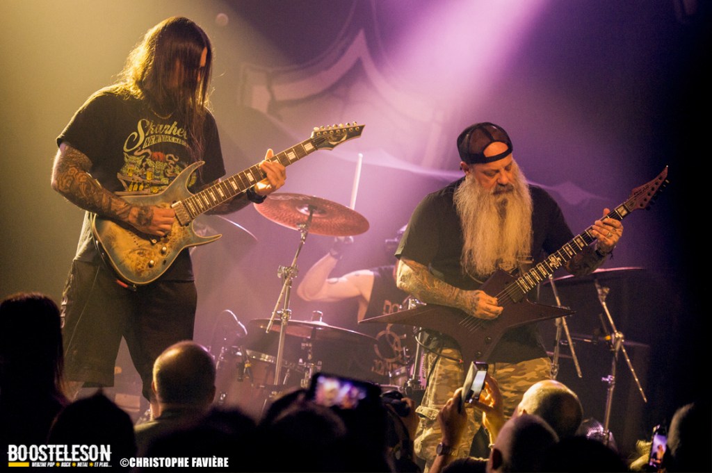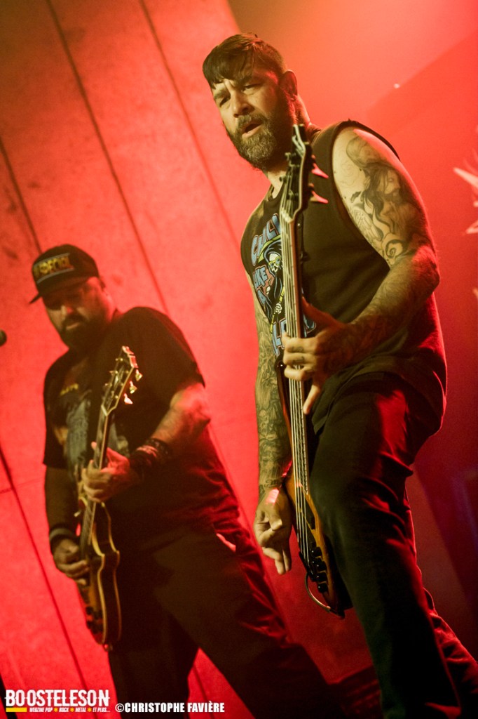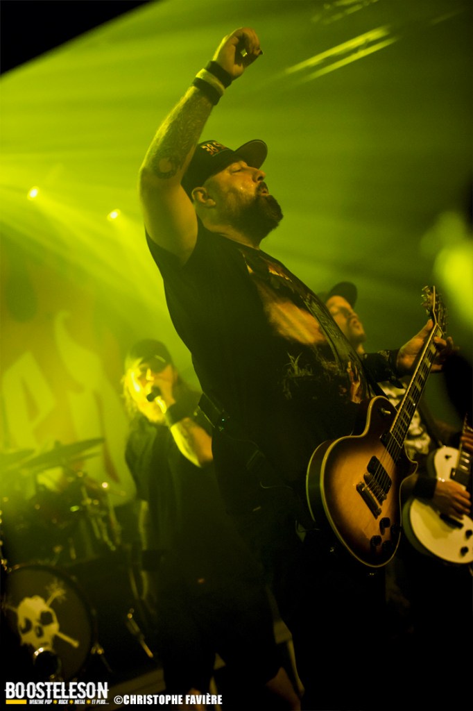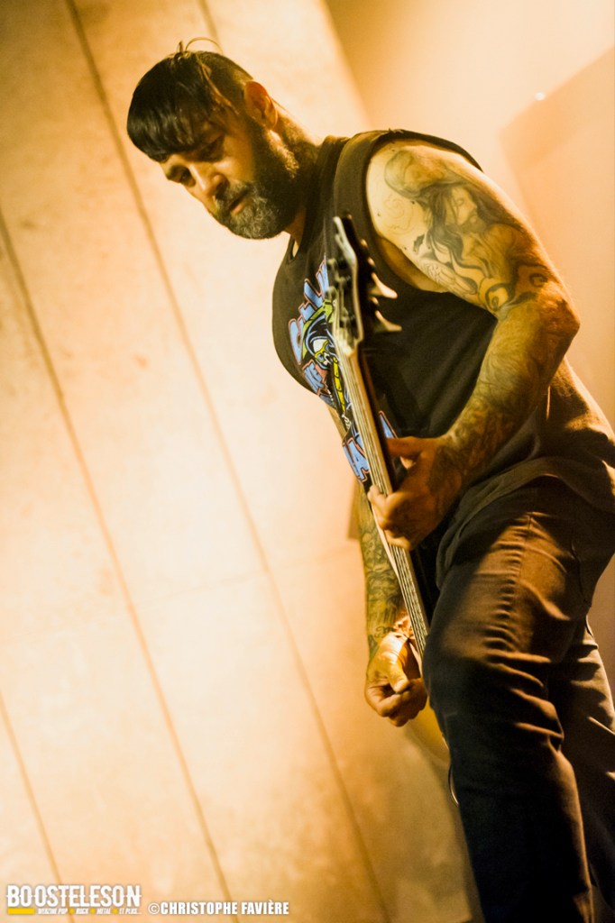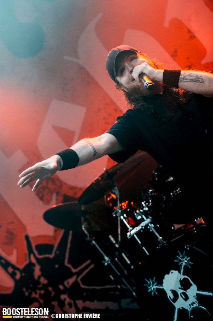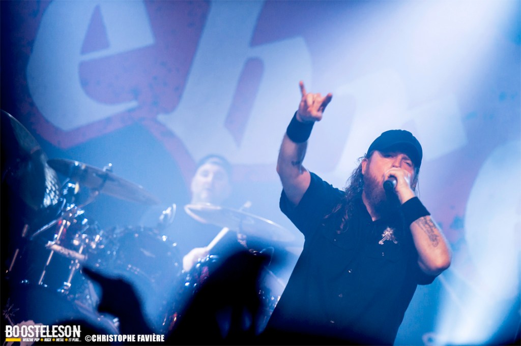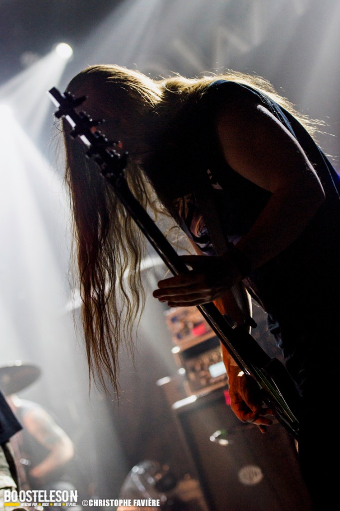 C’est avec le Sludge lourd et poisseux de Crowbar que commence la soirée. Inlassablement depuis presque 35 ans, Kirk Windstein et ses sbires assènent leurs riffs partout dans le monde. Le public adhère largement à l’ambiance lourde et au tempo ralenti. La voix de Kirk n’est pas très audible tant le volume des instruments prend le dessus, ce qui ne l’empêche pas de communiquer avec le public entre les morceaux. Après 40 minutes de lave en fusion, Crowbar cède la place aux maîtres de la soirée pour une ambiance radicalement opposée.