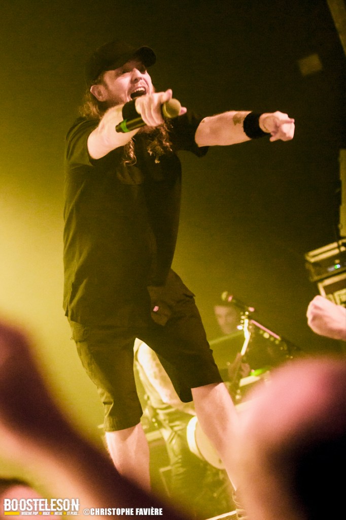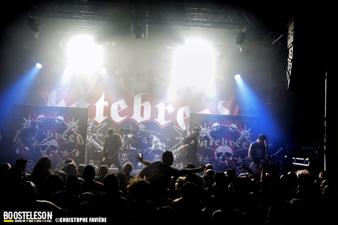 Urgence ! Voici le maître-mot des shows d’Hatebreed, c’est donc sur les chapeaux de roue que les cinq de Bridgeport (Connecticut) entament leur set et ne redescendront le rythme qu’à la fin de celui-ci. Entre temps, c’est un déluge de riffs acérés et de refrains engagés et repris par le public qui va s’abattre sur l’Empreinte durant un peu plus d’une heure. Les provocations du chanteur Jasta font mouche et l’assistance est en ébullition. Slams, pogos, circle pit se déclenchent sur chaque titre. La Set List est impeccable et tous les hits du groupe y passent. Cette tournée des trente ans est un carton plein. Le combo a littéralement retourné la salle comme à leur habitude et ils en sont plutôt heureux vu les sourires affichés du début à la fin. L’atmosphère est suffocante tant la chaleur et la moiteur sont presque palpables. C’est un public dégoulinant de sueur mais heureux qui quitté l’Empreinte avec la réelle conviction d’avoir passé un bon jeudi soir.