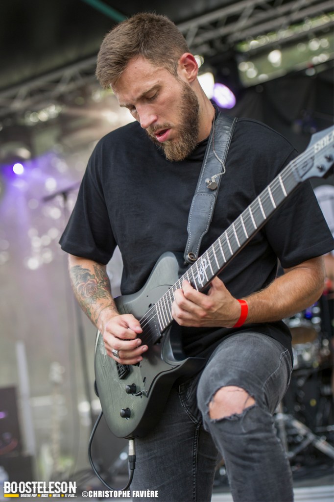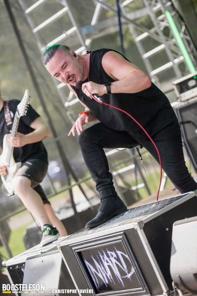C’est sous un soleil de plomb que les Inward (Reims) entament les hostilités sur la Furious Stage avec leur Metalcore. Le duo de guitares est bien complémentaire et technique tandis que la section basse/ batterie fait preuve d’une énergie débordante. Côté voix, le chanteur nous offre toute la gamme des vocaux provenant du Death et du Black.