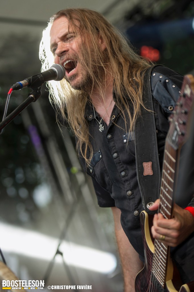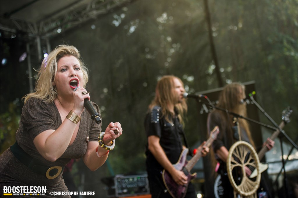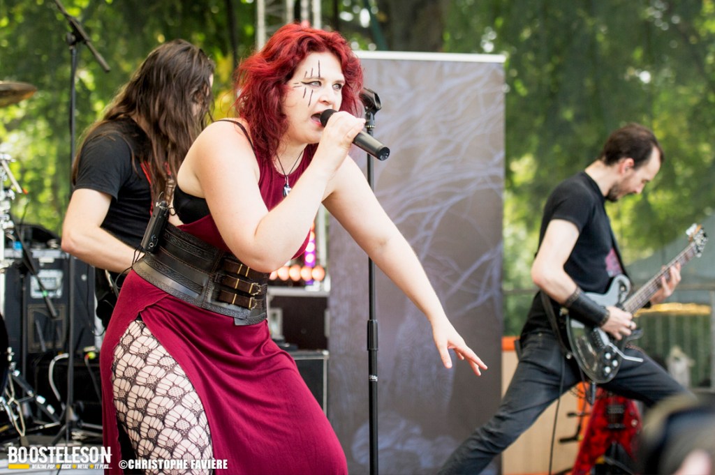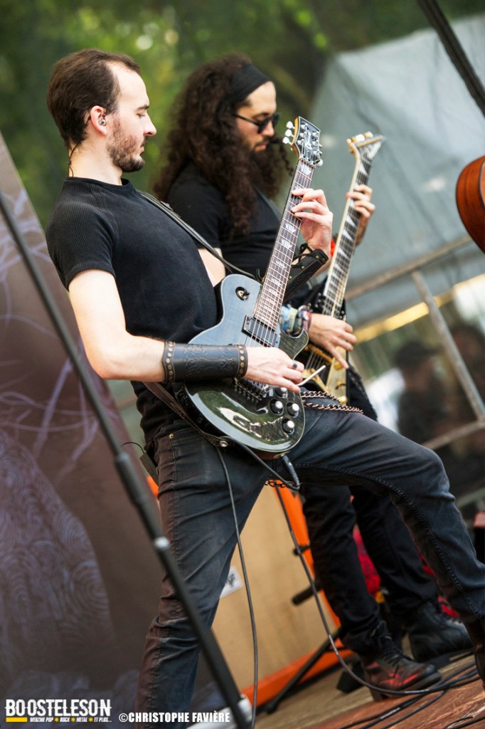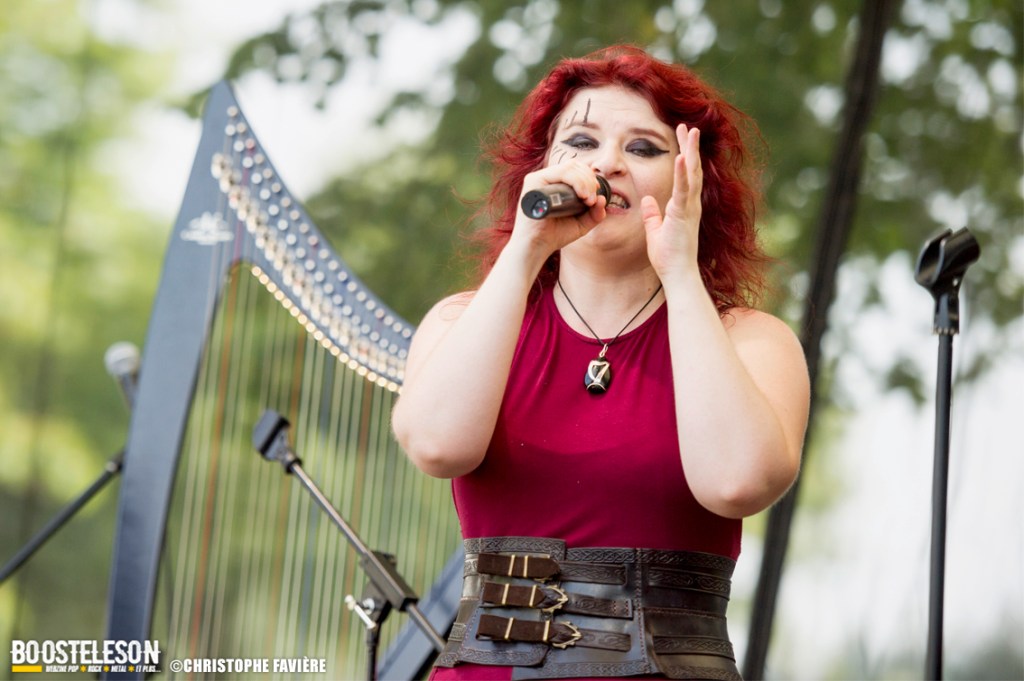 Viennent ensuite Orkhys (Paris) et leur Heavy Metal à consonances celtiques sur la Monster Stage. Là encore, les musiciens prennent plaisir à jouer et cela se voit. Les alternances entre Metal presque symphonique et accélérations épiques s’enchainent bien, entrecoupées de passages à la harpe donnant la sonorité celtique du groupe. Tout ça est bien calé et montre des qualités de composition indéniables.